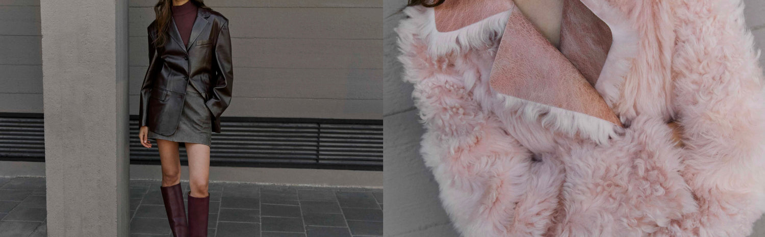 The lining is made of 100% polyester, and the outer material is made entirely of soft lambskin . A softer and more comfortable leather jacket is hard to find. Equally popular are the slim-fitting biker jackets in cool brown. 100% leather, a casual waist belt, and a wide collar—that's all you need for a statement like this. And for those looking for something softer and more subdued, check out the pastel-toned pieces.