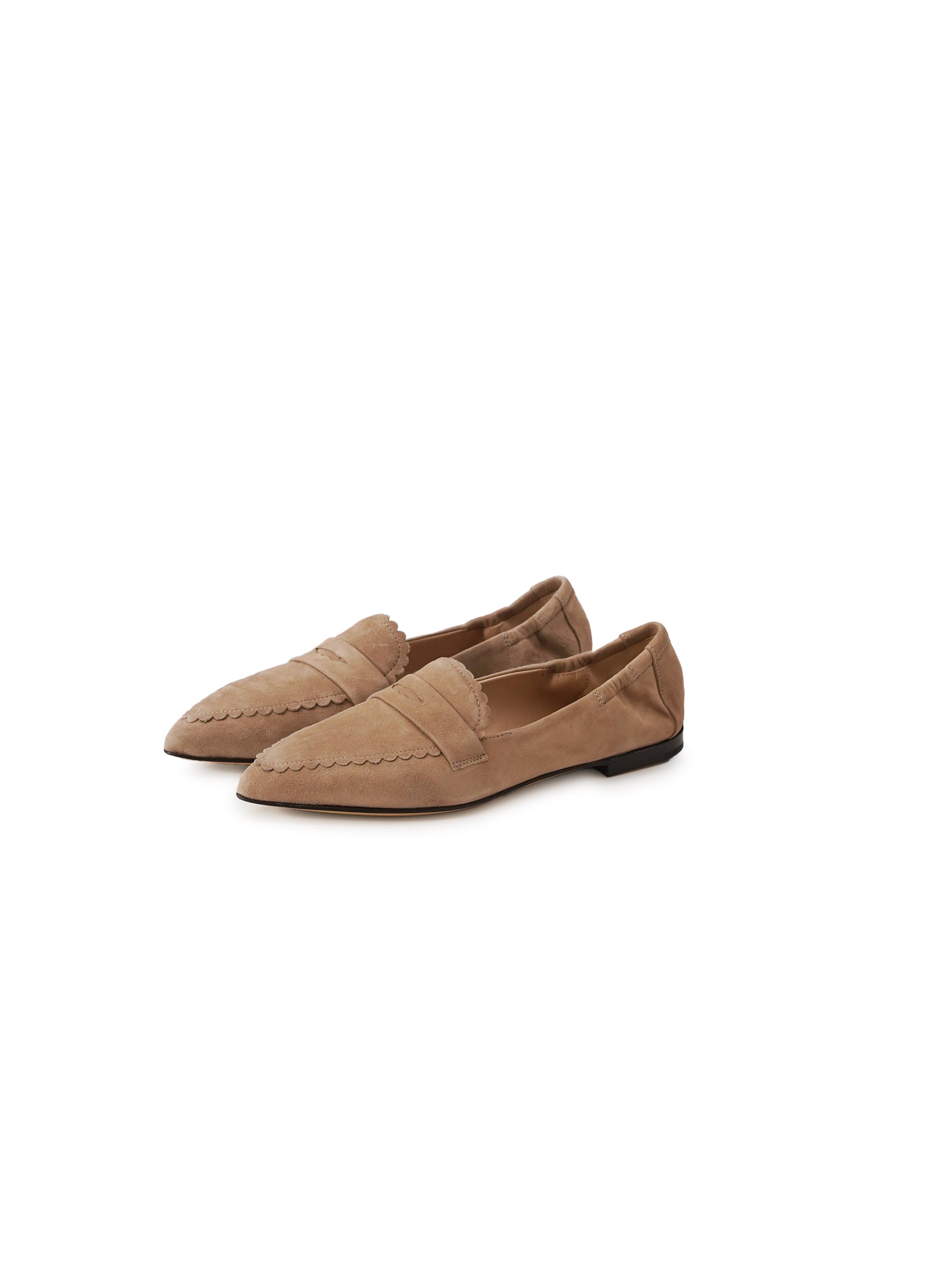 Discover our elegant sand-colored velour slipper with a trendy loafer look. The pointed shape gives it a trendy touch, while the soft velour material and padded insole ensure maximum comfort. Perfect for everyday wear or special occasions.