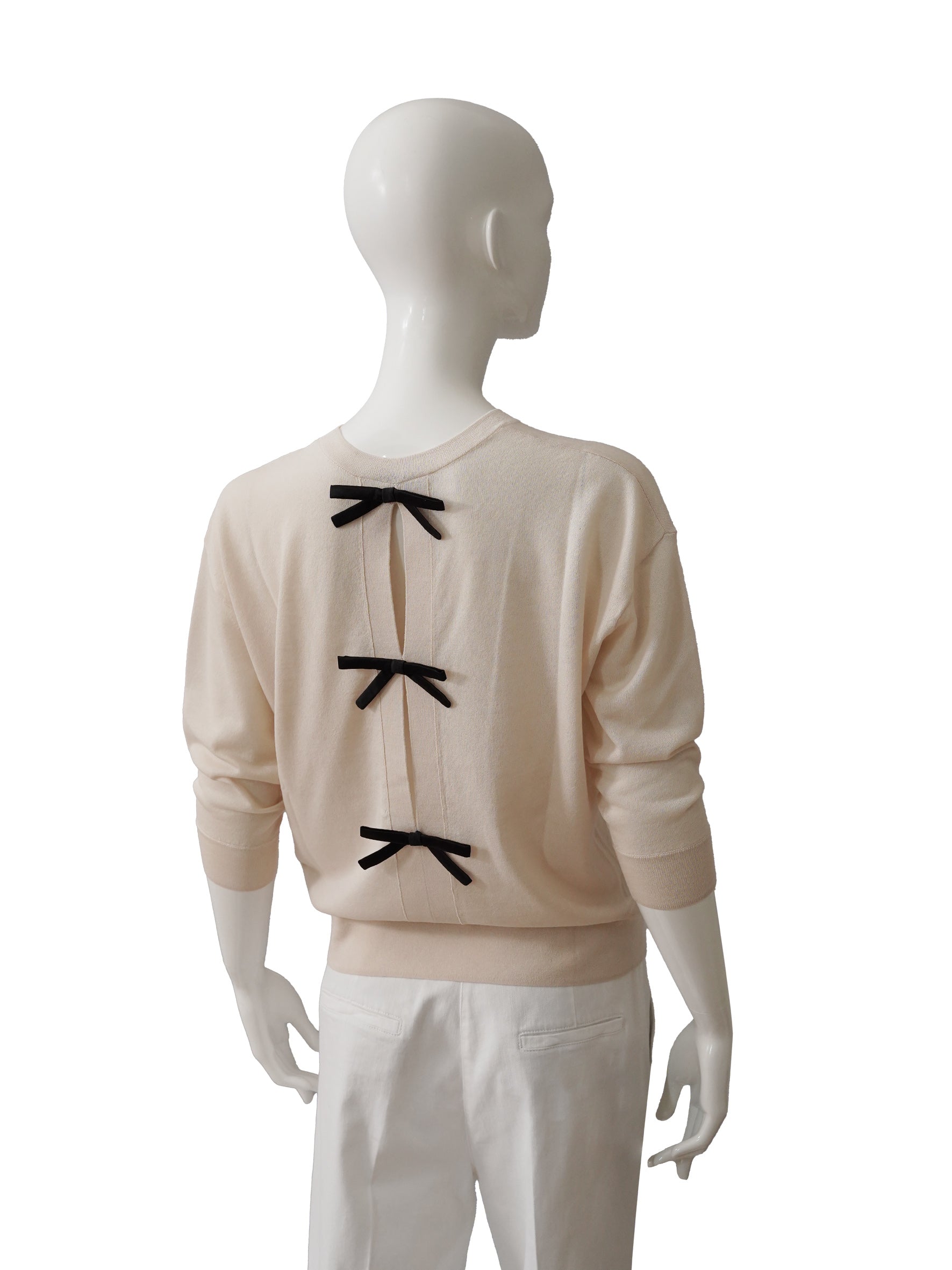 This exclusive sweater by Dorothee Schumacher in a delicate powder shade combines lightness with sophisticated elegance. The detachable bow details offer versatile styling options—wear it classically simple or with decorative bows for a feminine accent. The high-quality workmanship and lightweight material guarantee optimal comfort while maintaining a sophisticated design.