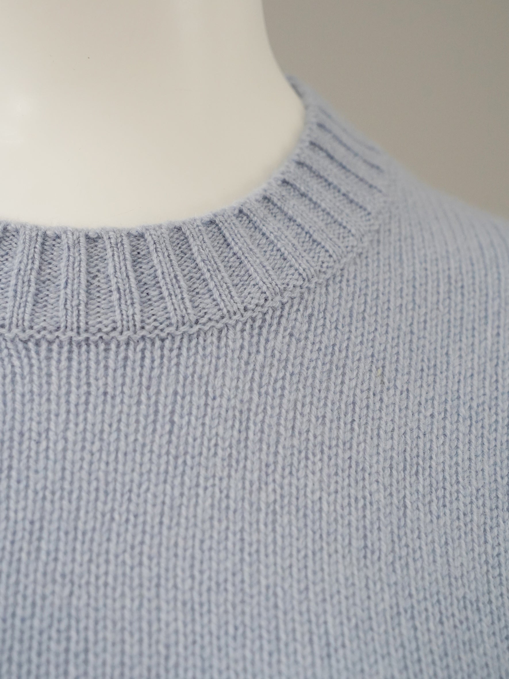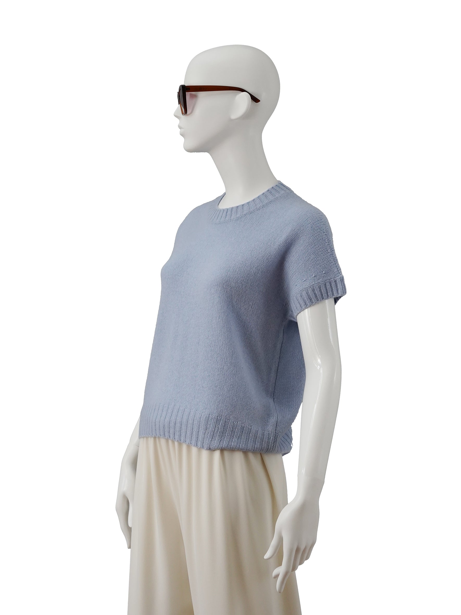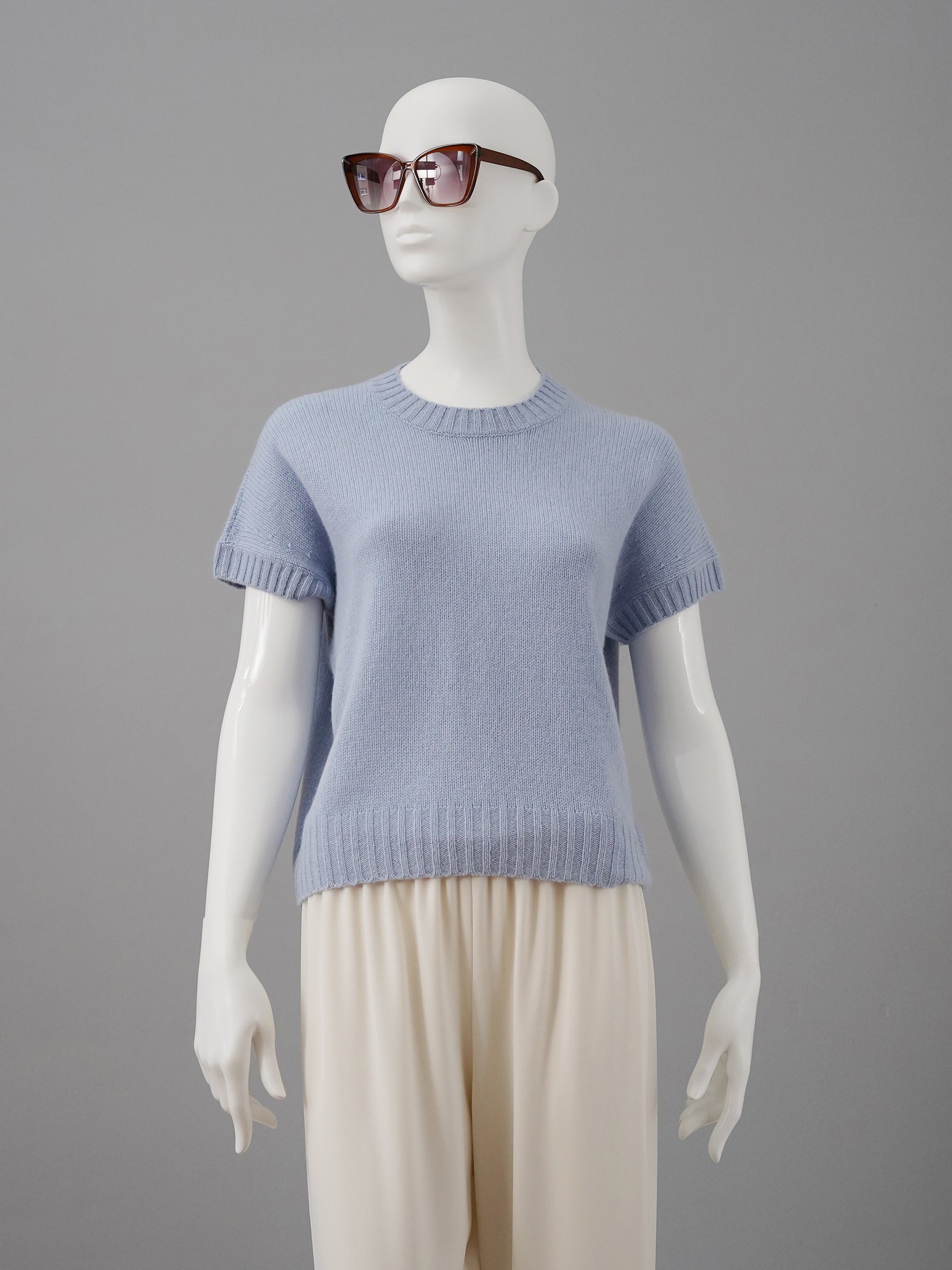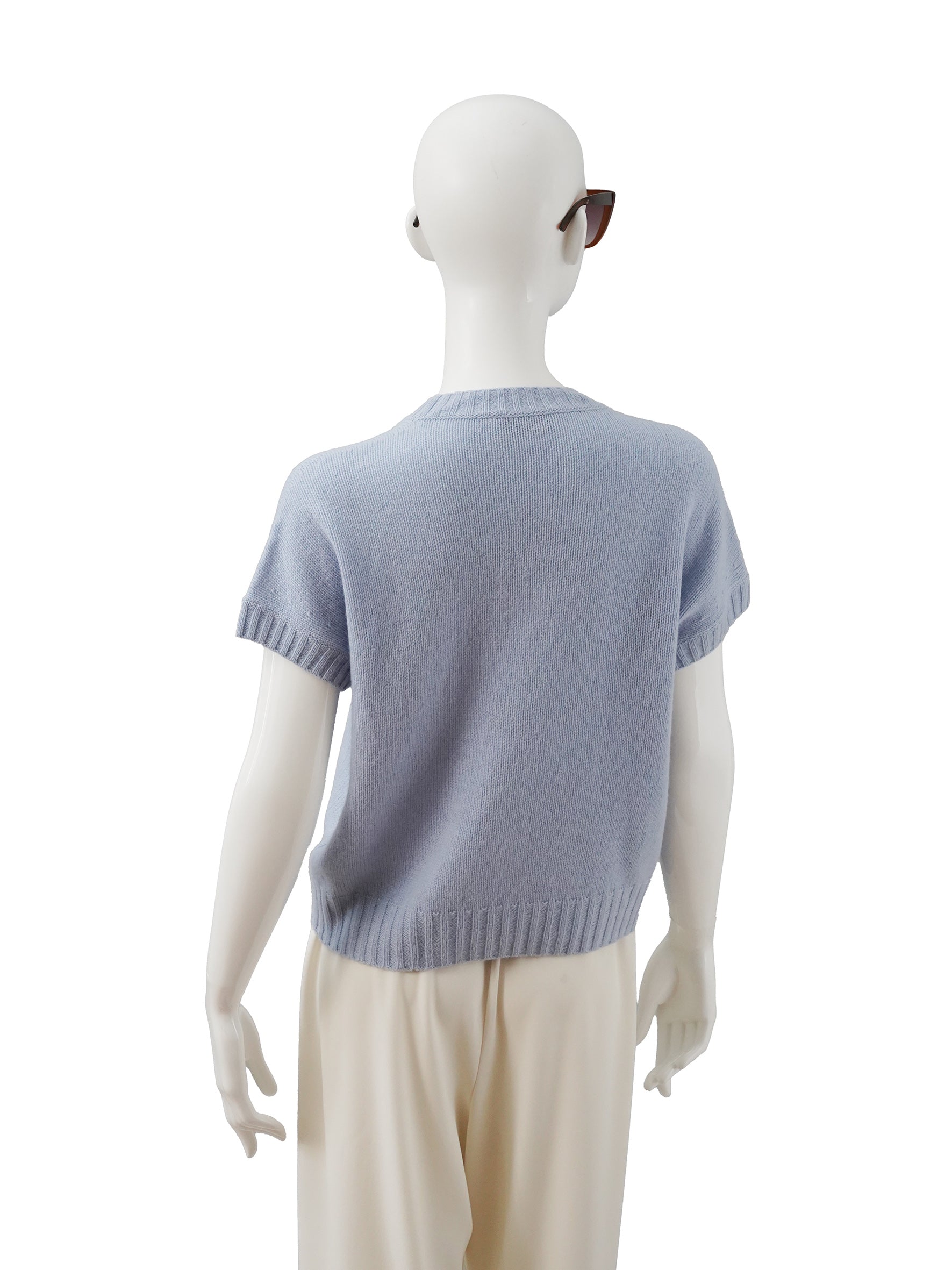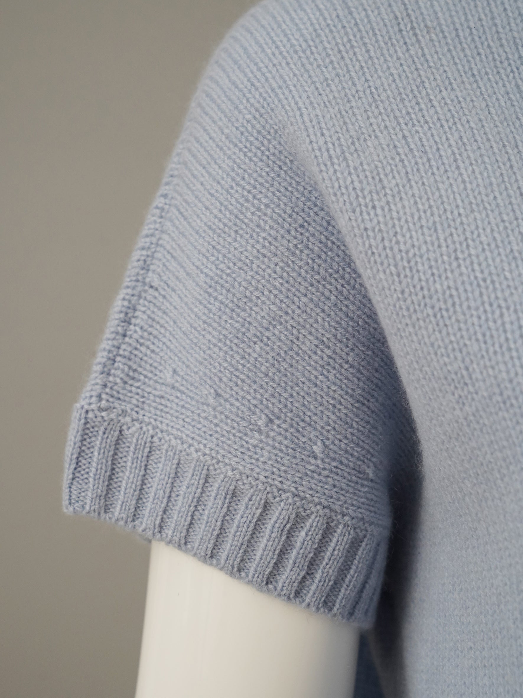 Hellblauer Kurzarm-Pullover aus Wolle und Cashmere