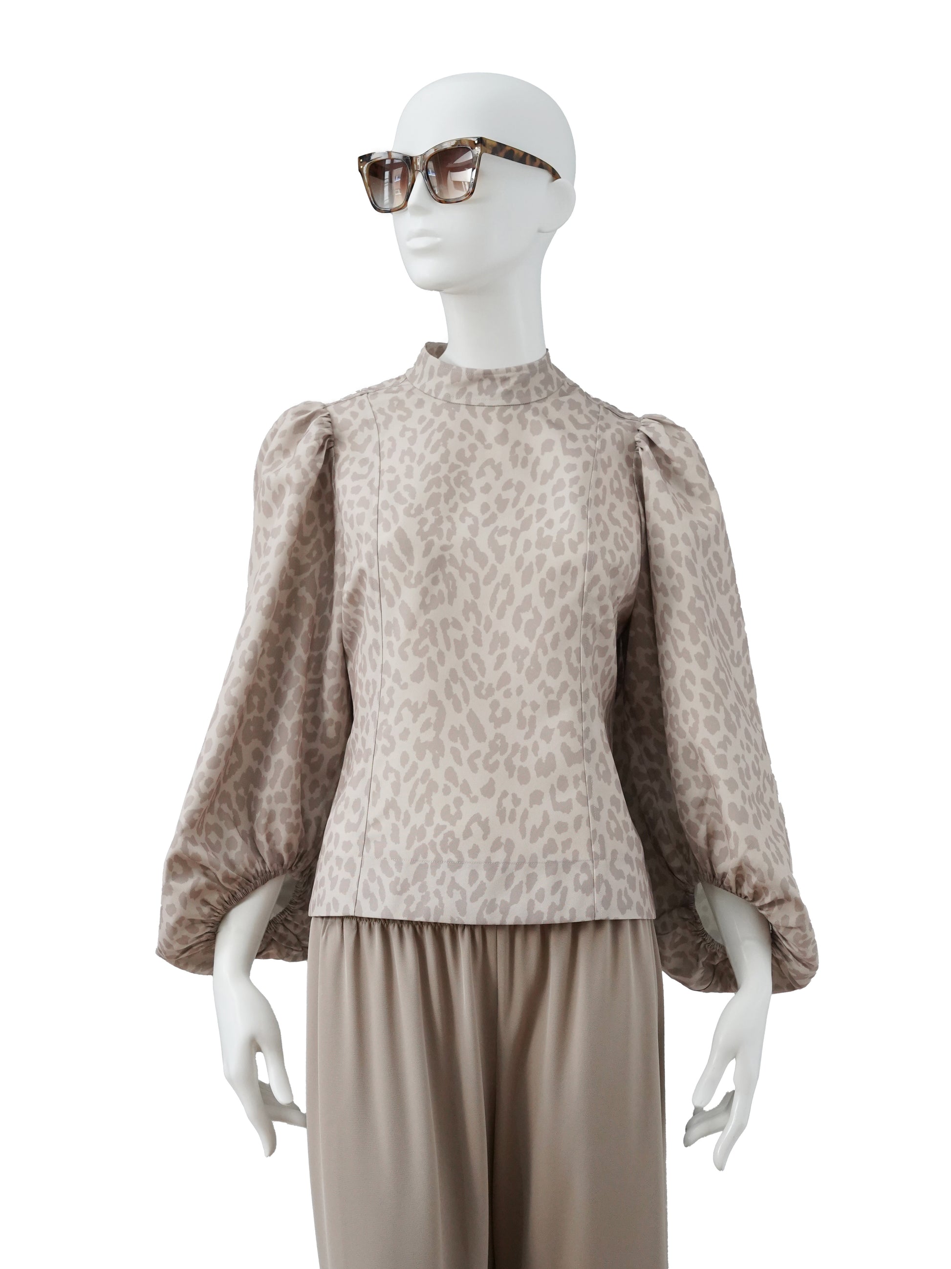 Sandfarbene Leo-Print Bluse