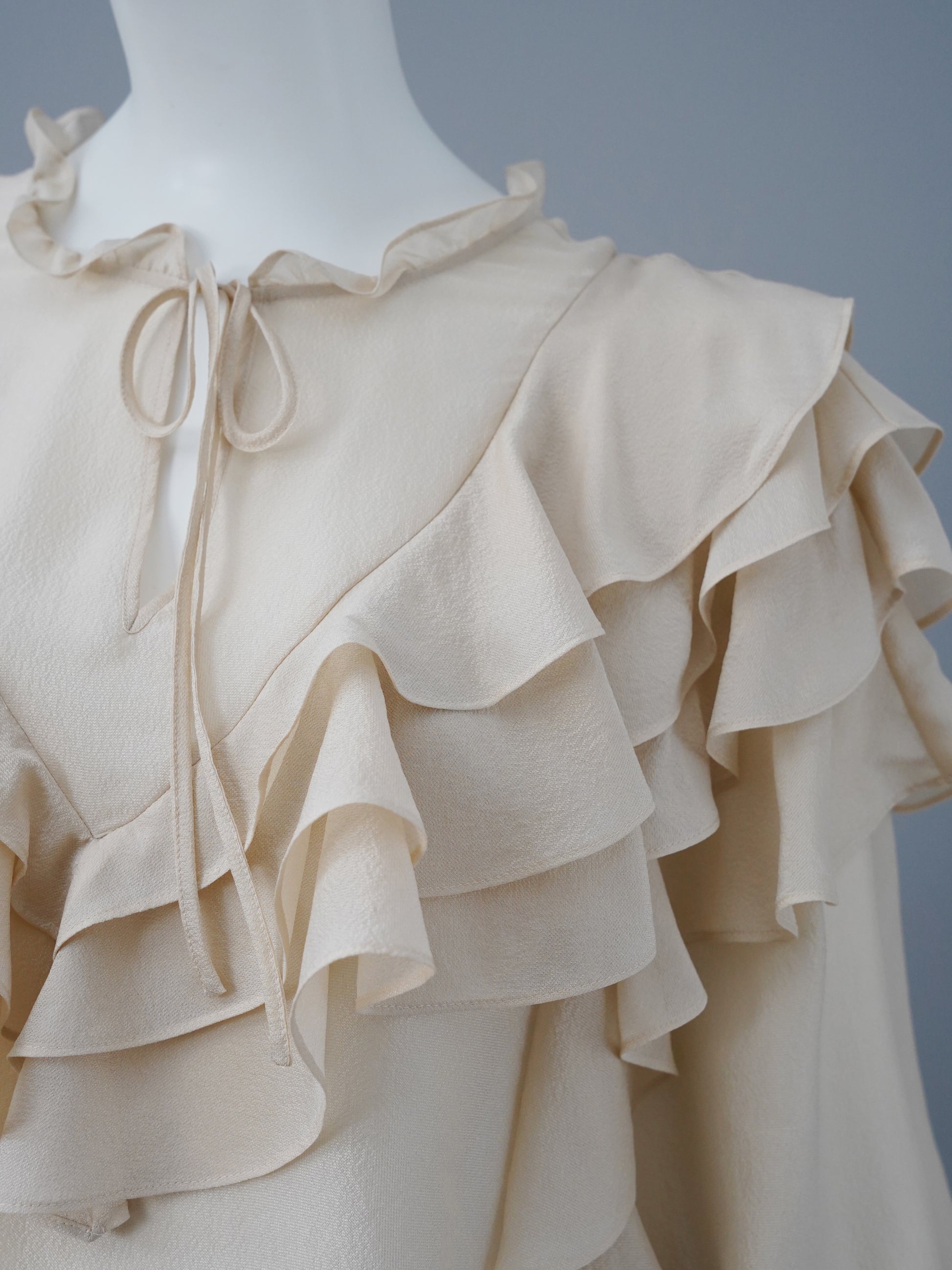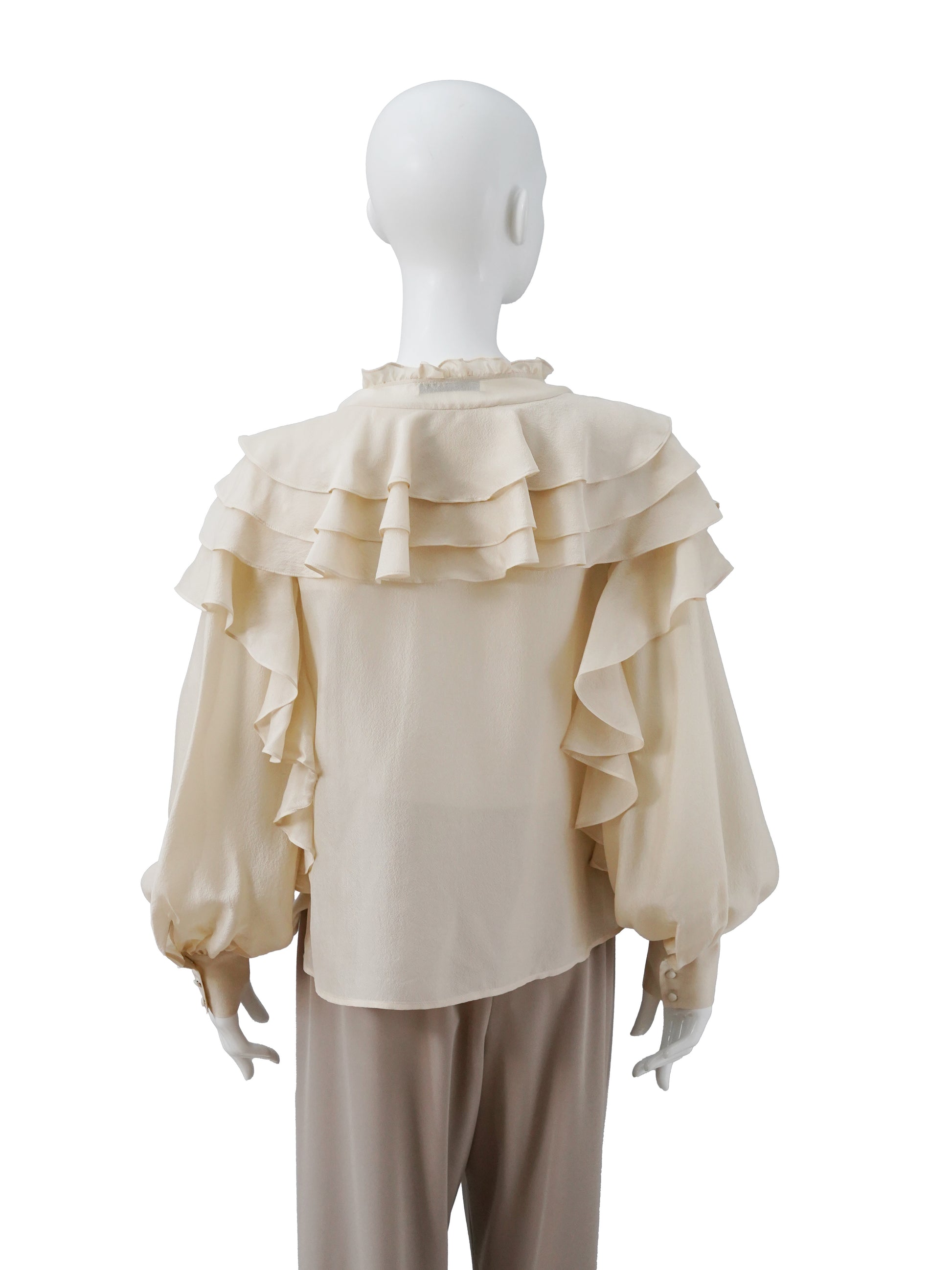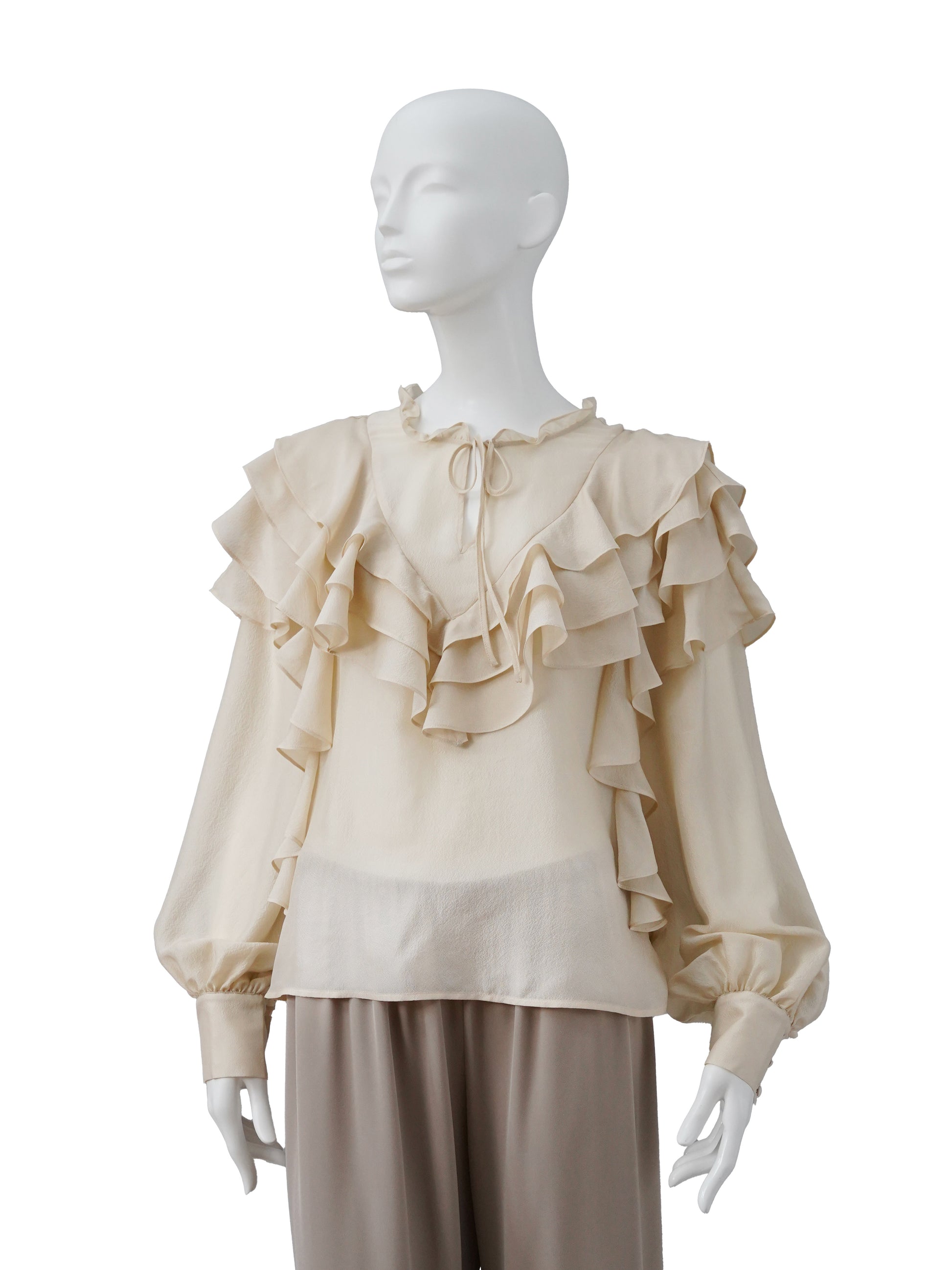 Sandfarbene Seidenbluse mit Volant