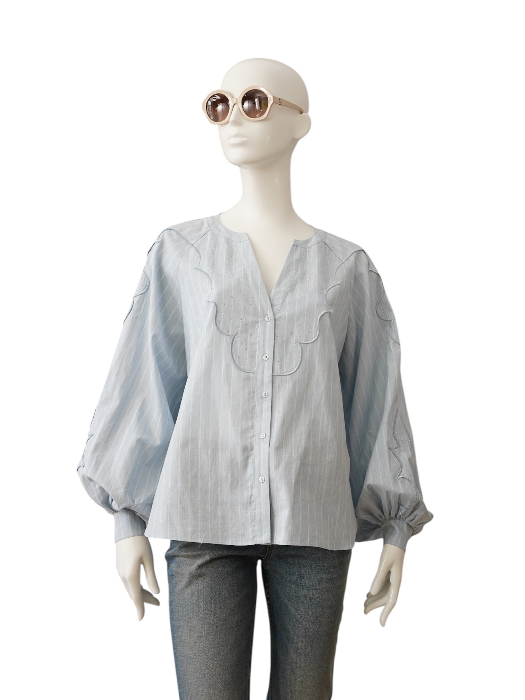 Light blue blouse made of cotton and linen