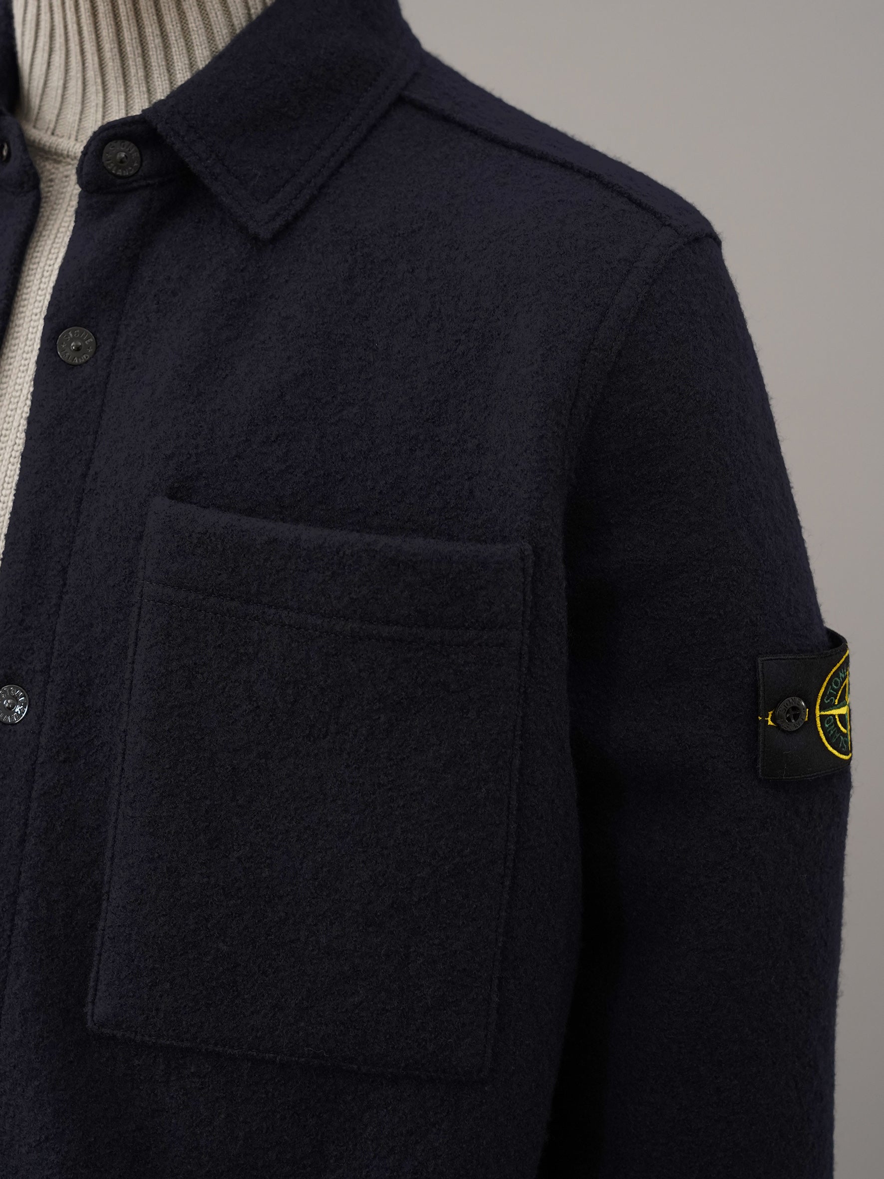 Dark blue boiled wool overshirt