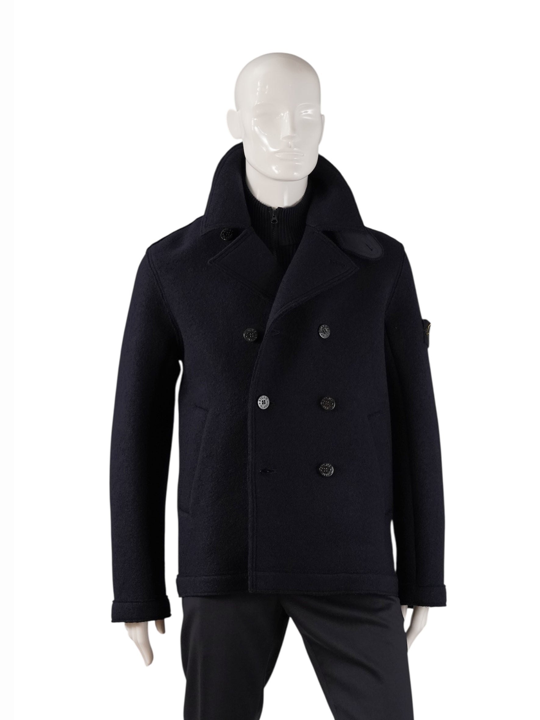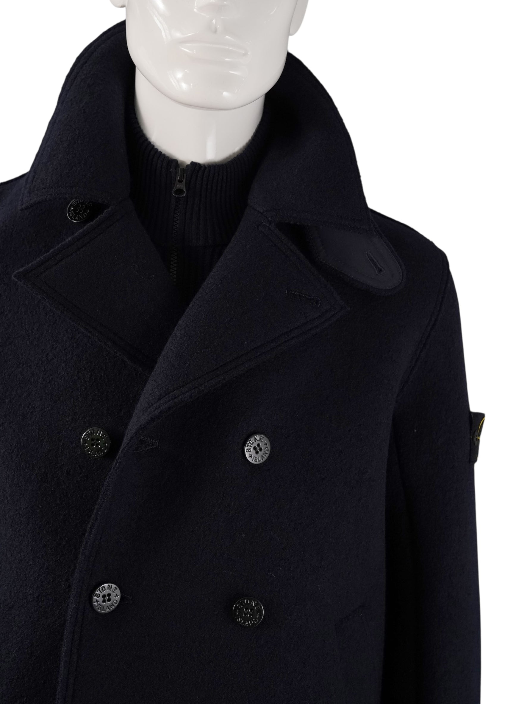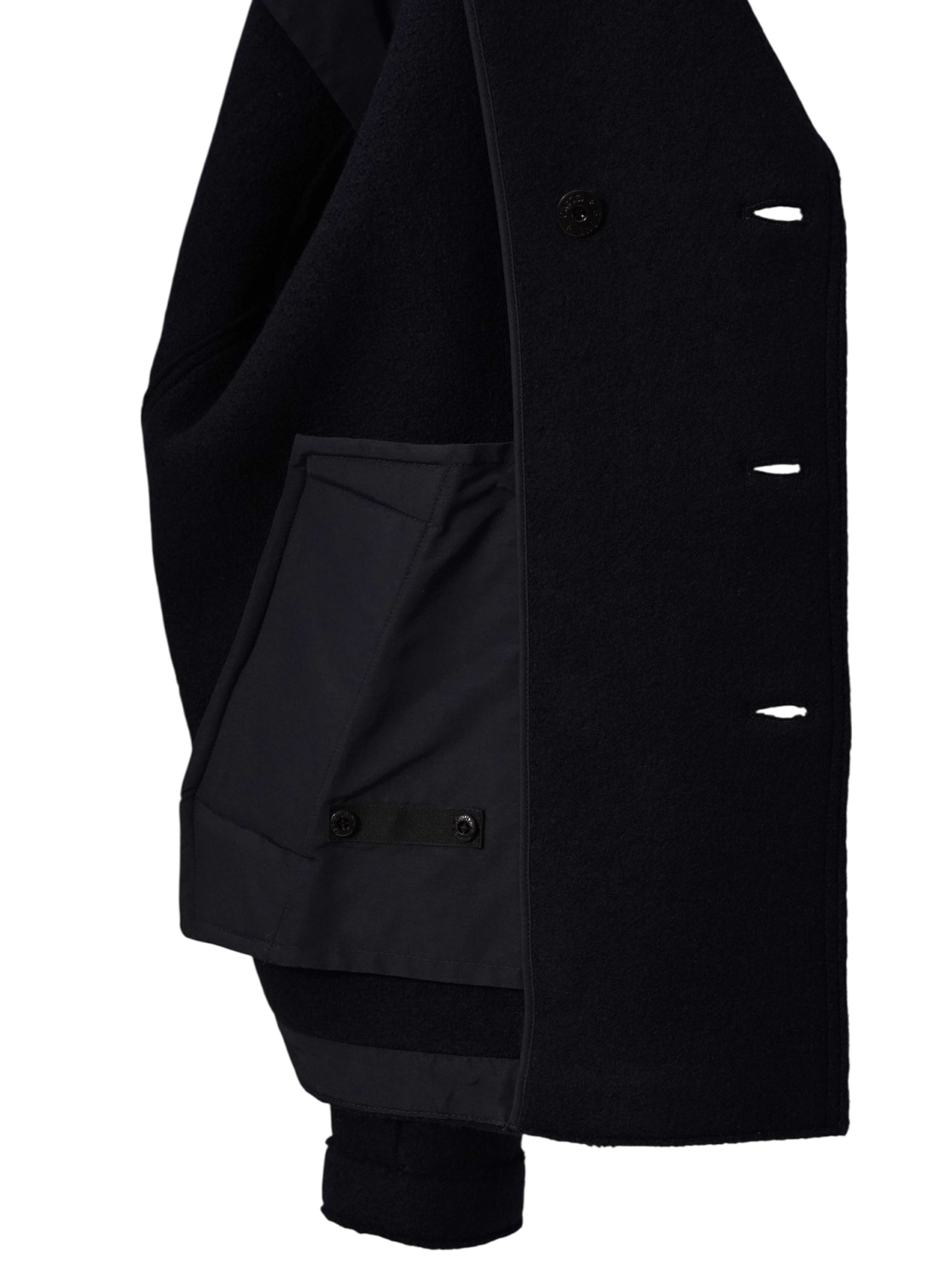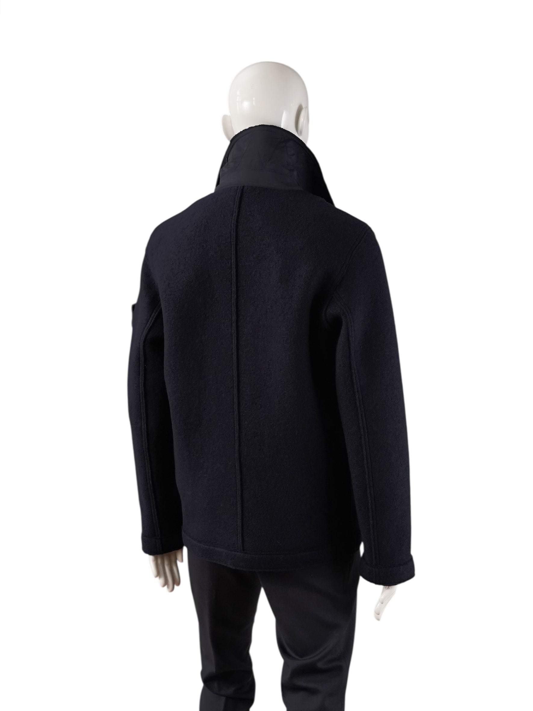 Dunkelblauer, zweireiheige Caban-Jacke aus gekochter Wolle "Ghost Piece"