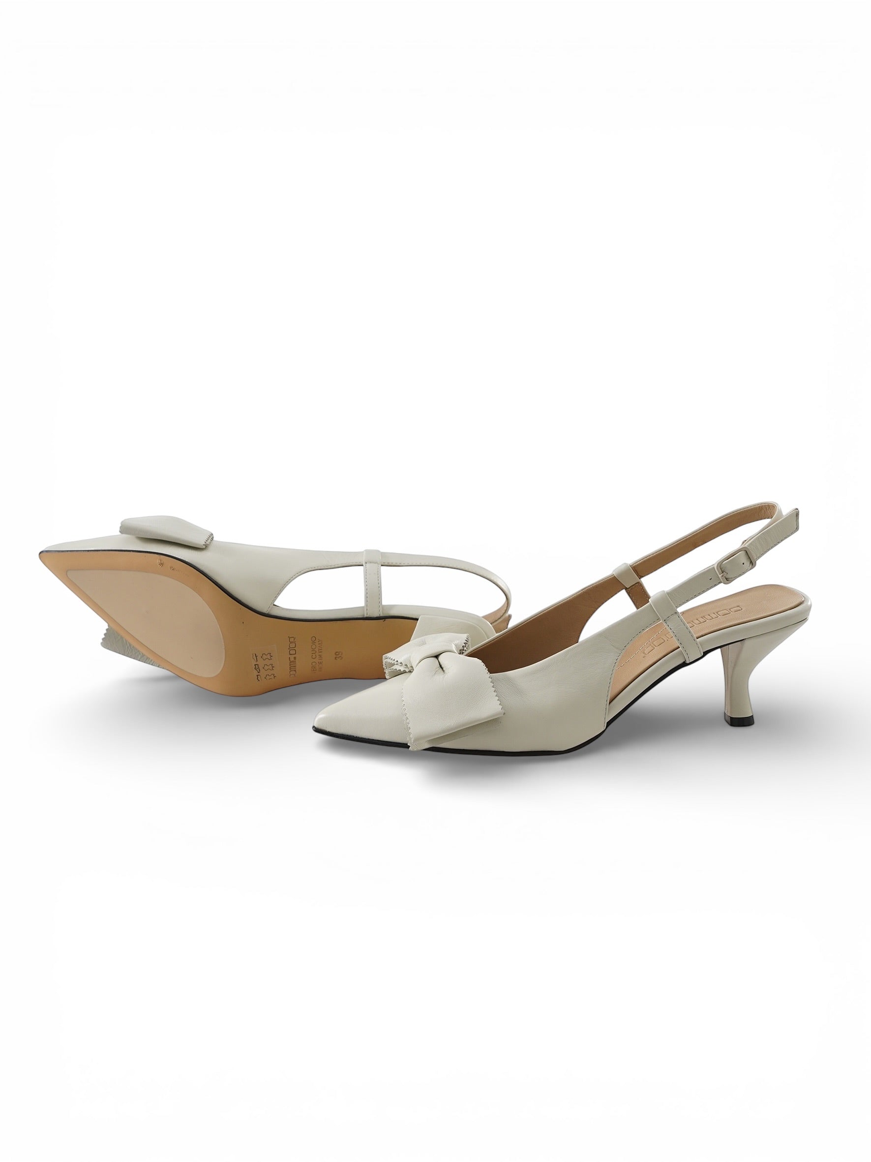 Cremefarbener Sling-Pumps mit Schleife