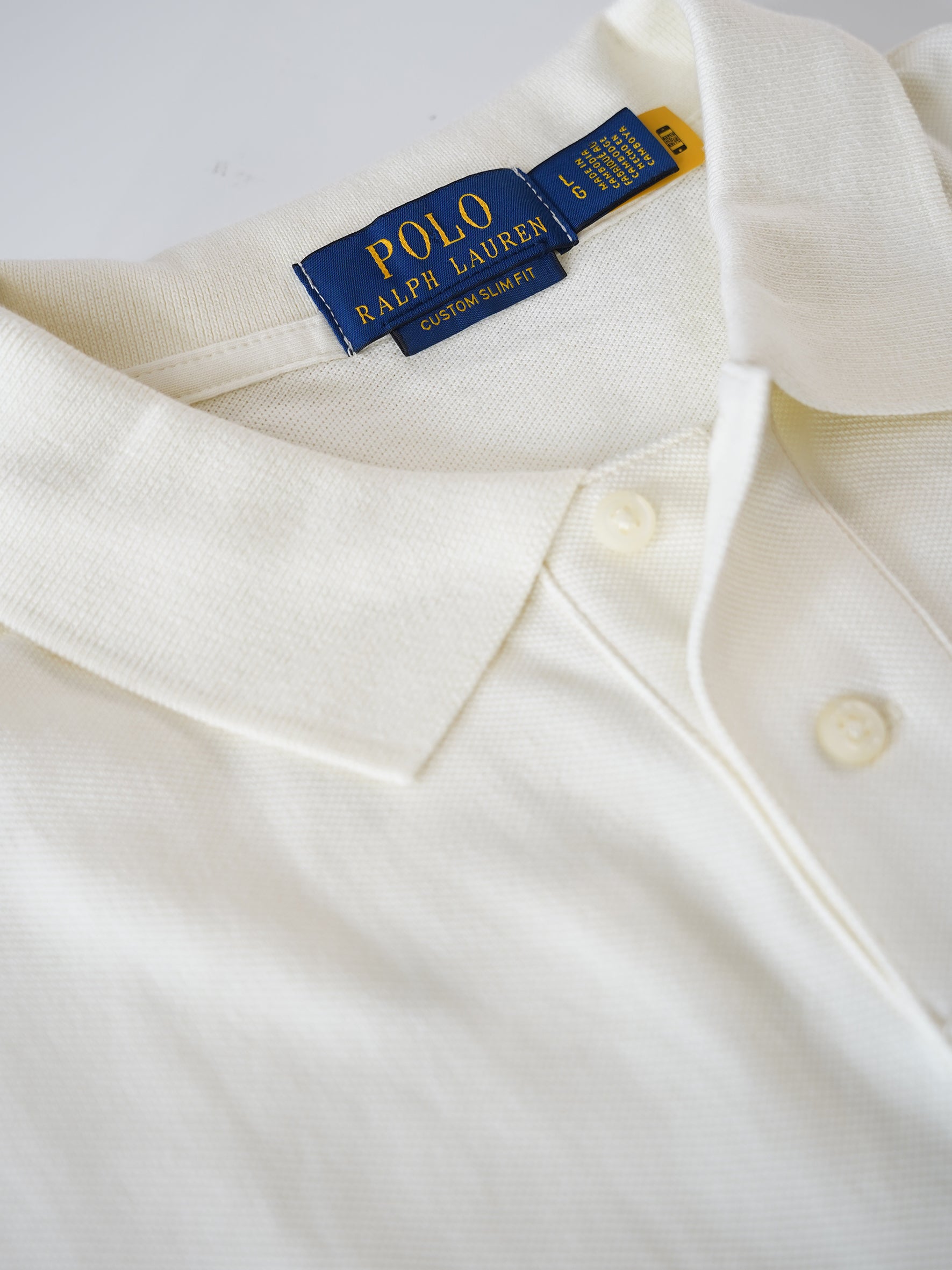 Cremefarbenes Poloshirt „Custom Slim Fit“