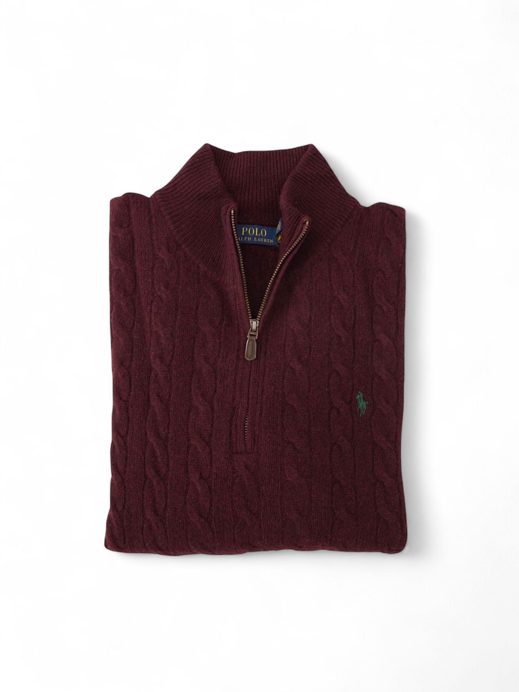 Bordeauxfarbener Troyer mit Zopf-Muster