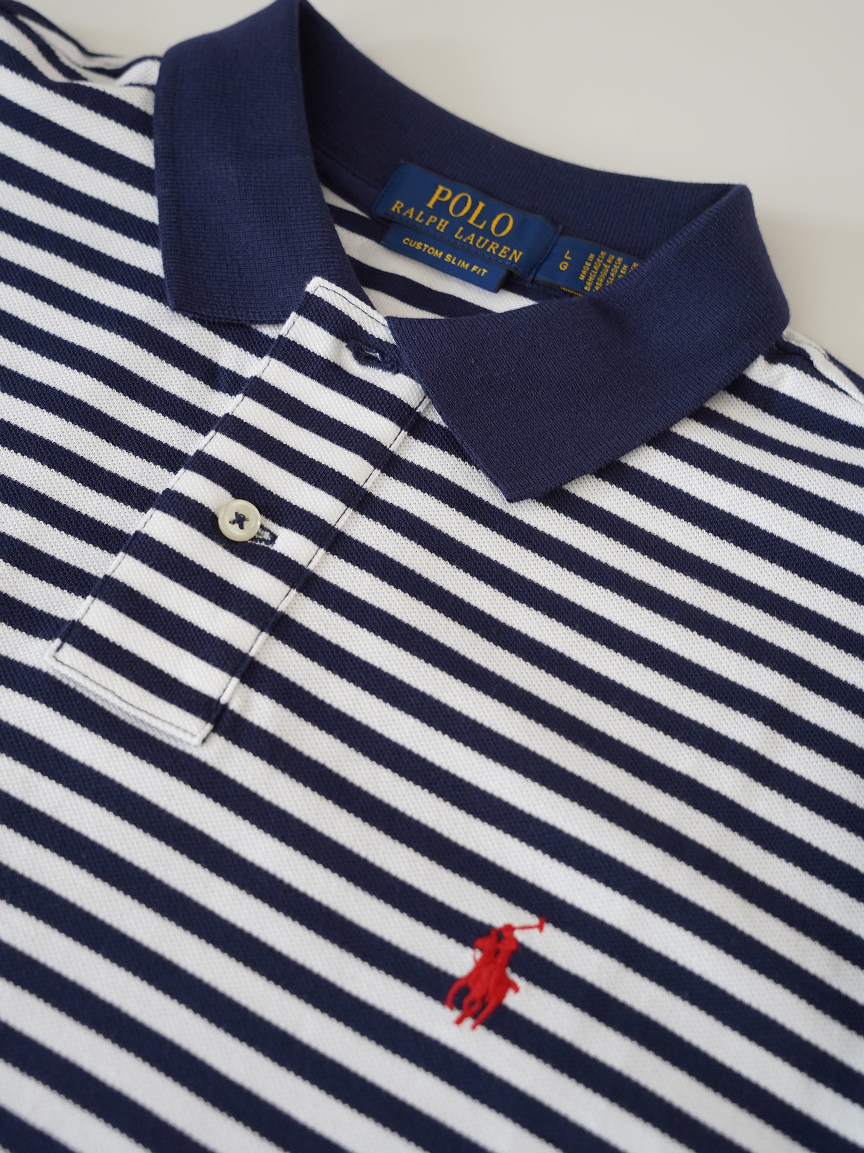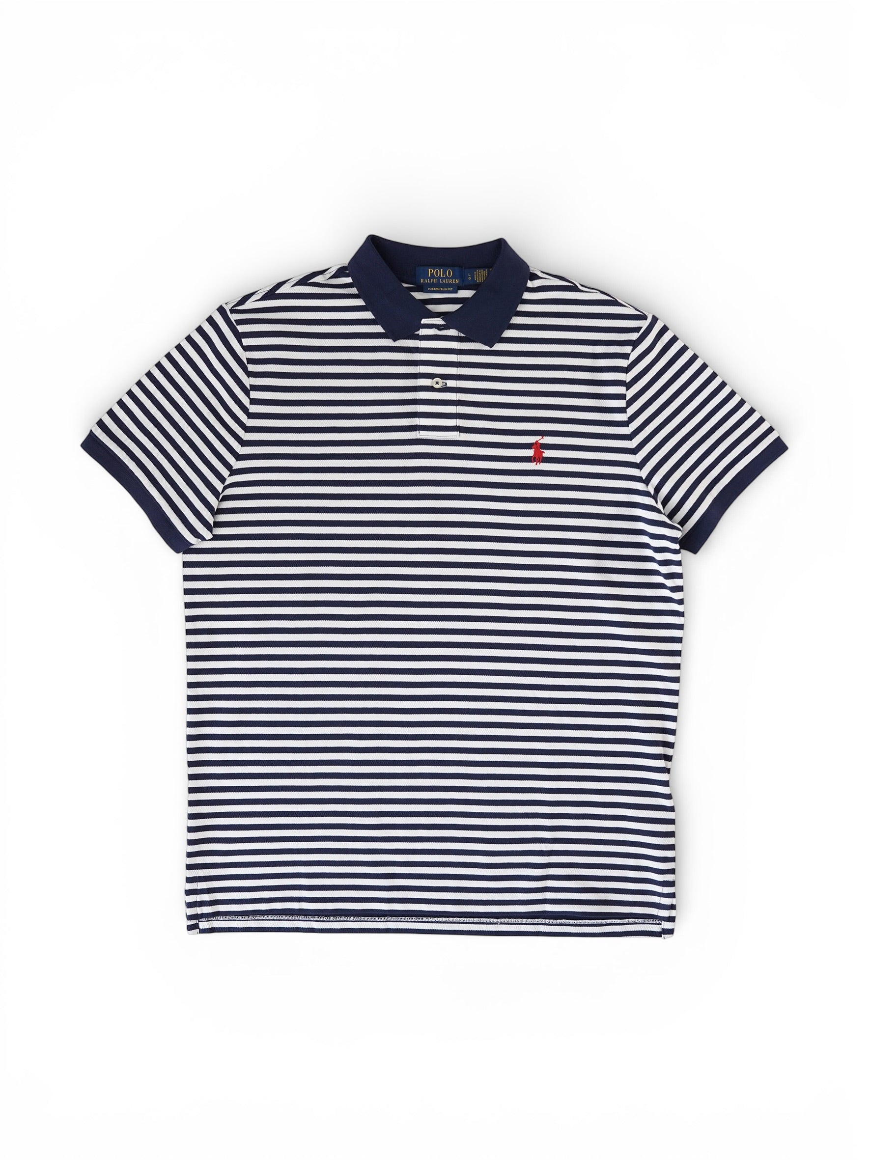 Dunkelblau/Weiß gestreiftes Poloshirt „Custom Slimfit“