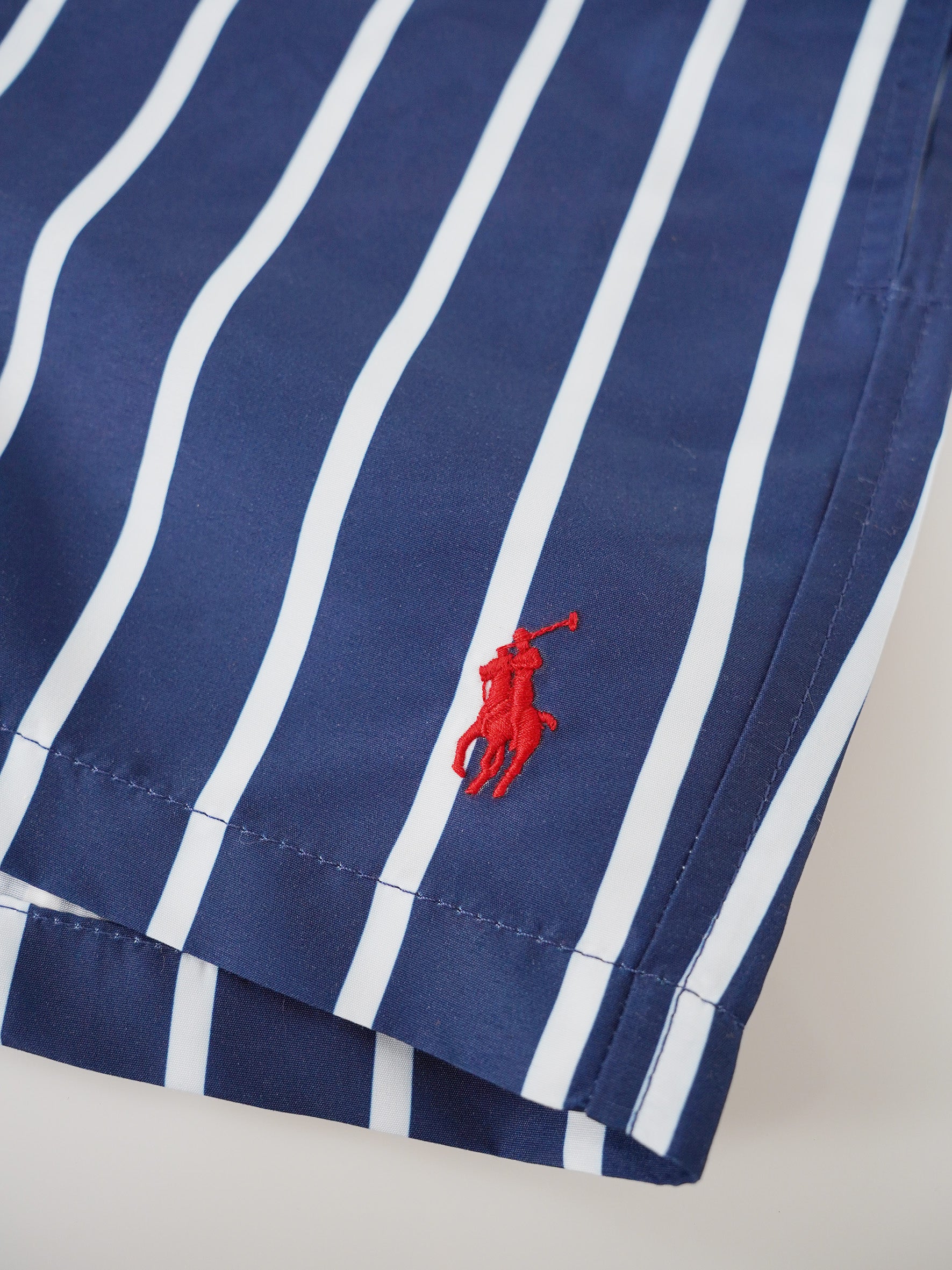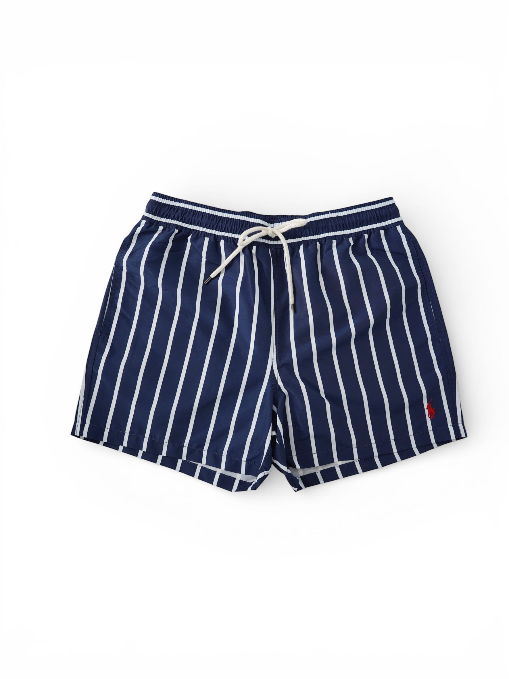 Dunkelblaue/Weiß, gestreifte Swim-Shorts