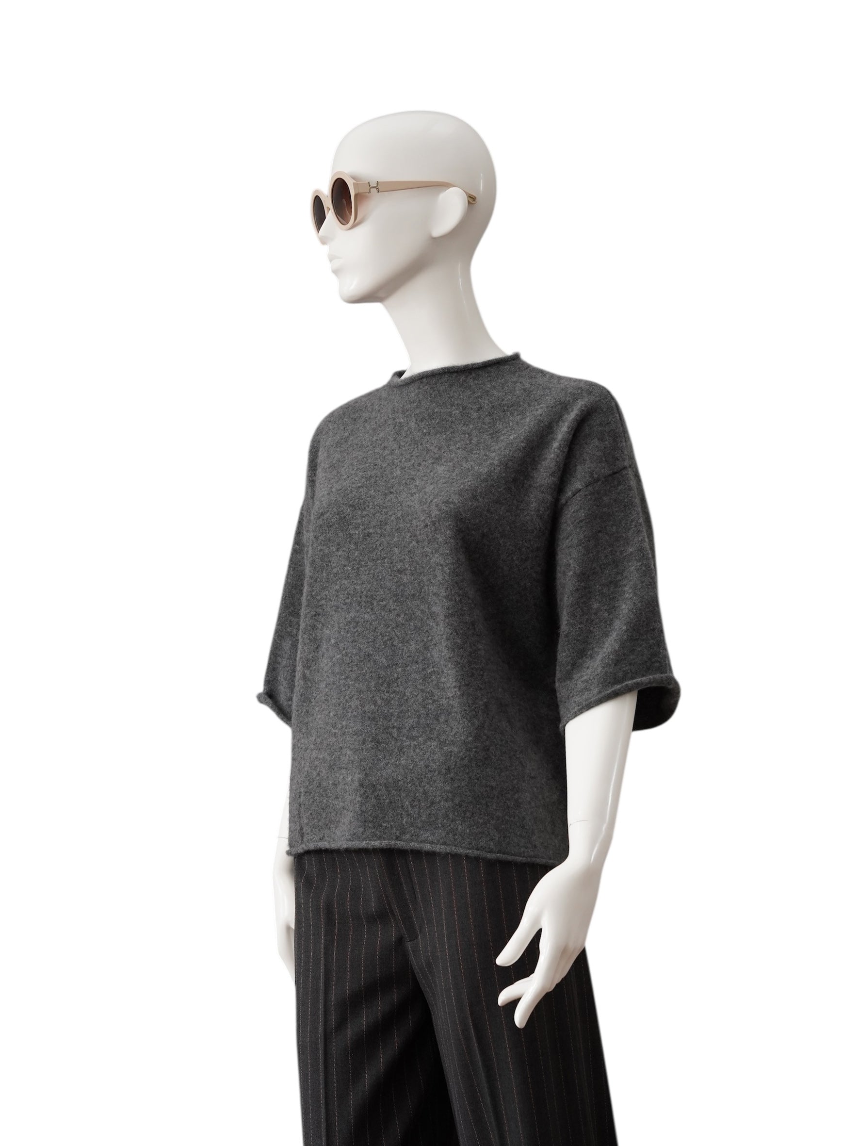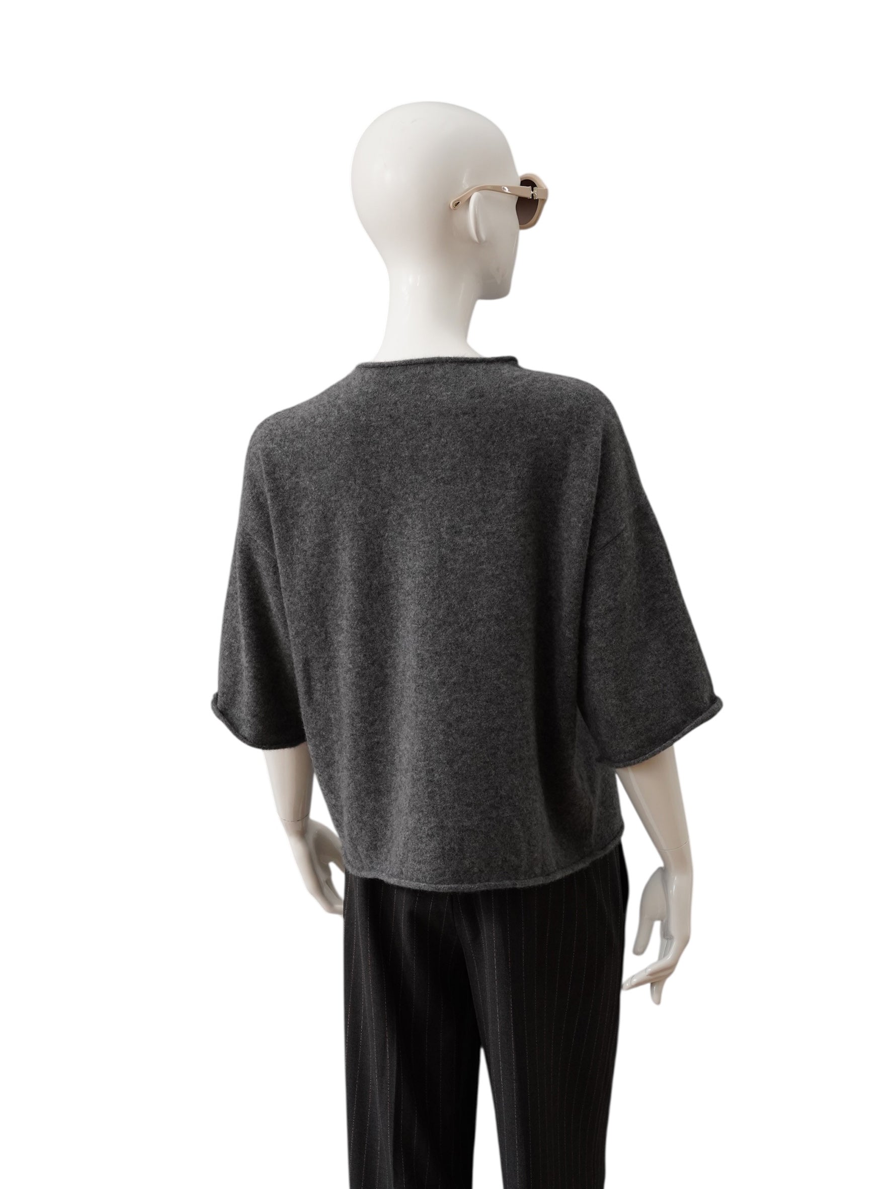 Anthracite-colored half-sleeve sweater made of cashmere and cotton