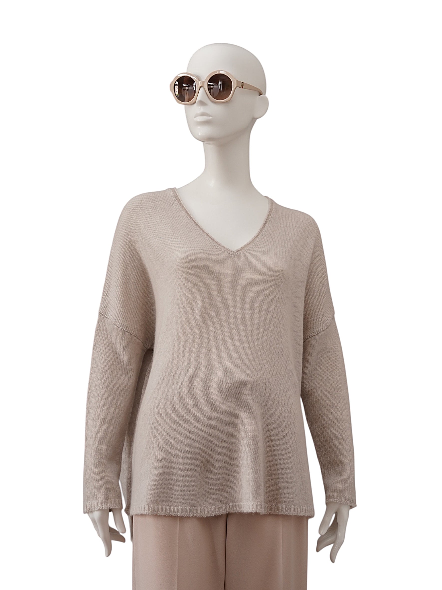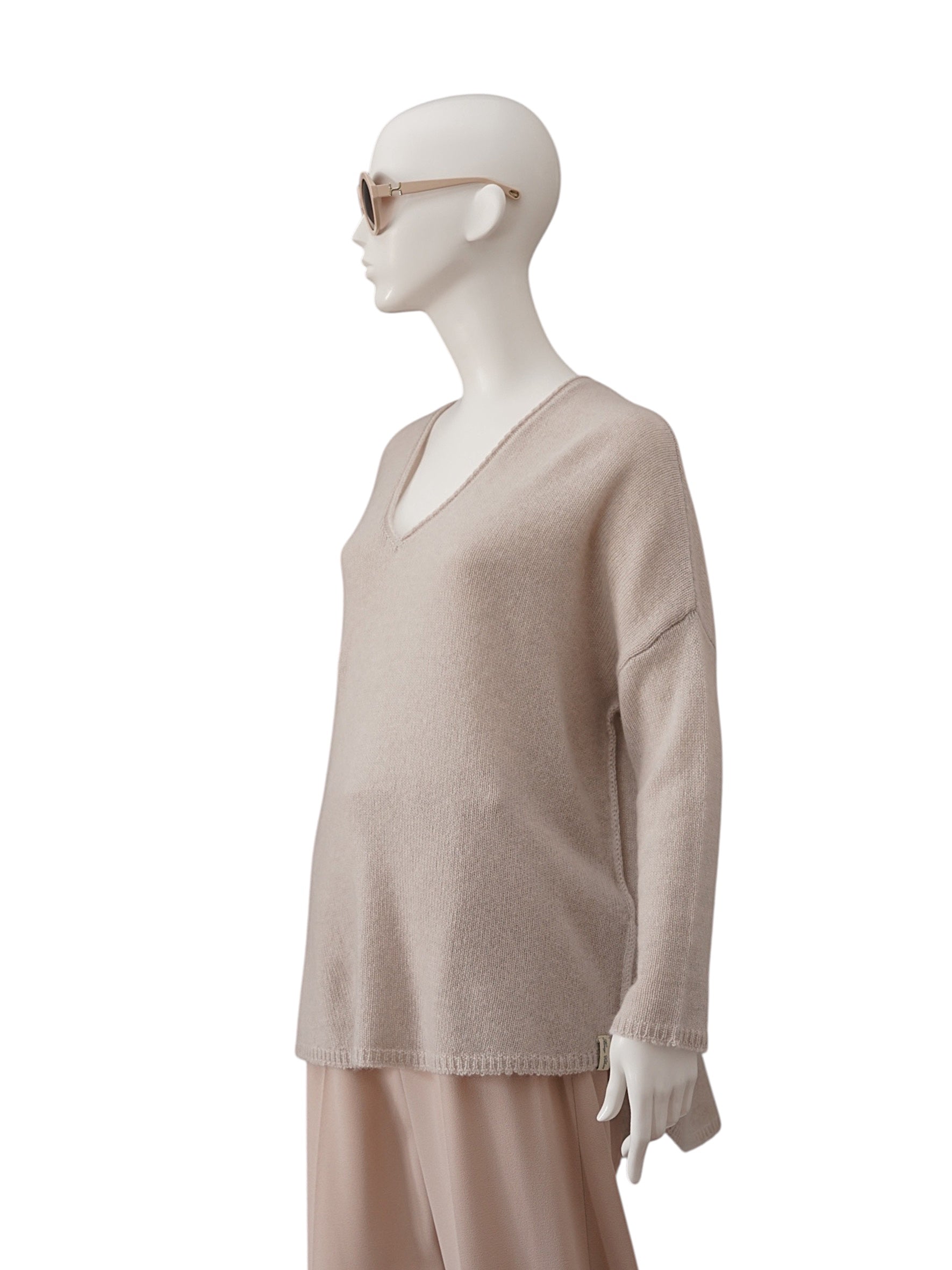 Sand-colored cashmere V-neck