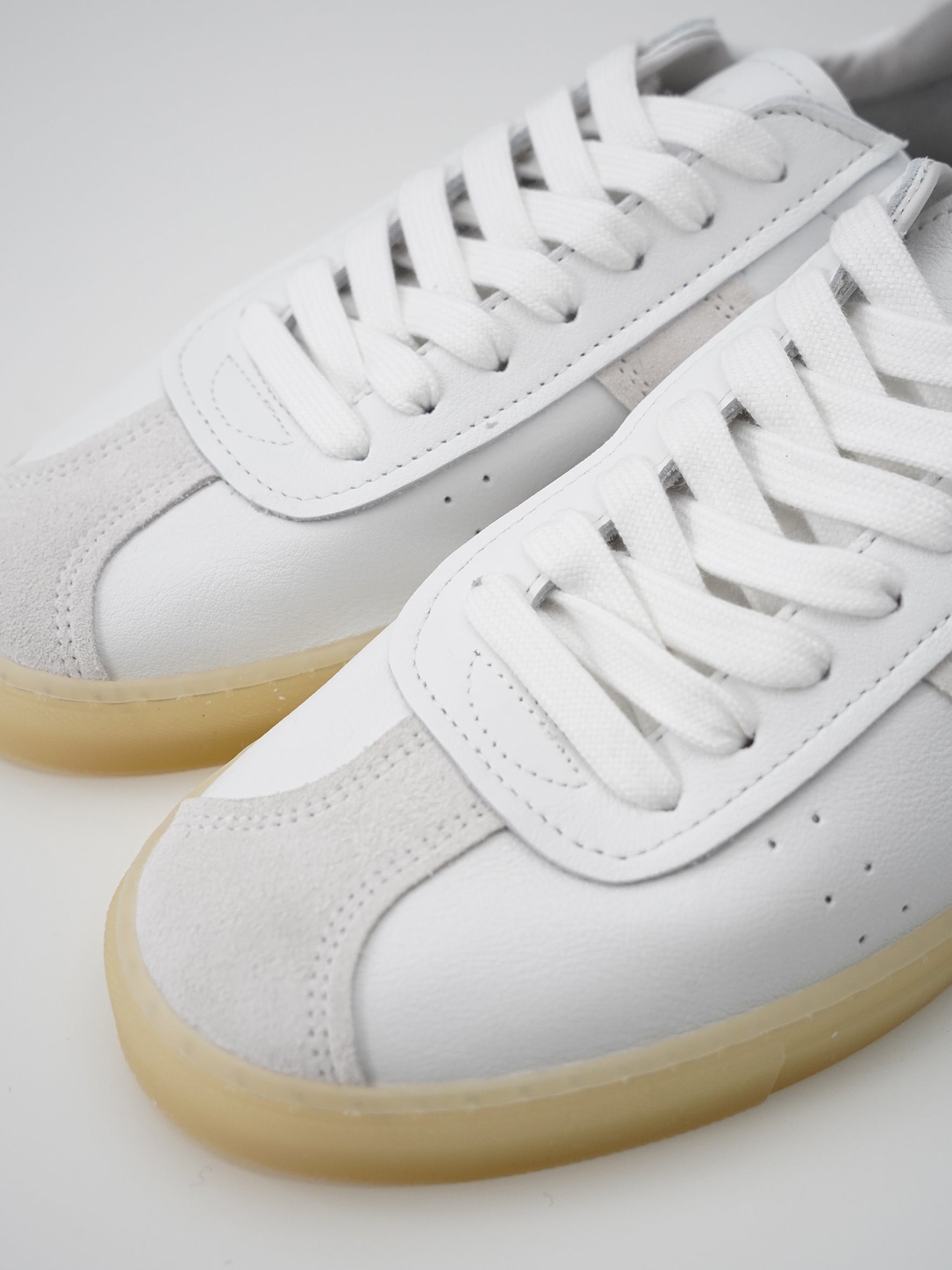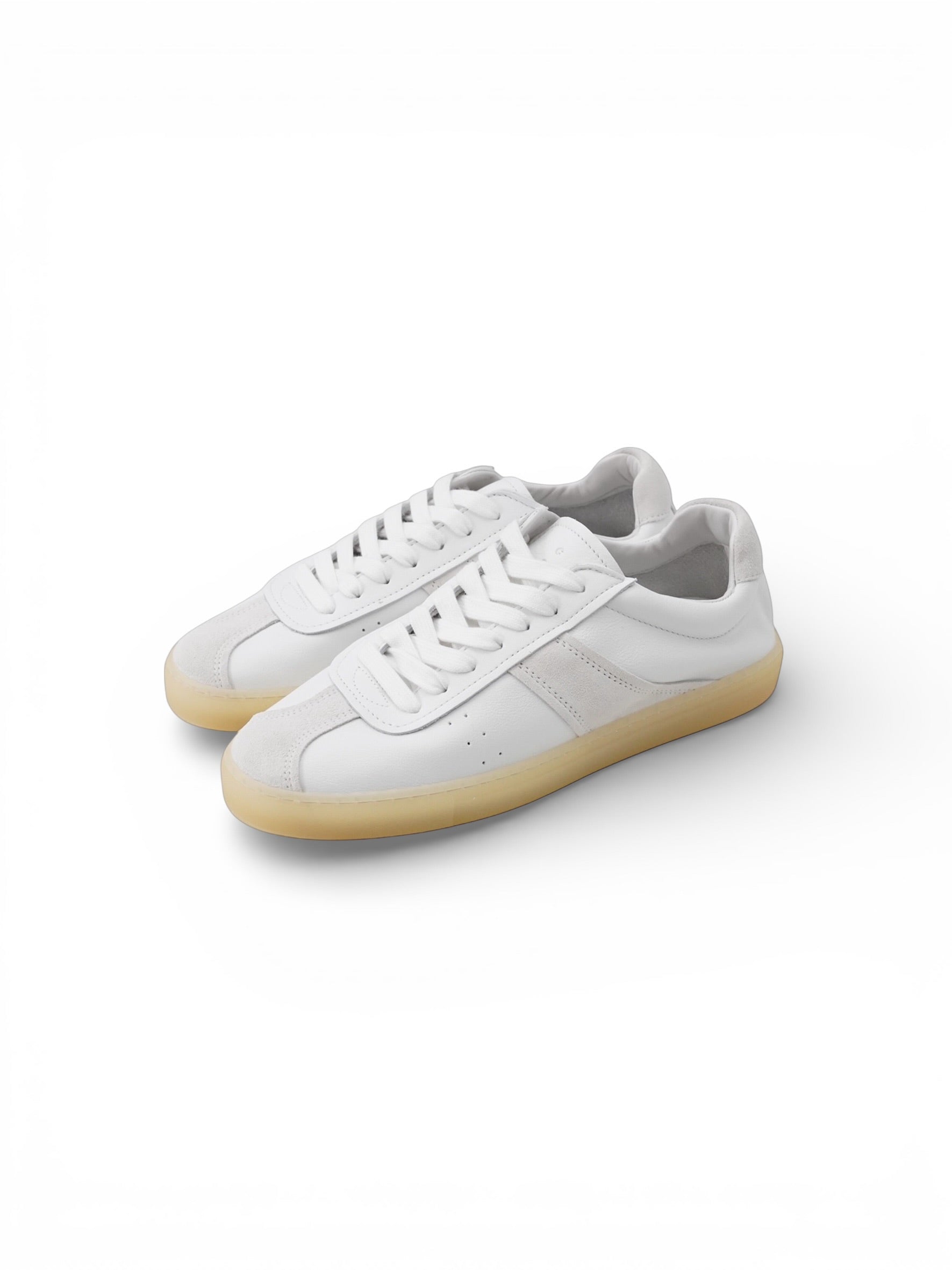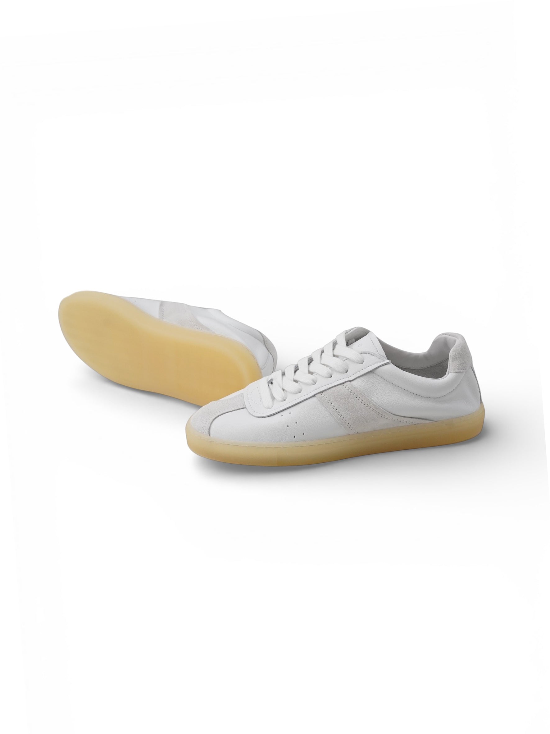 Weißer Sneaker mit sandfarbenen Velour-Details