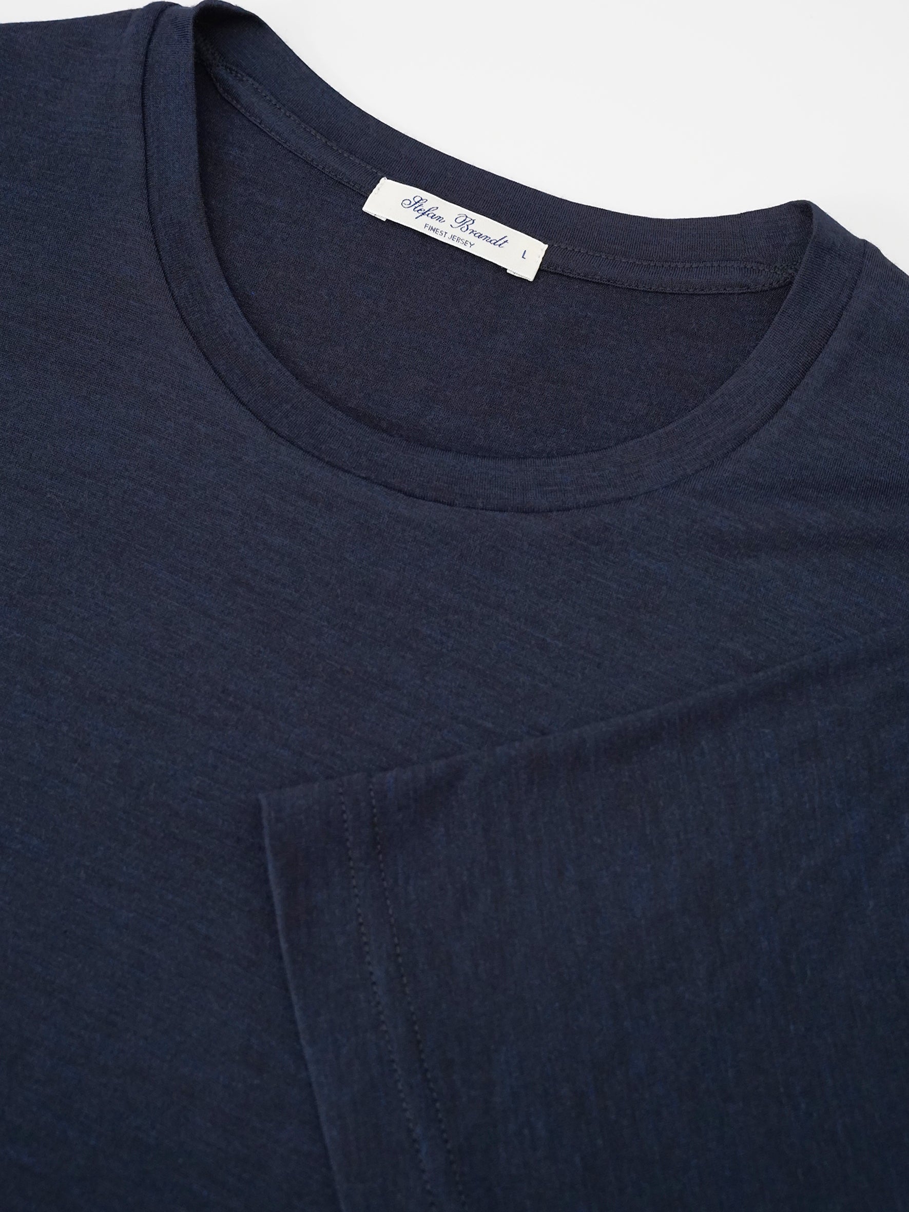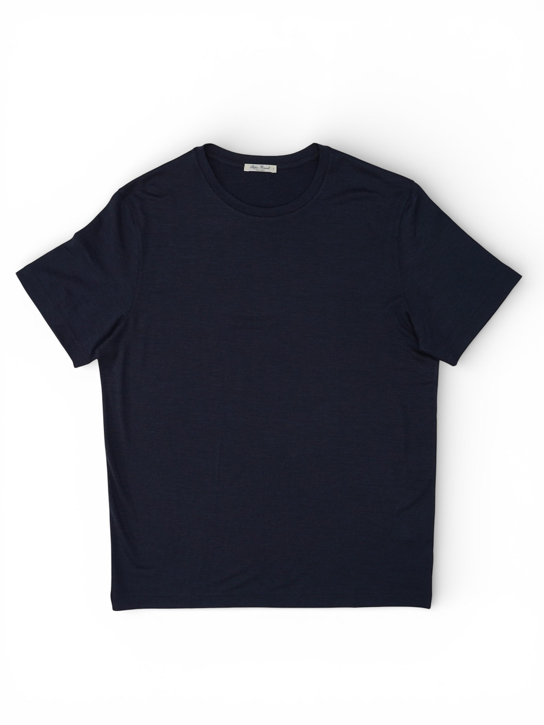 Dunkelblaues Jersey T-Shirt aus Wolle