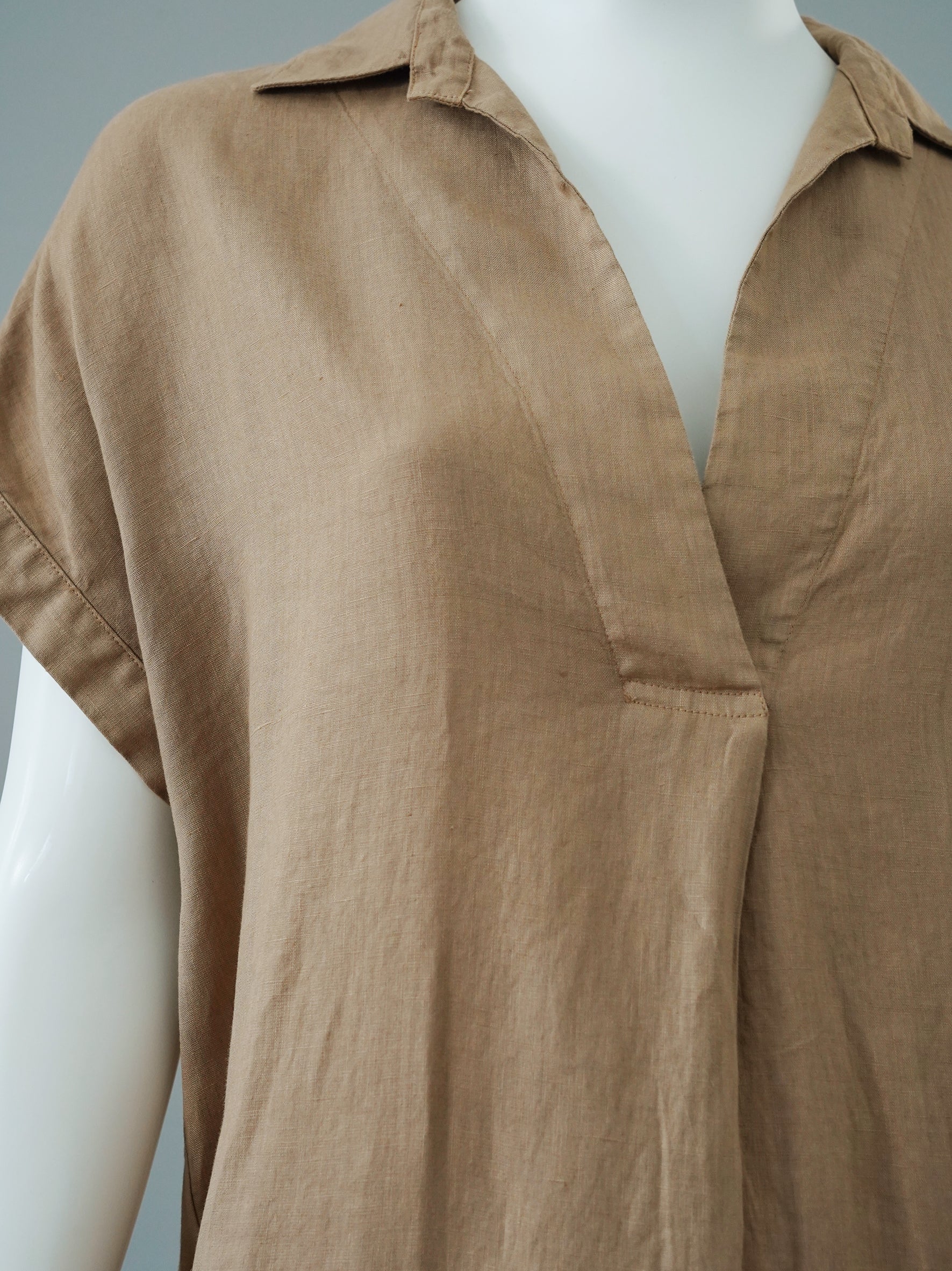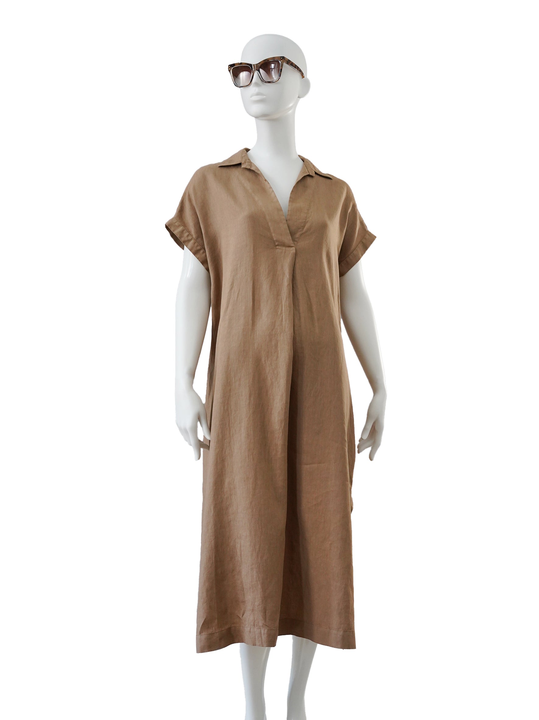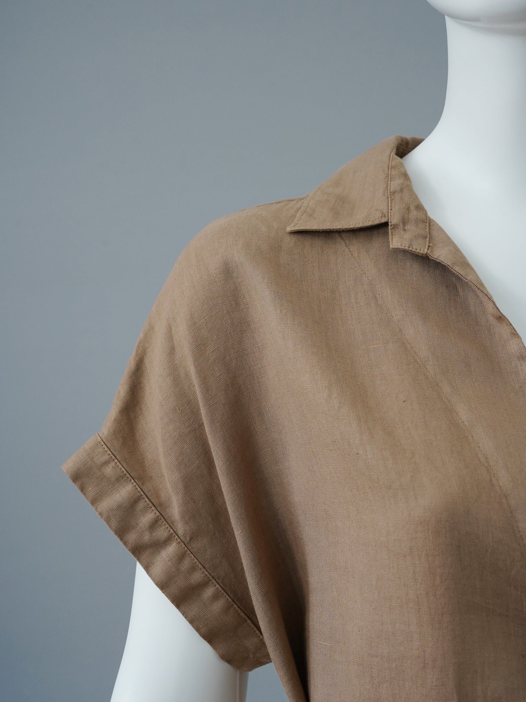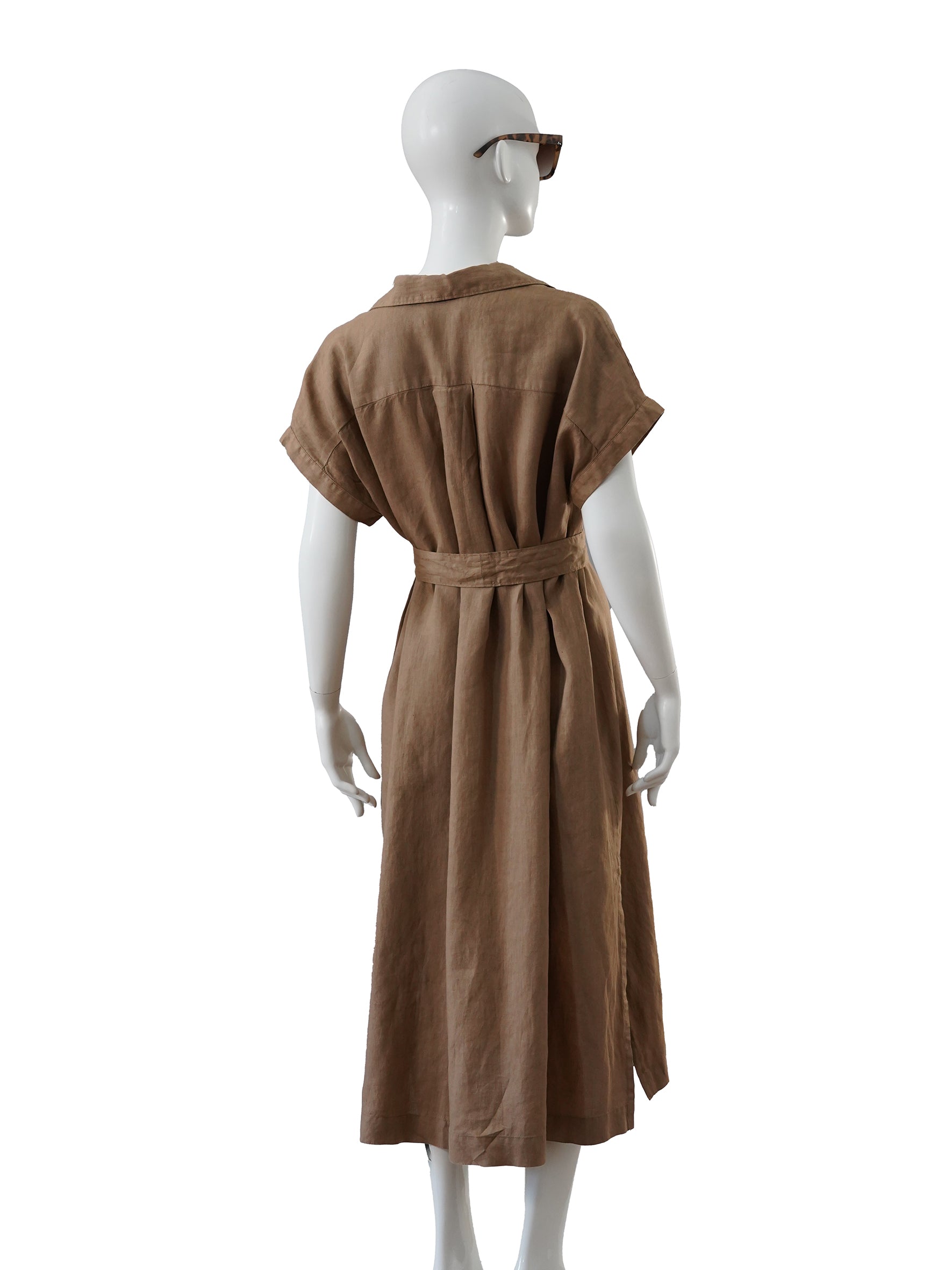 Sandfarbenes Leinen-Kleid mit Gürtel
