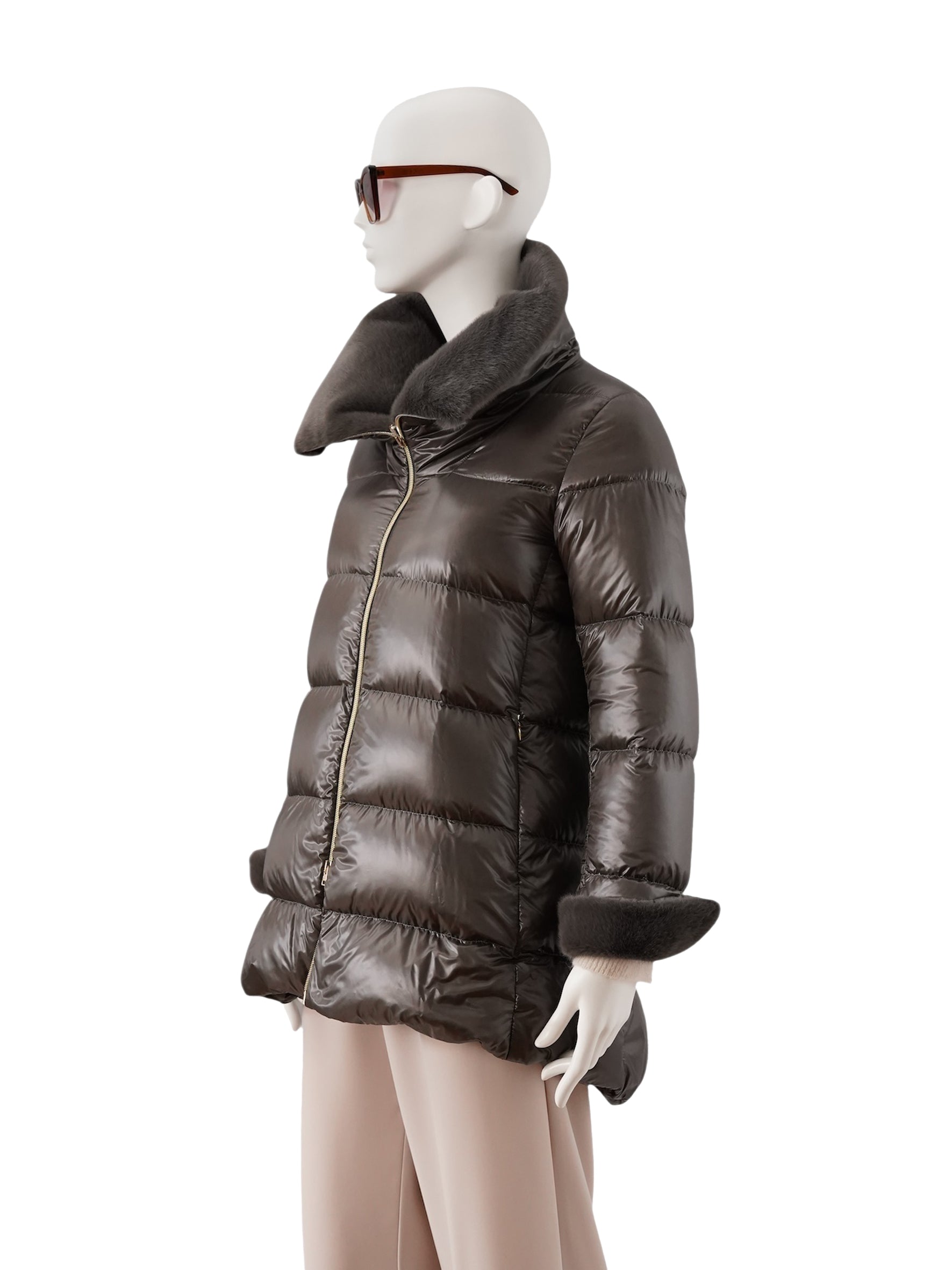 Dunkelgraue Daunenjacke mit Fake-Fur Kragen