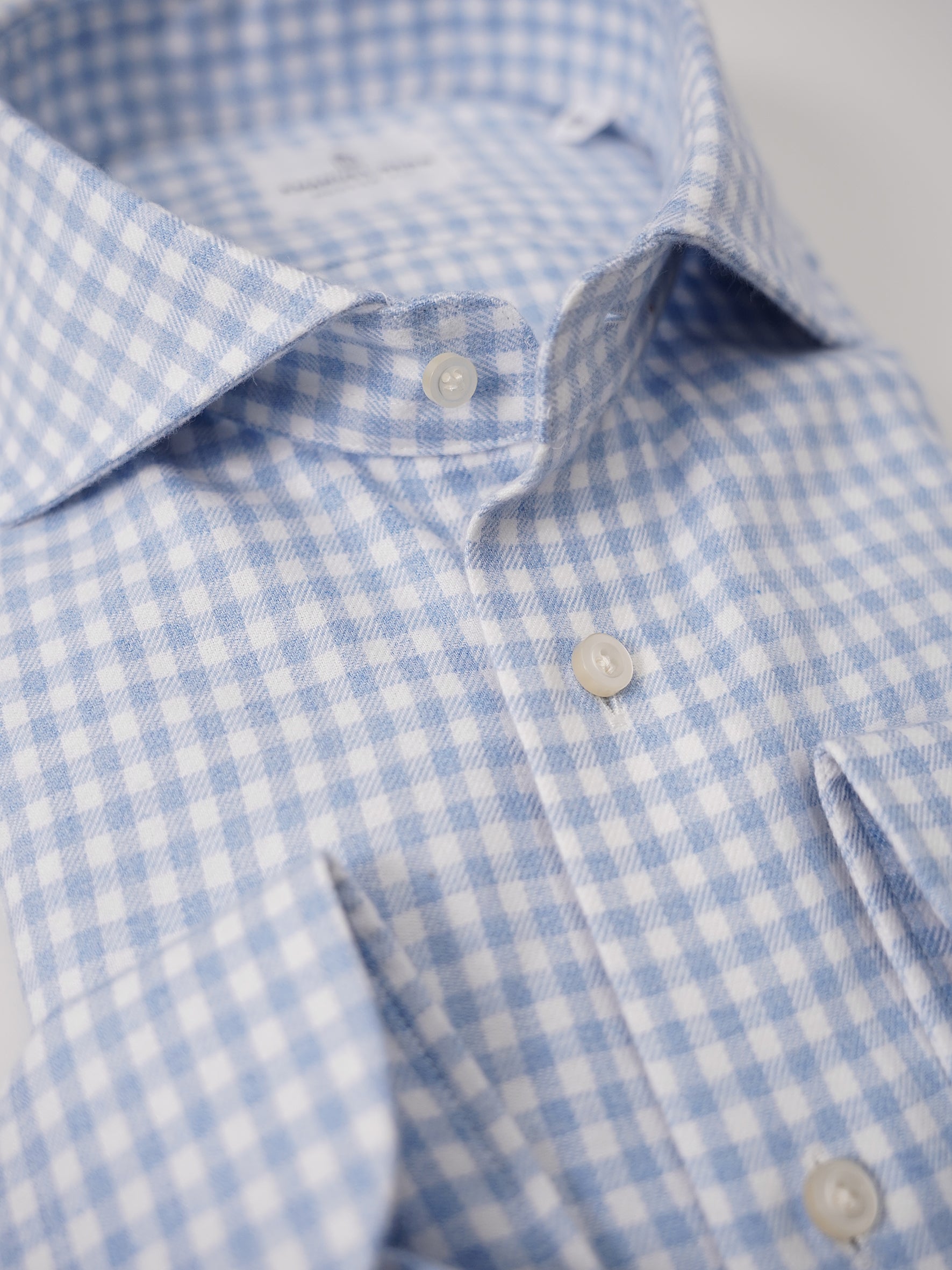 Light blue/white checked flannel shirt