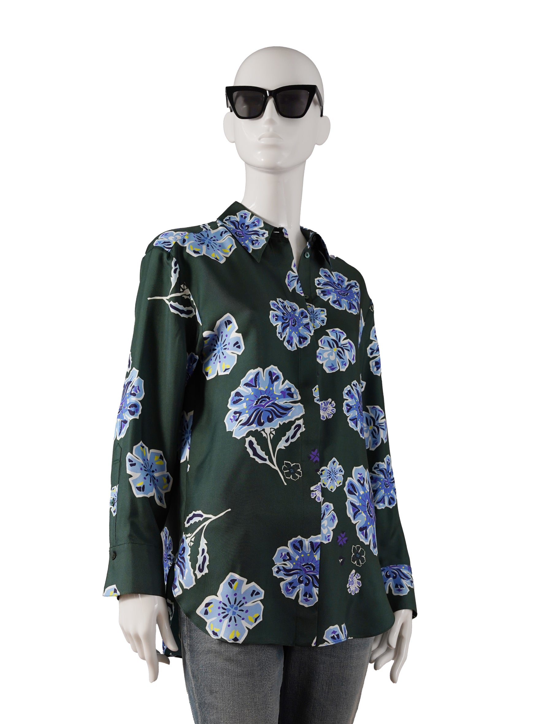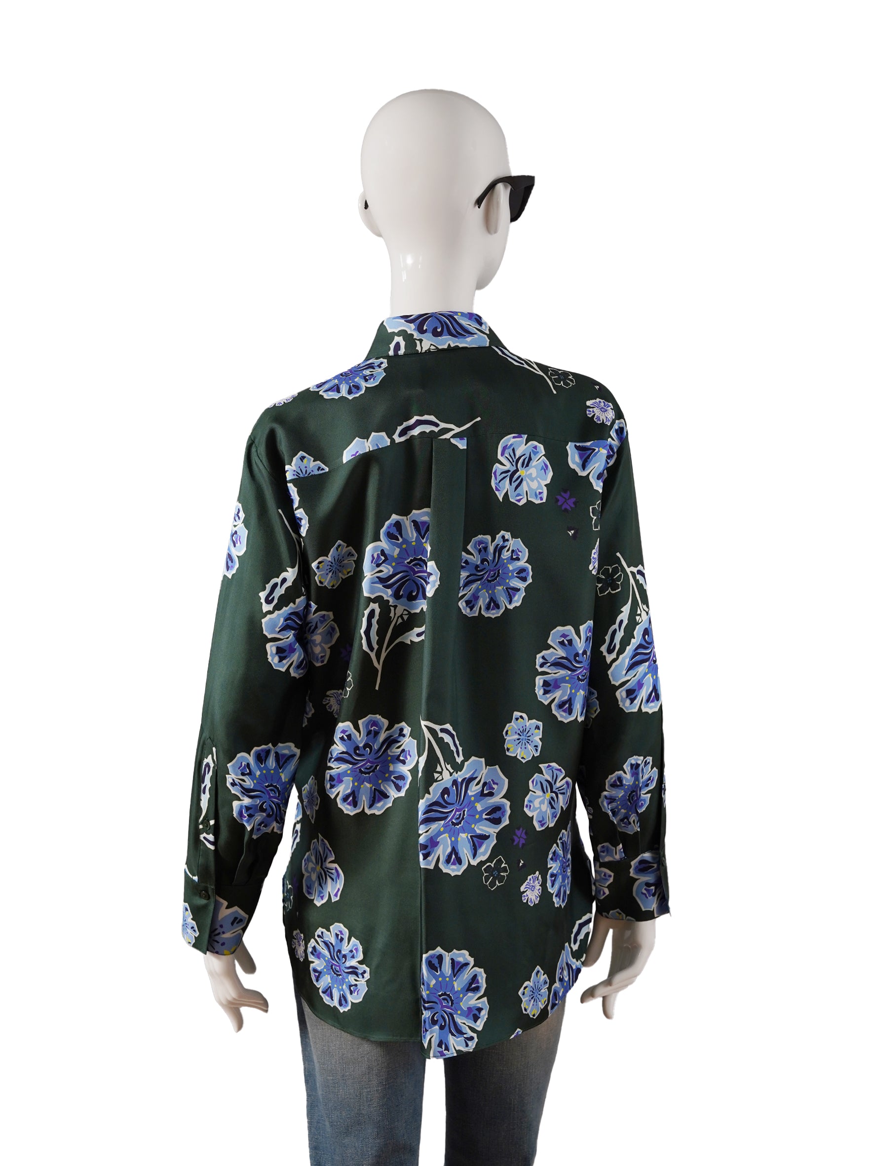 Grass green patterned silk blouse