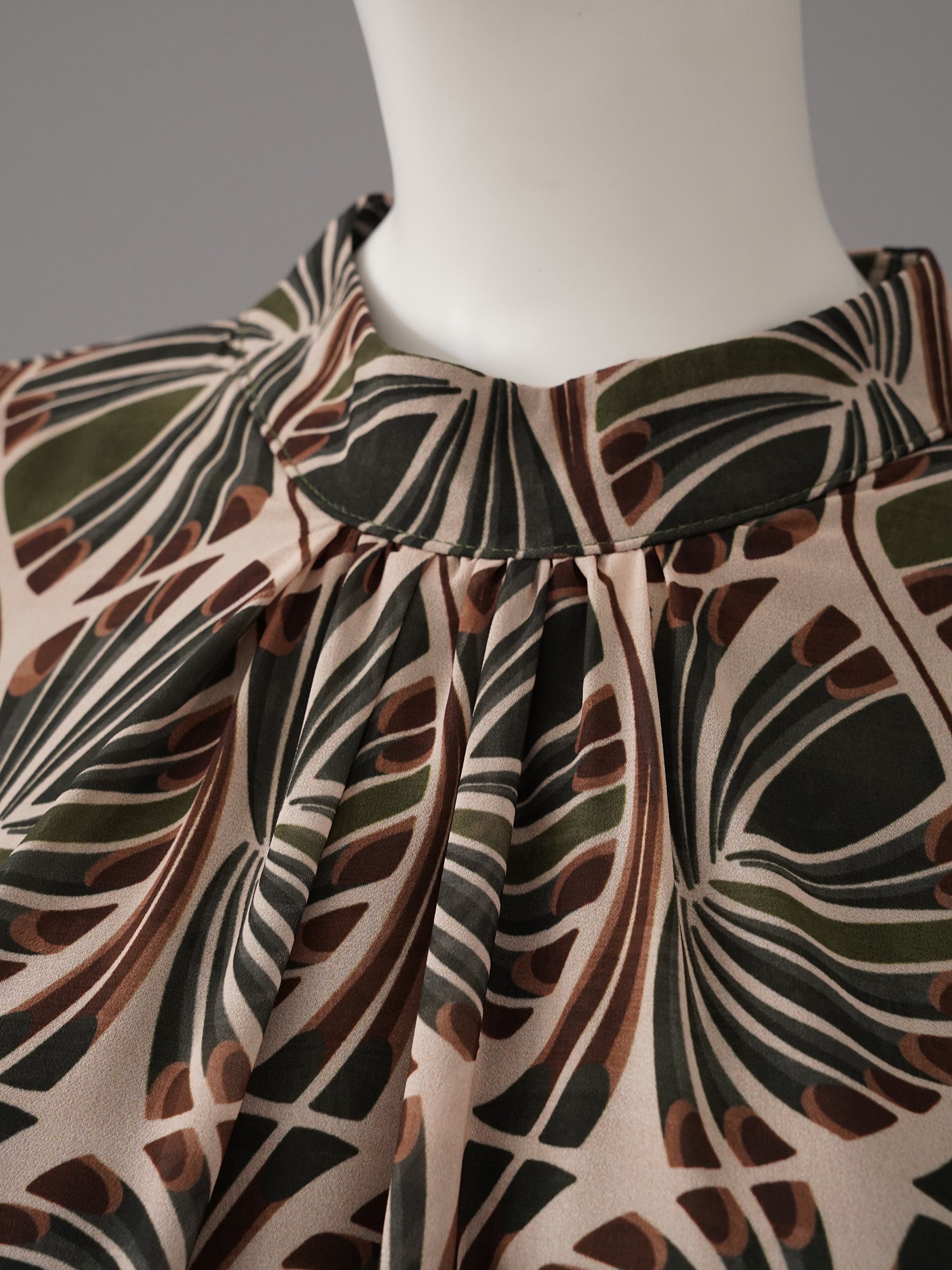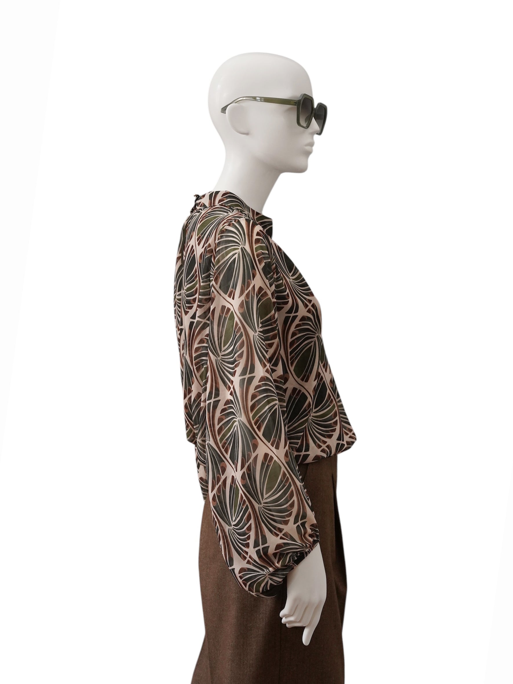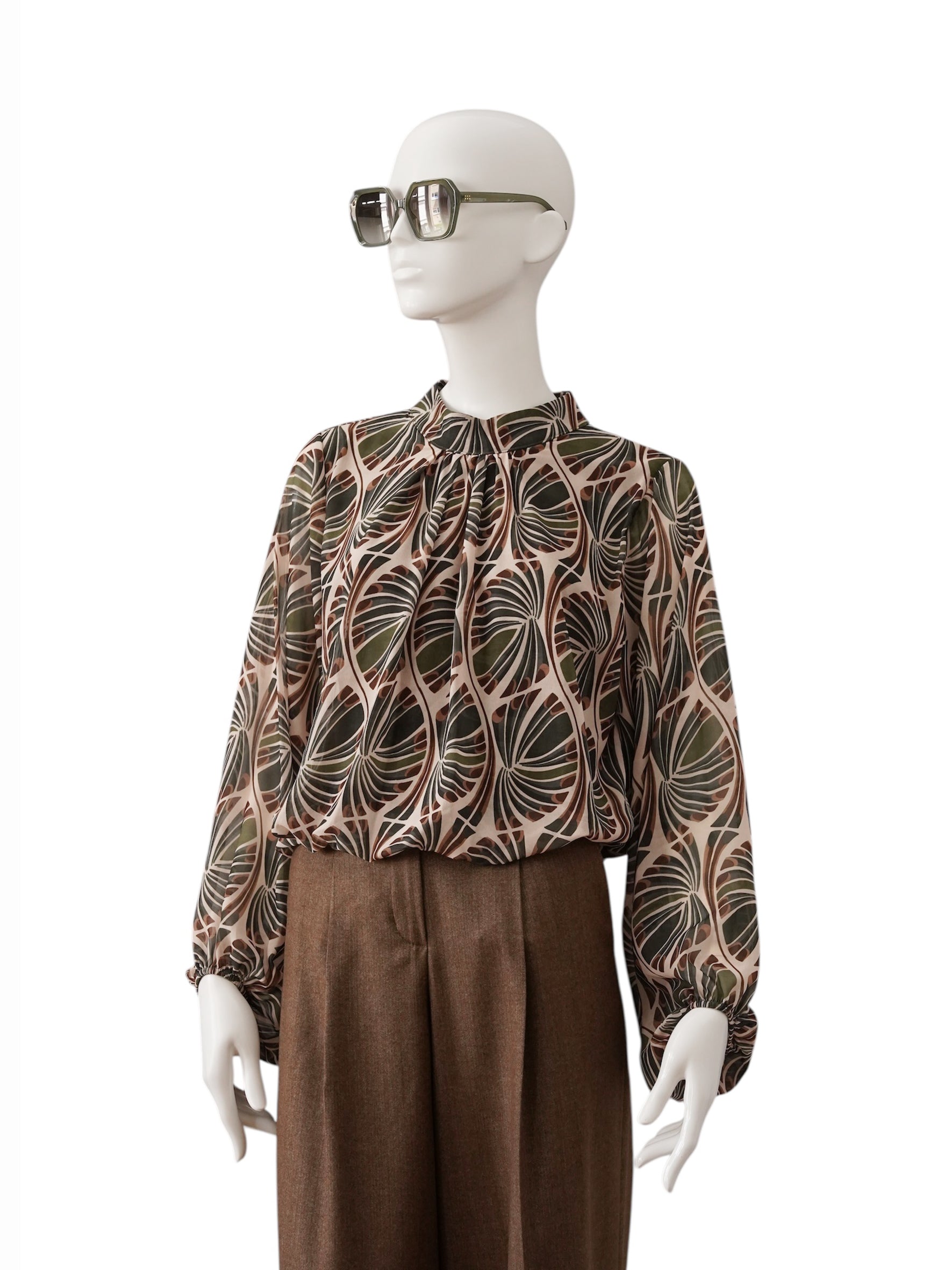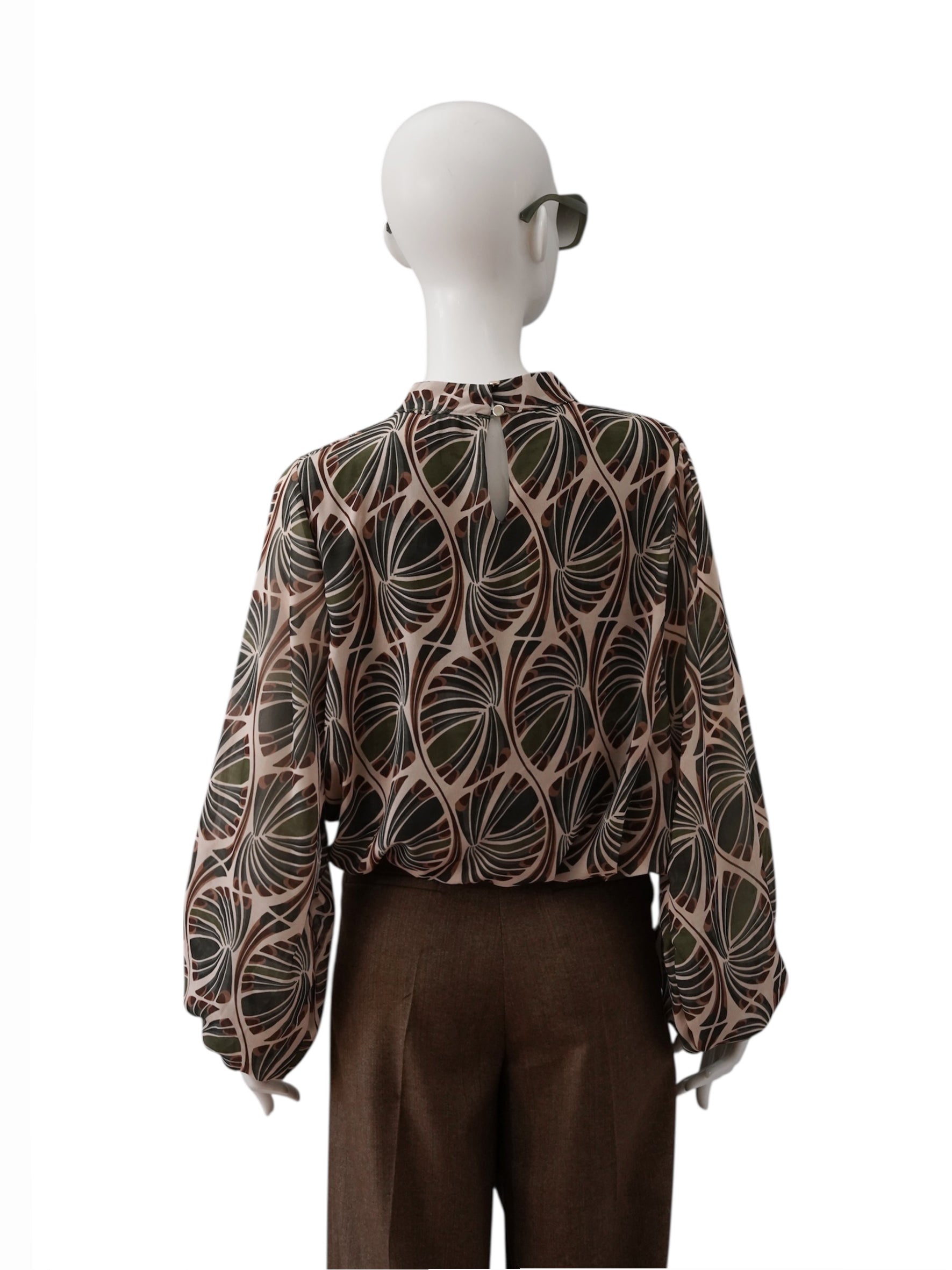 Sandfarbene, gemusterte Bluse