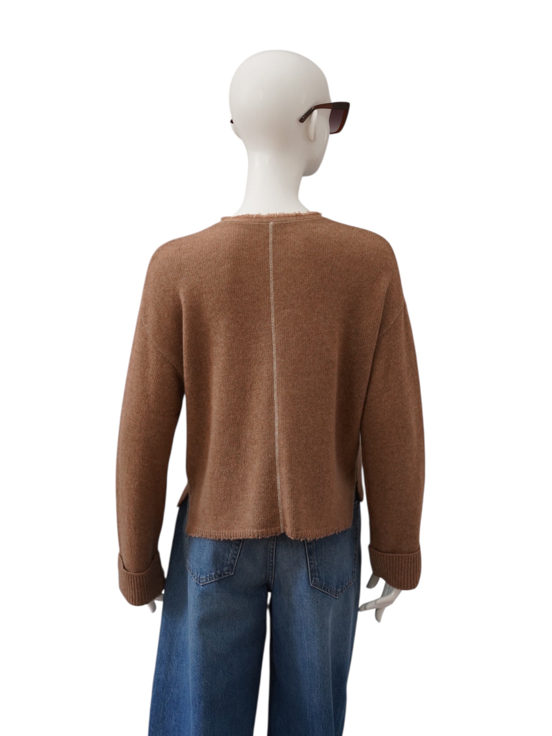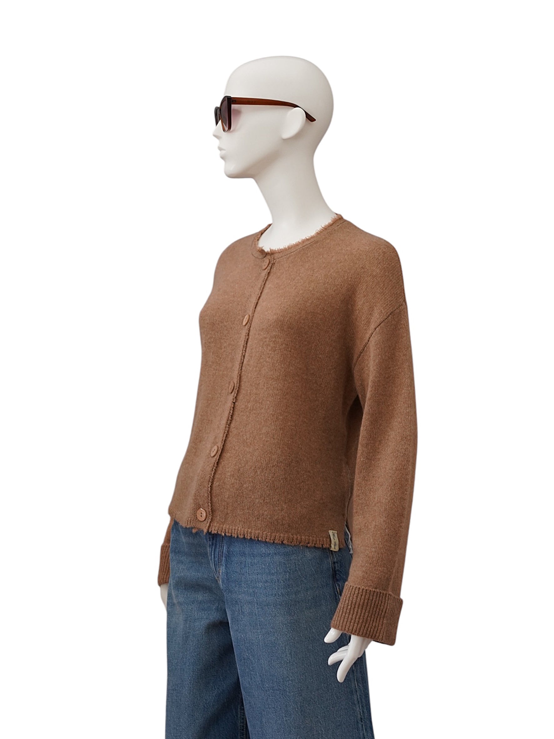 Hazelnut-colored cardigan made of cashmere and cotton