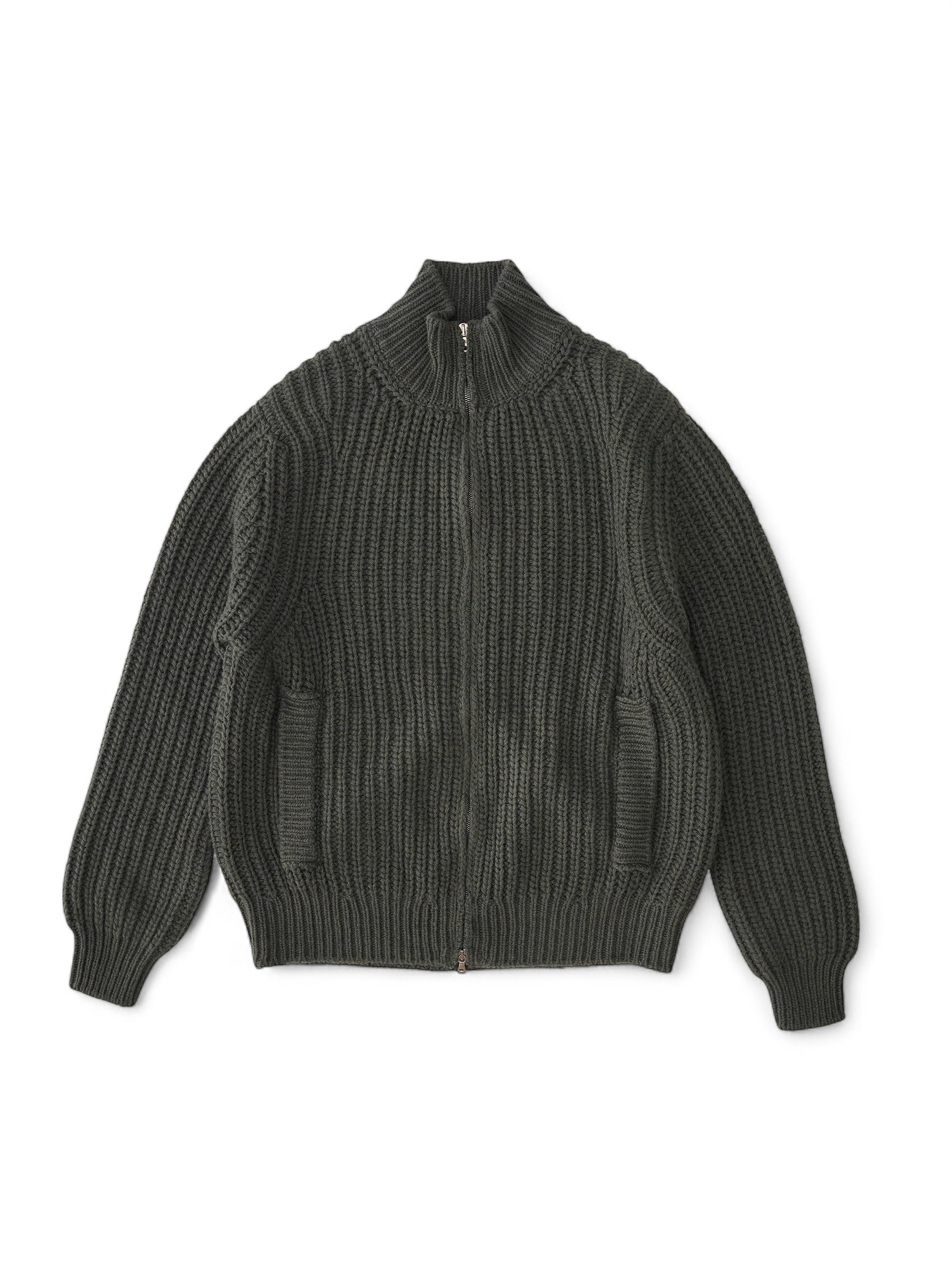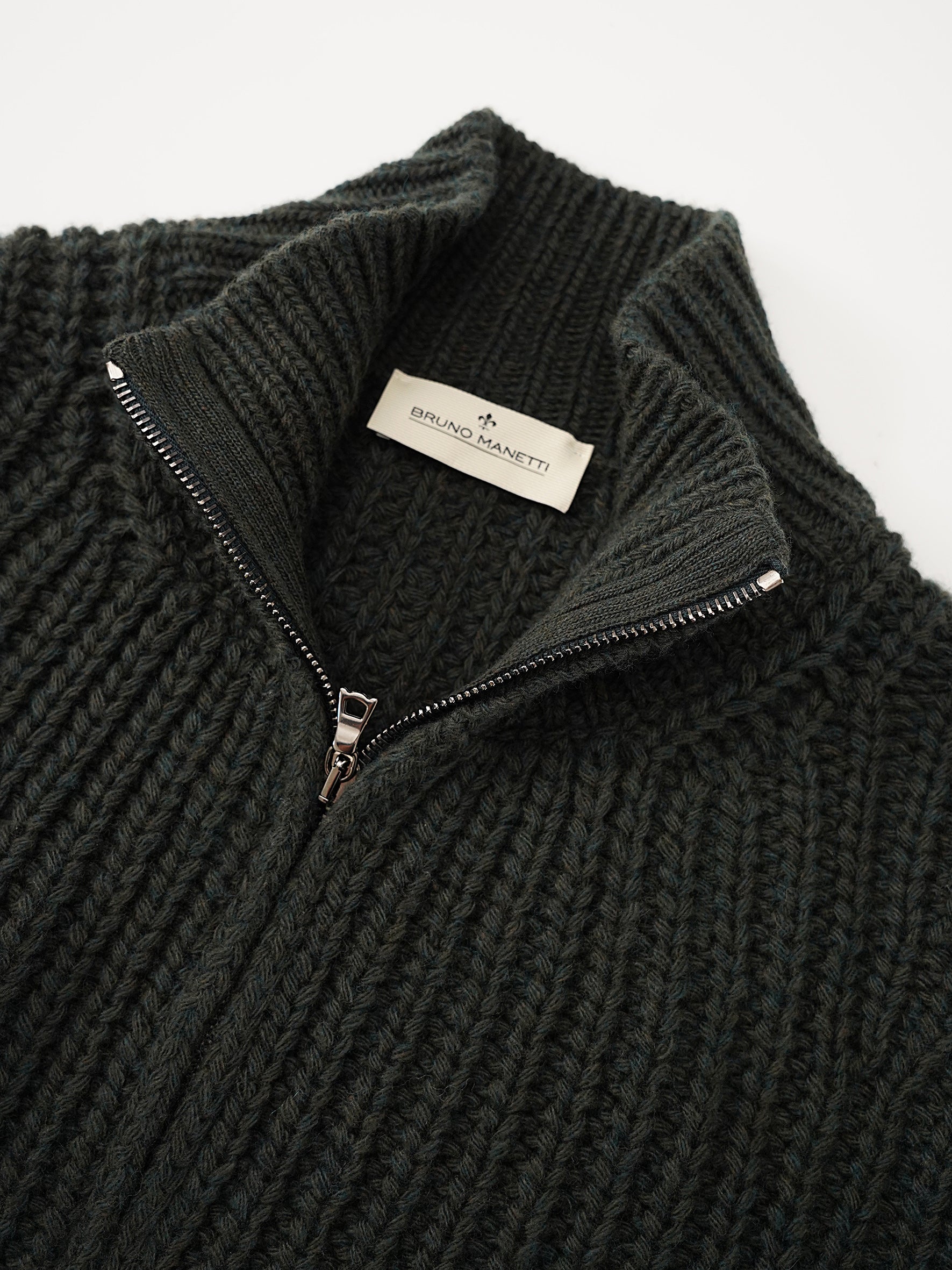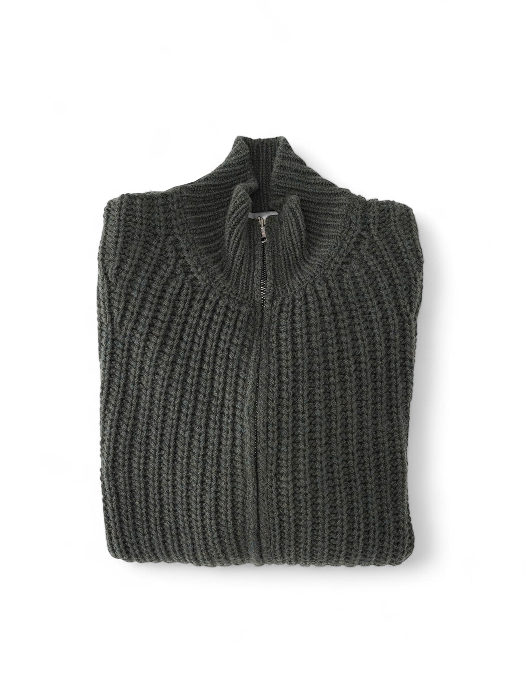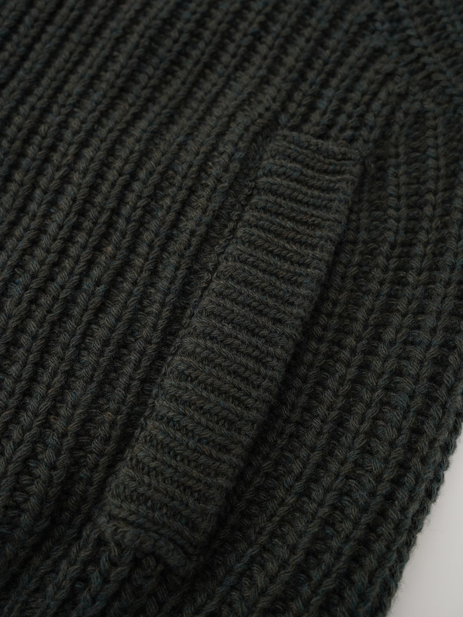 Bottle-colored, chunky knit cardigan made of wool and cashmere