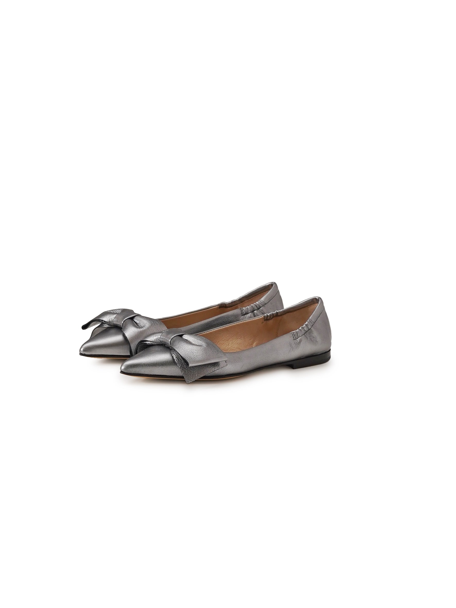 Dieser titanfarbene Ballerina mit Schleife eignet sich perfekt für jeden Anlass - ob elegant oder sportlich. Die modische Schleife verleiht dem Schuh das gewisse Etwas und lässt Sie immer stilvoll aussehen. Holen Sie sich diesen vielseitigen Begleiter für jede Gelegenheit. Zum luftigen Sommerkleid oder modischer Hose jederzeit ein Hingucker.