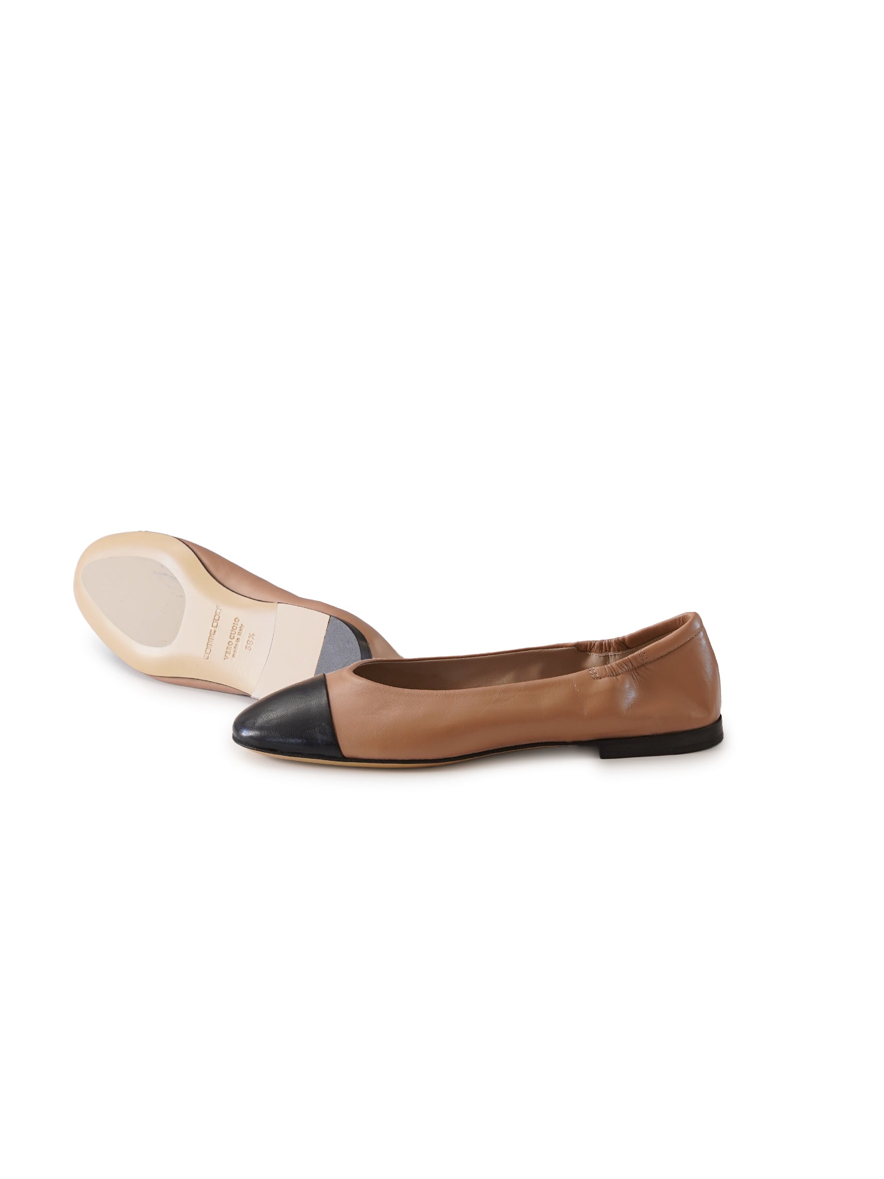 Neuer modebewusster camelfarbener Ballerina mit schwarzer Kappe! Kreieren Sie mit diesem eleganten Schuh einen zeitlosen und stilvollen Look. Das hochwertige super softe Material sorgt für ein unglaublich weiches Tragegefühl und Komfort den ganzen Tag lang. Perfekt für jeden Anlass und jede Frau, die Wert auf Qualität und Stil legt.