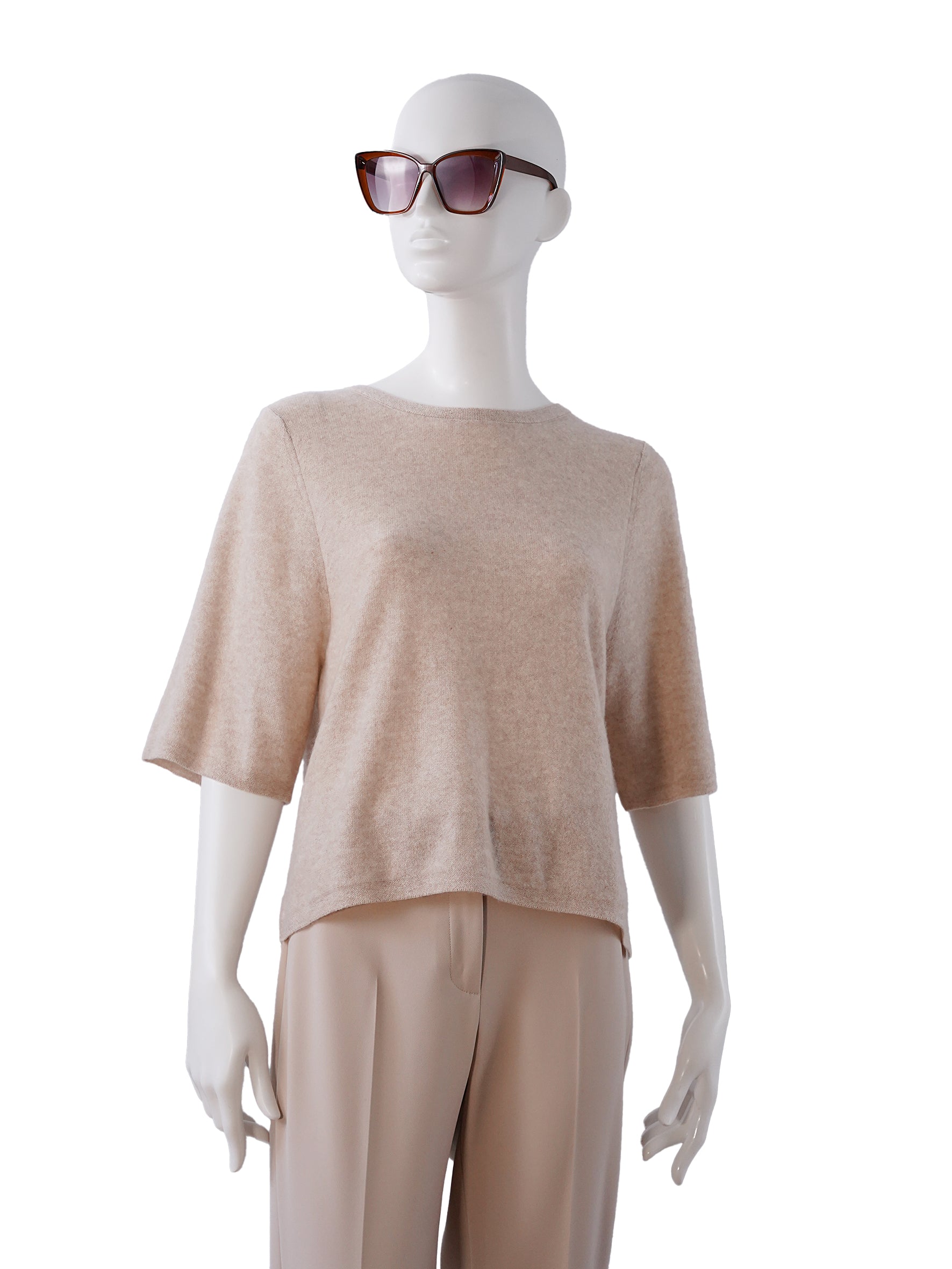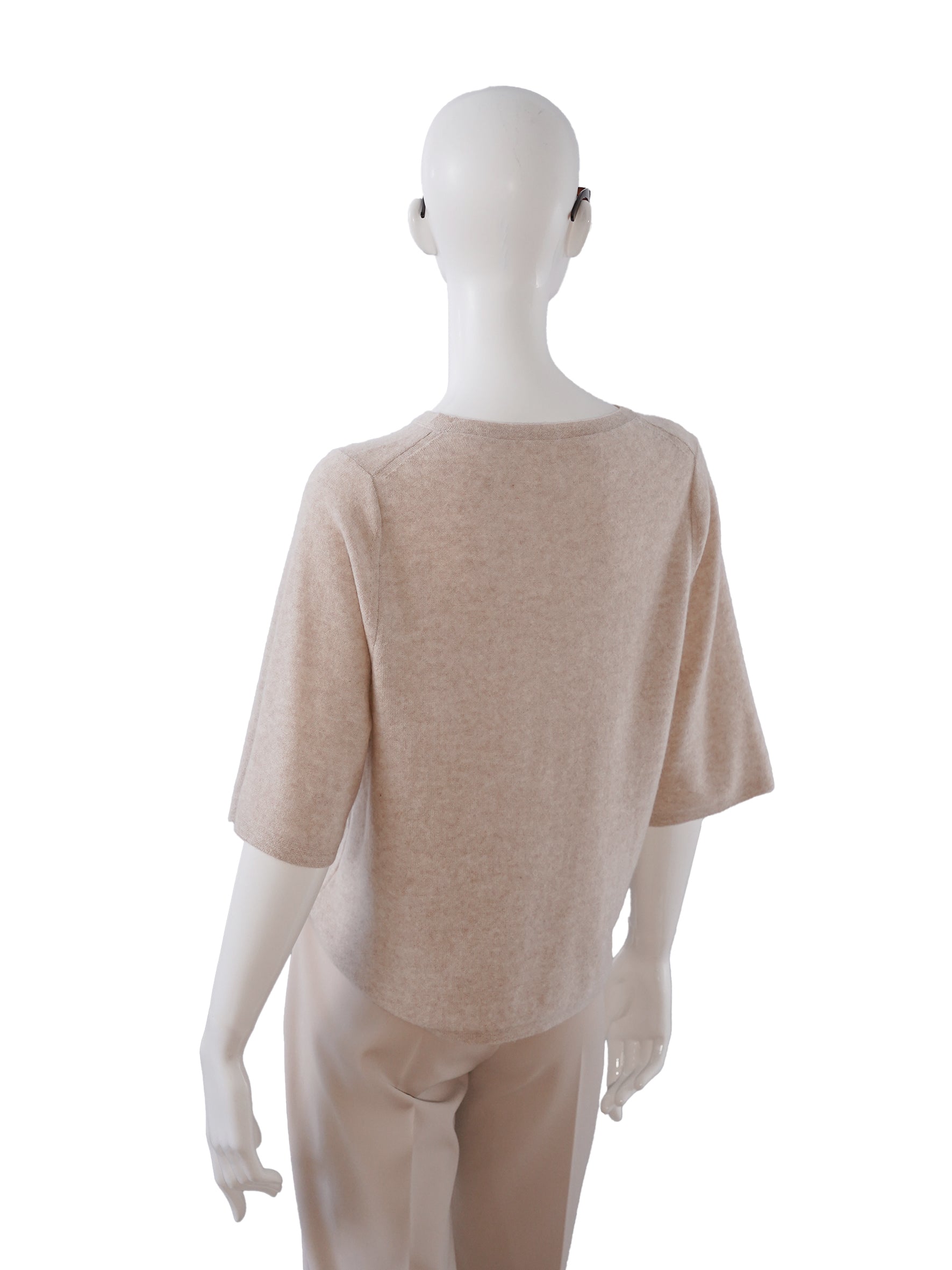 Sandfarbener Halbarm Cashmere-Pullover