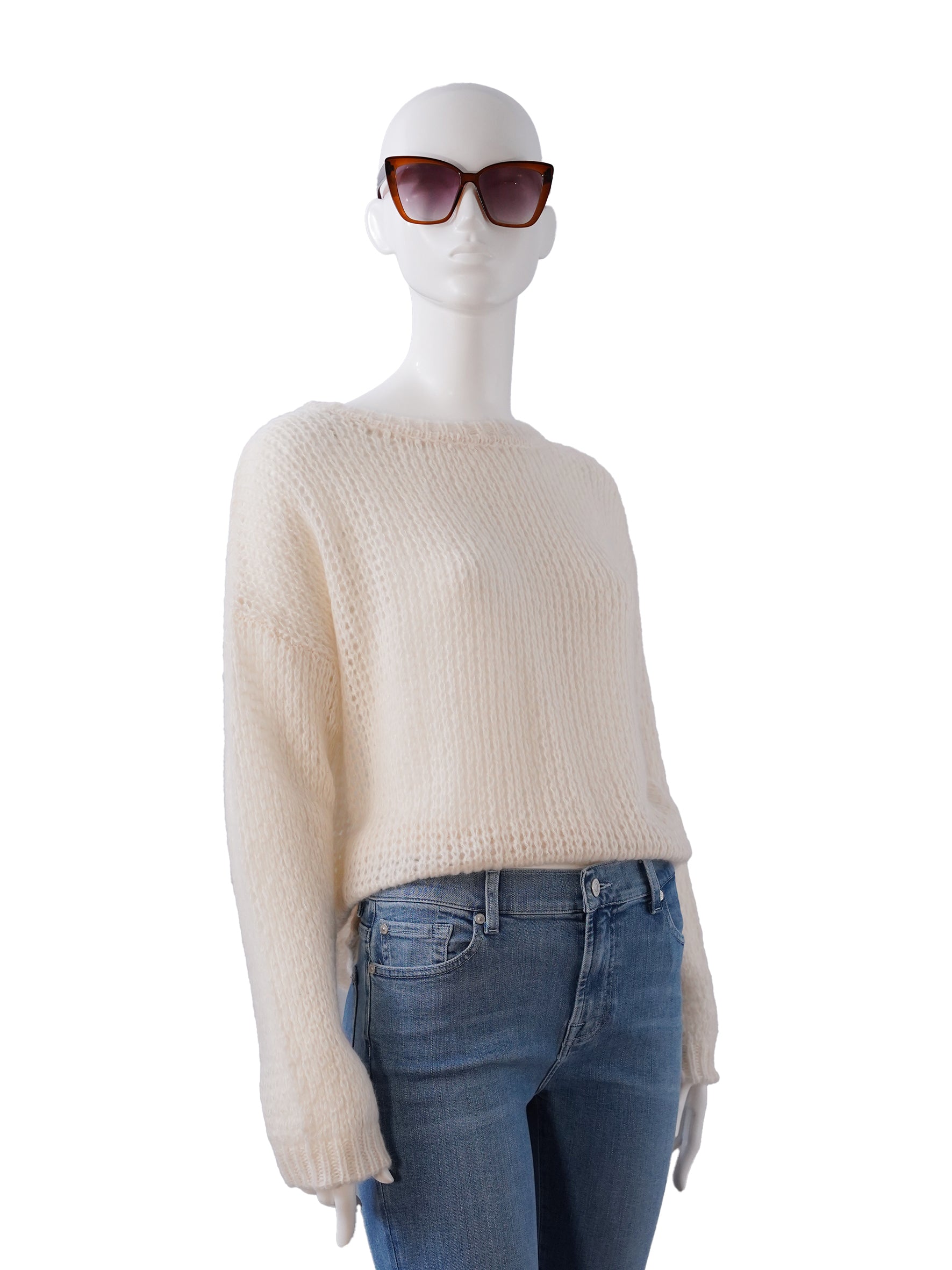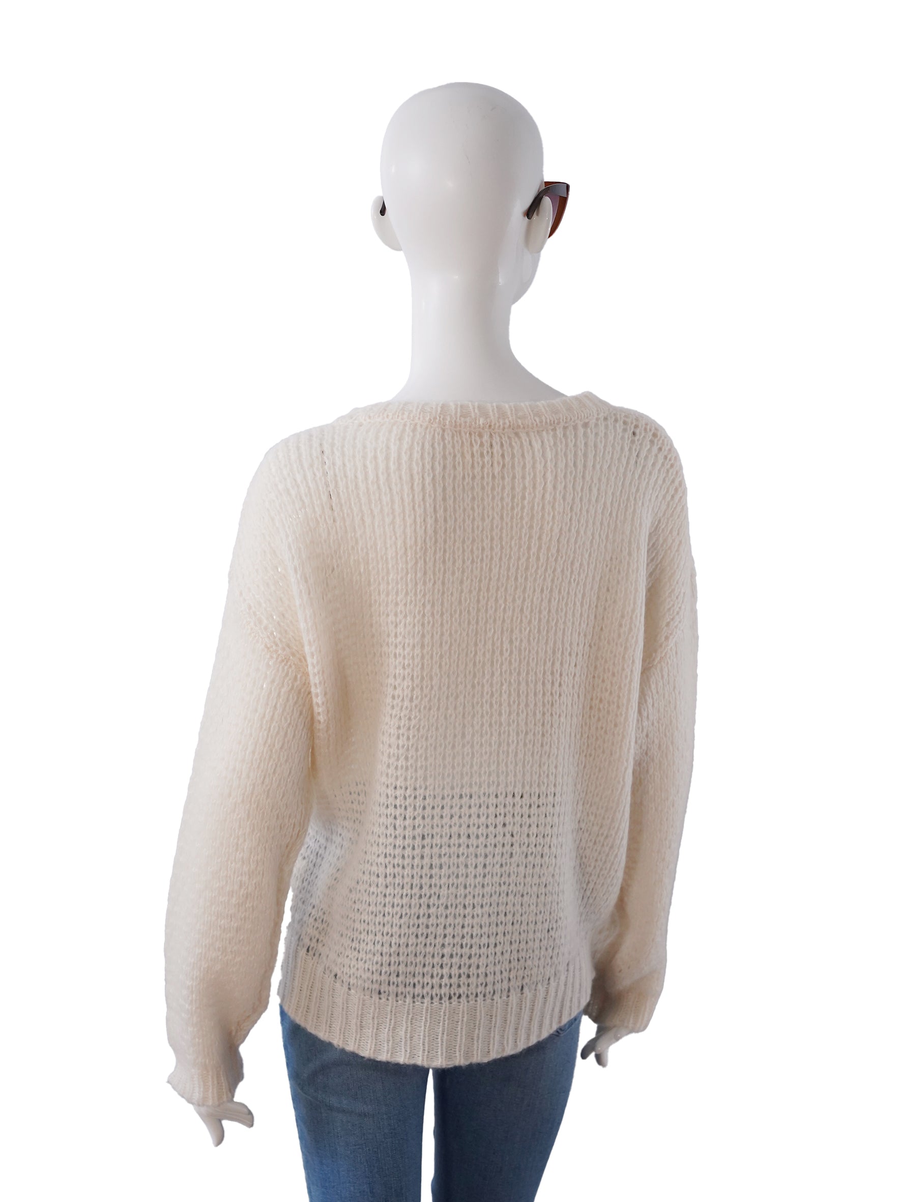 Cremefarbener, grob gestrickter Pullover aus Cashmere und Seide