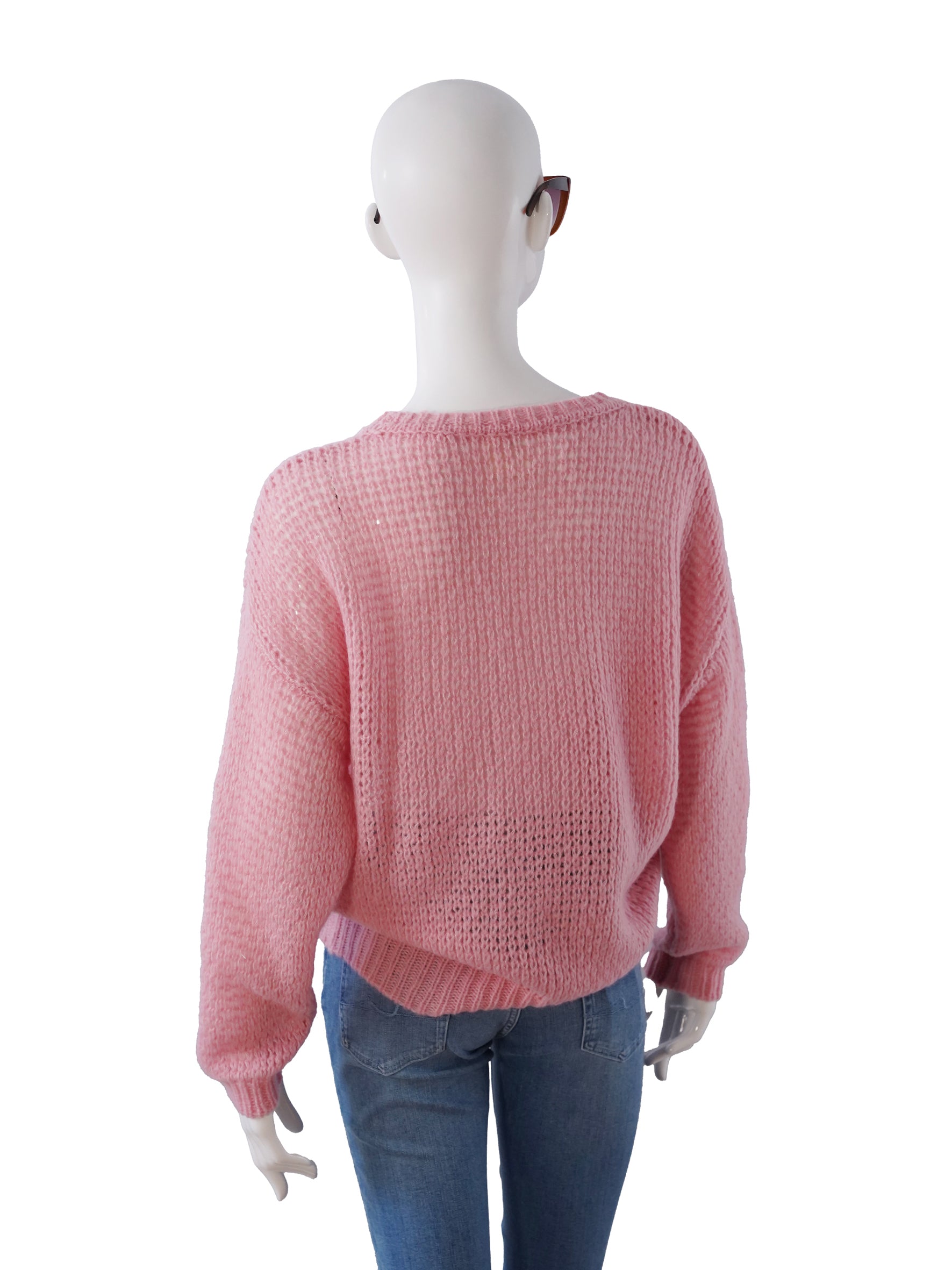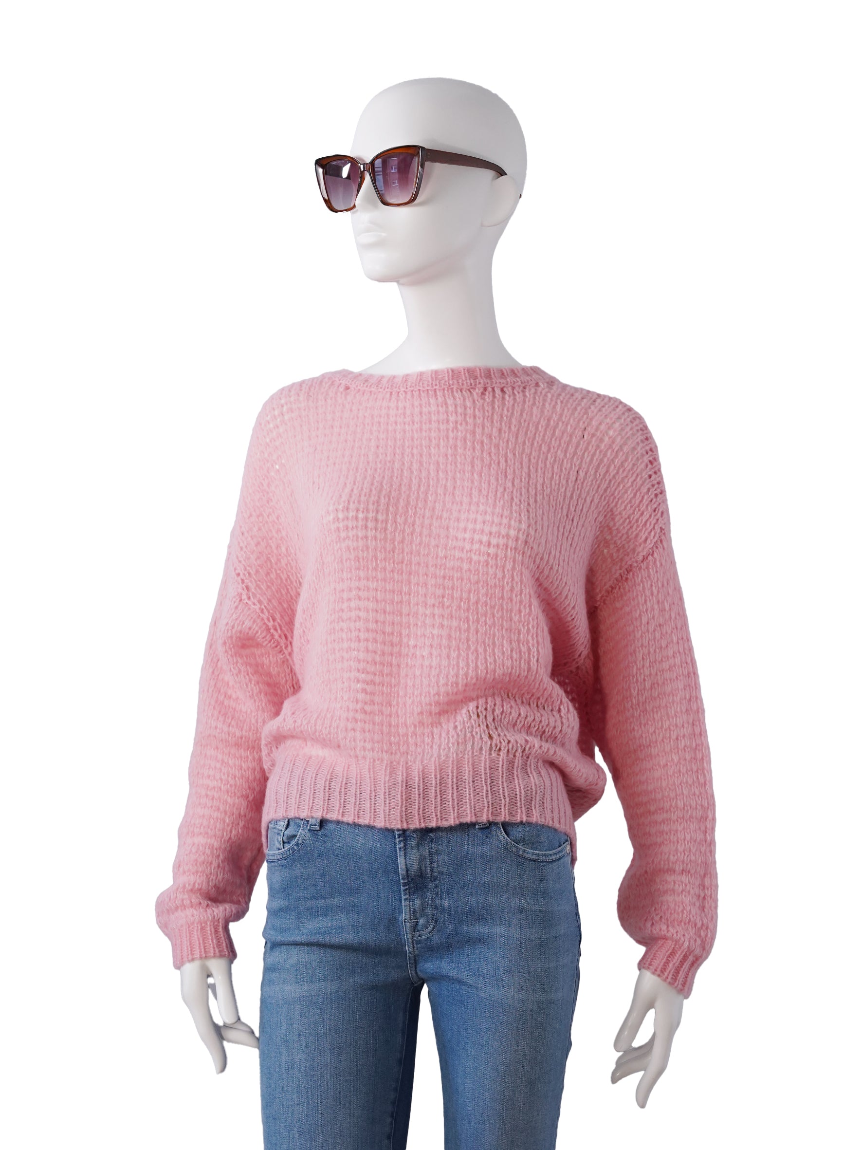 Rosafarbener, luftig gestrickter Pullover aus Cashmere und Seide