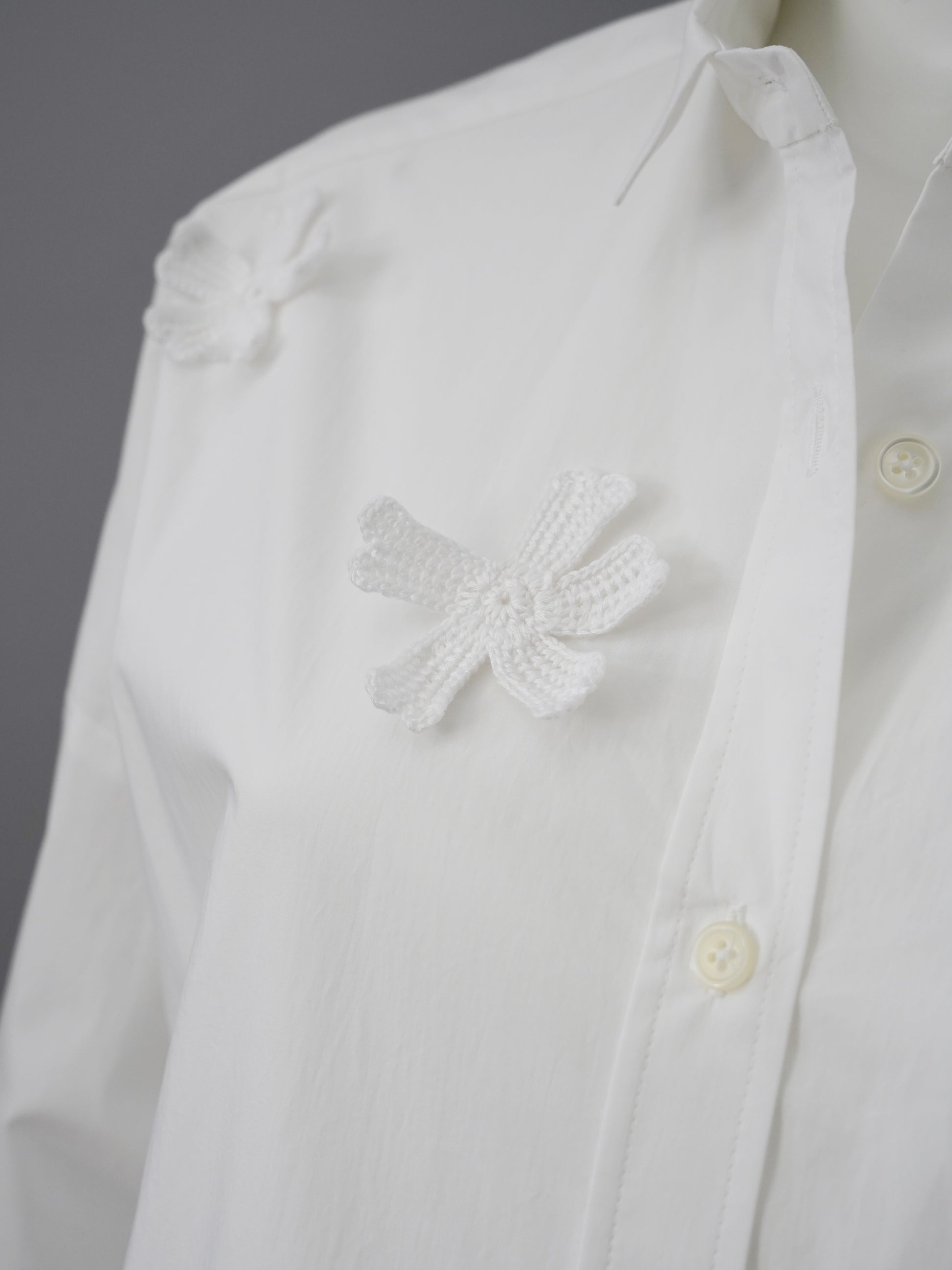 Weiße Oversize-Bluse mit Häkelblüten