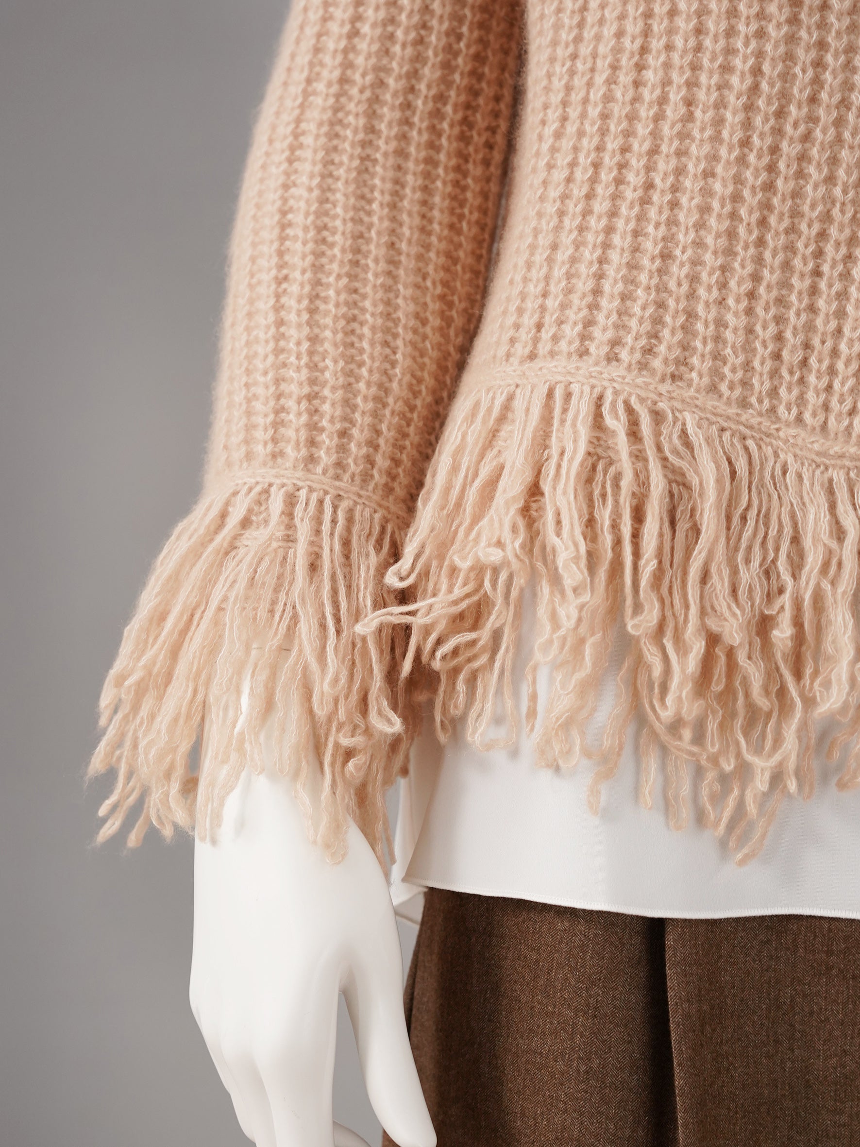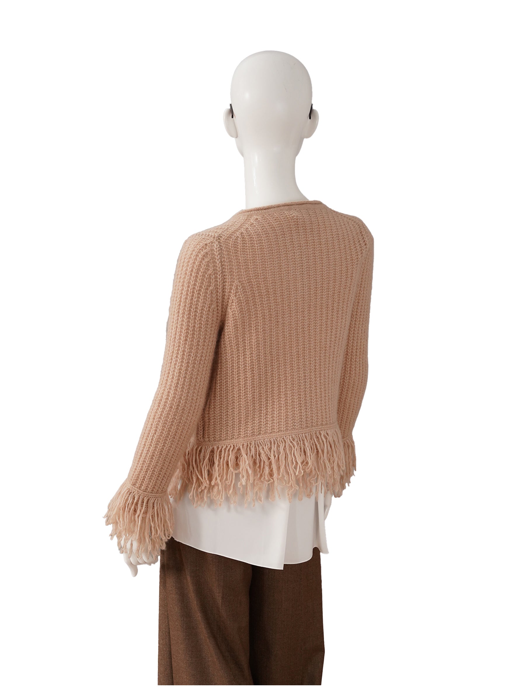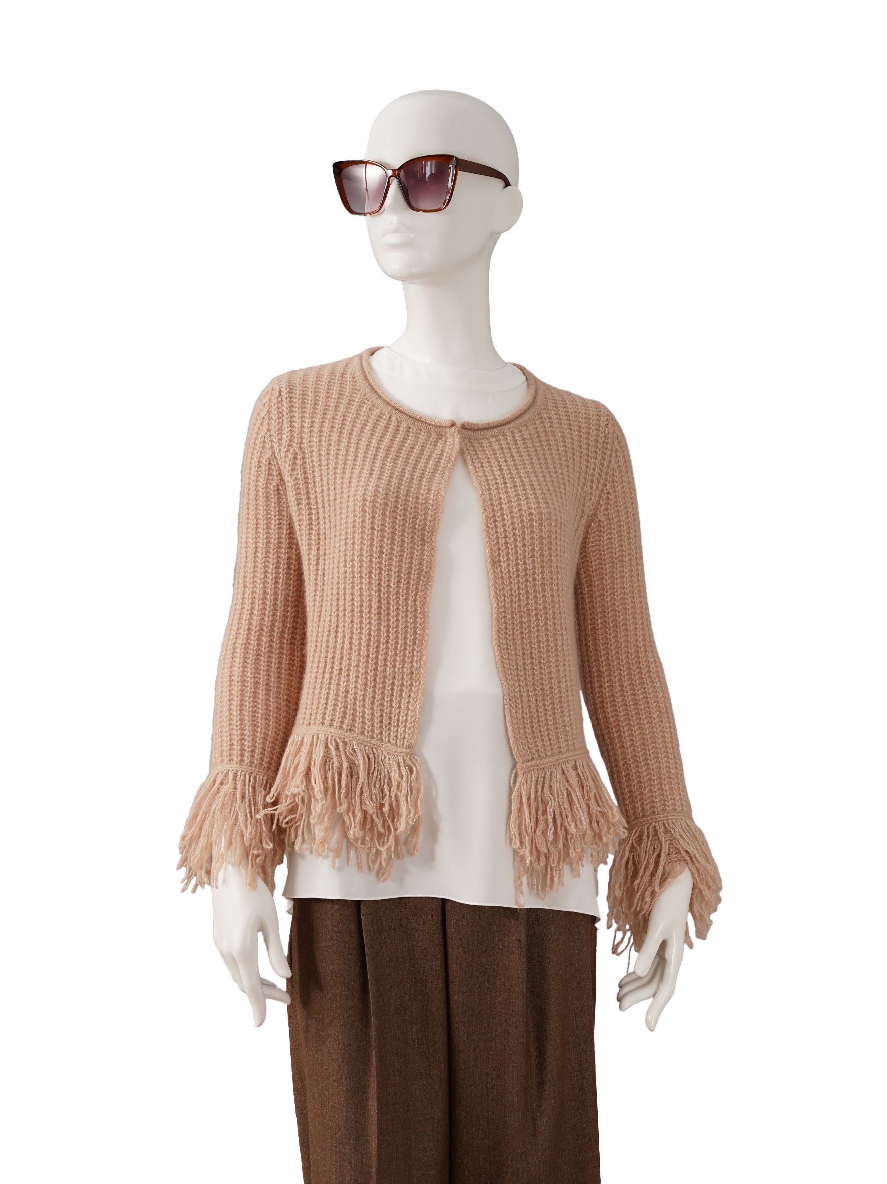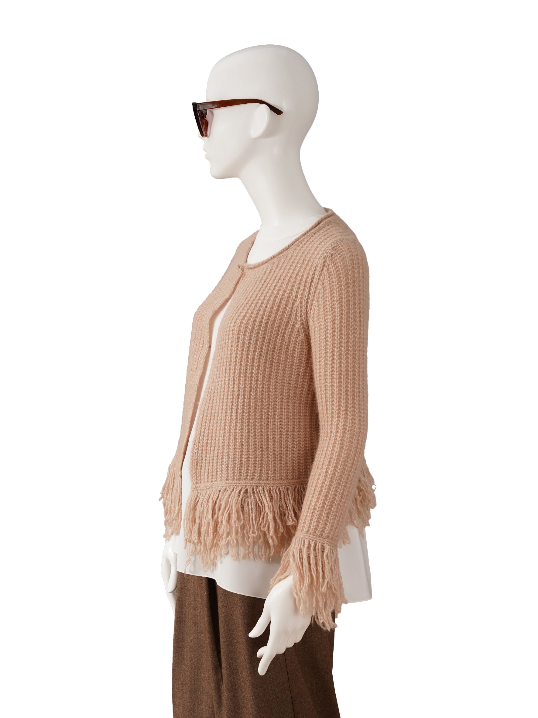Sandfarbene Strickjacke mit Fransen aus Cashmere und Cotton