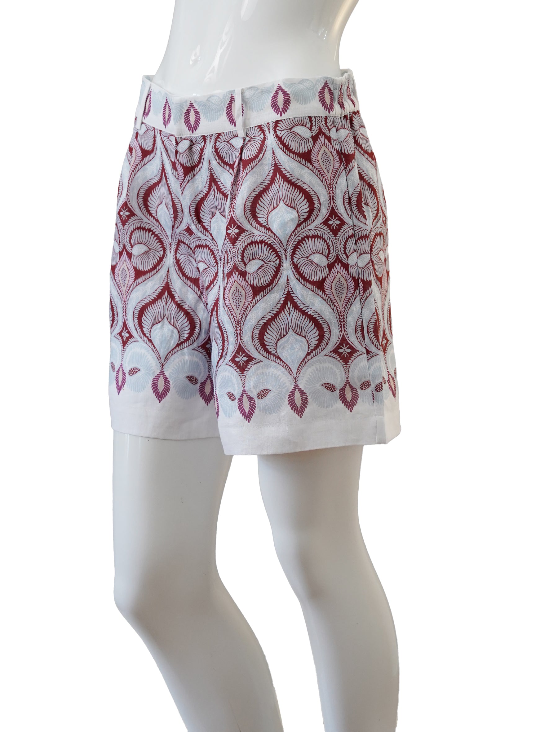 Entdecke unsere Weiße/Bordeauxfarbene Leinen-Shorts von Ivi – das perfekte Sommerpiece mit charaktervollem Marrakesch Muster. Die luftige Leinenmischung sorgt für angenehmen Tragekomfort an warmen Tagen, während die klassische Farbkombination unendliche Styling-Möglichkeiten bietet. Kombiniere sie spielerisch mit einer passenden Bluse für einen mühelosen, eleganten Look, der von Café bis Strandpromenade passt. Zeitlos, vielseitig und einfach unverzichtbar.