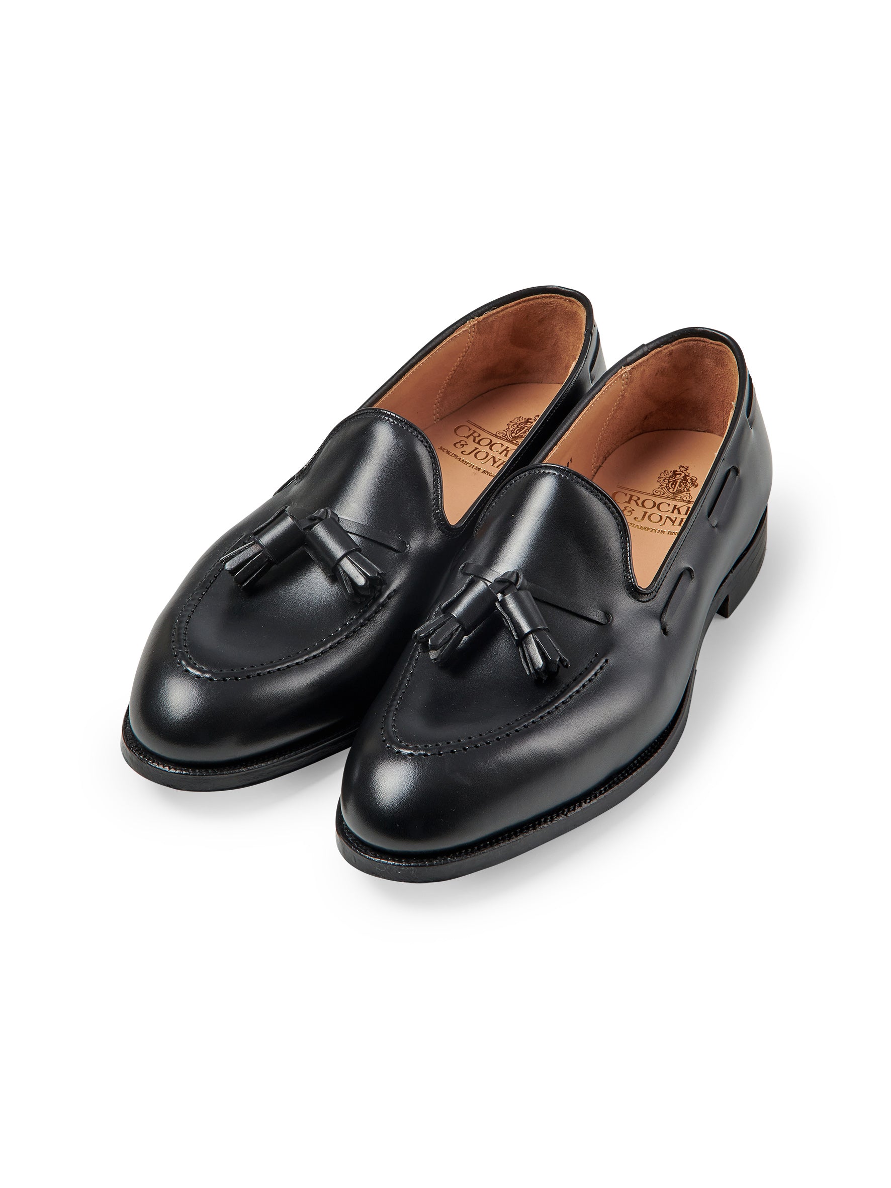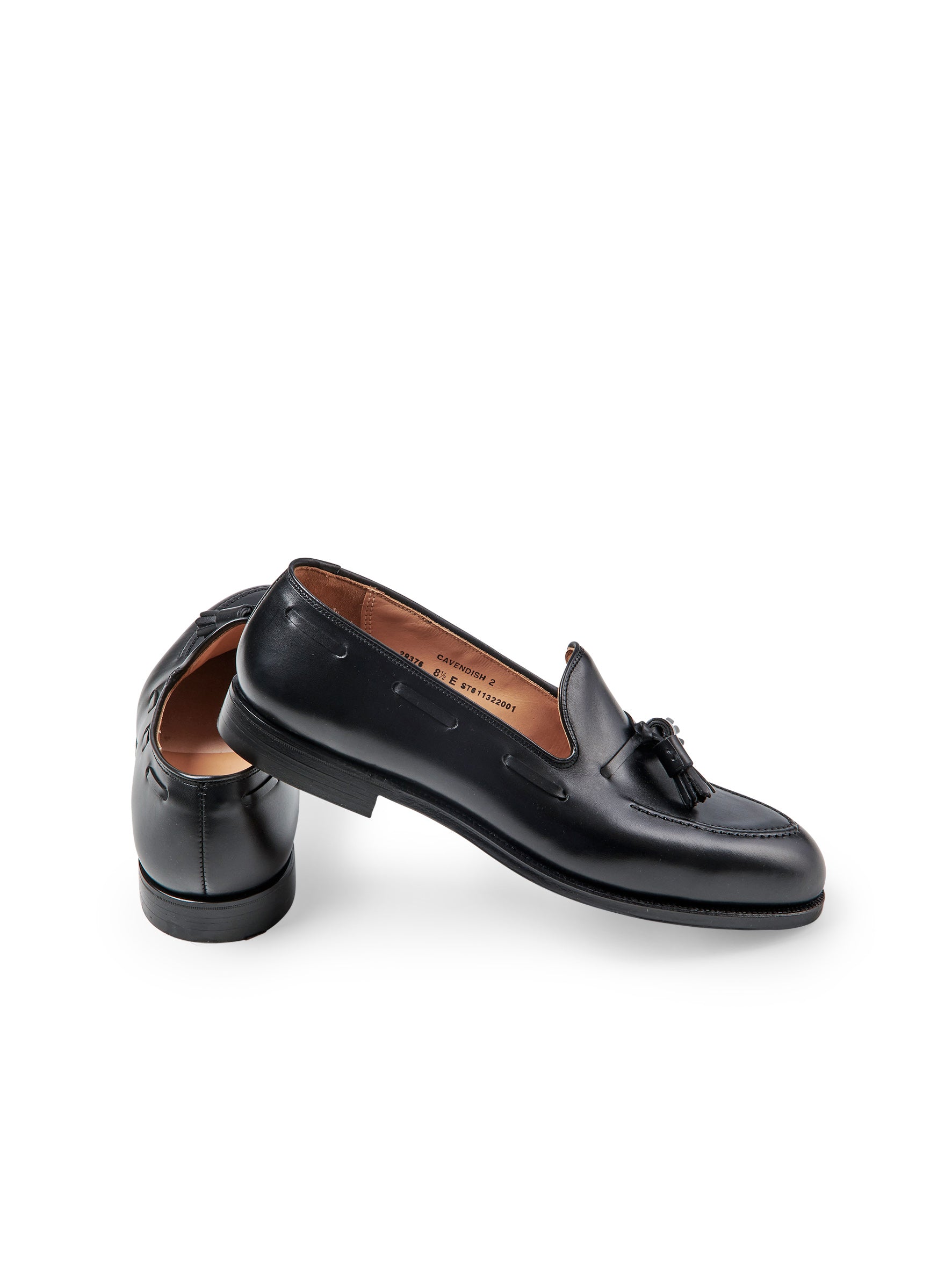 Cavendish, ein Klassiker, der sich fest als einer der besten Tasselloafer etabliert hat, welche heute erhältlich sind. Ein vielseitiger Loafer-Look, hergestellt aus dem feinsten schwarzen Kalbsleder mit einfacher Ledersohle.