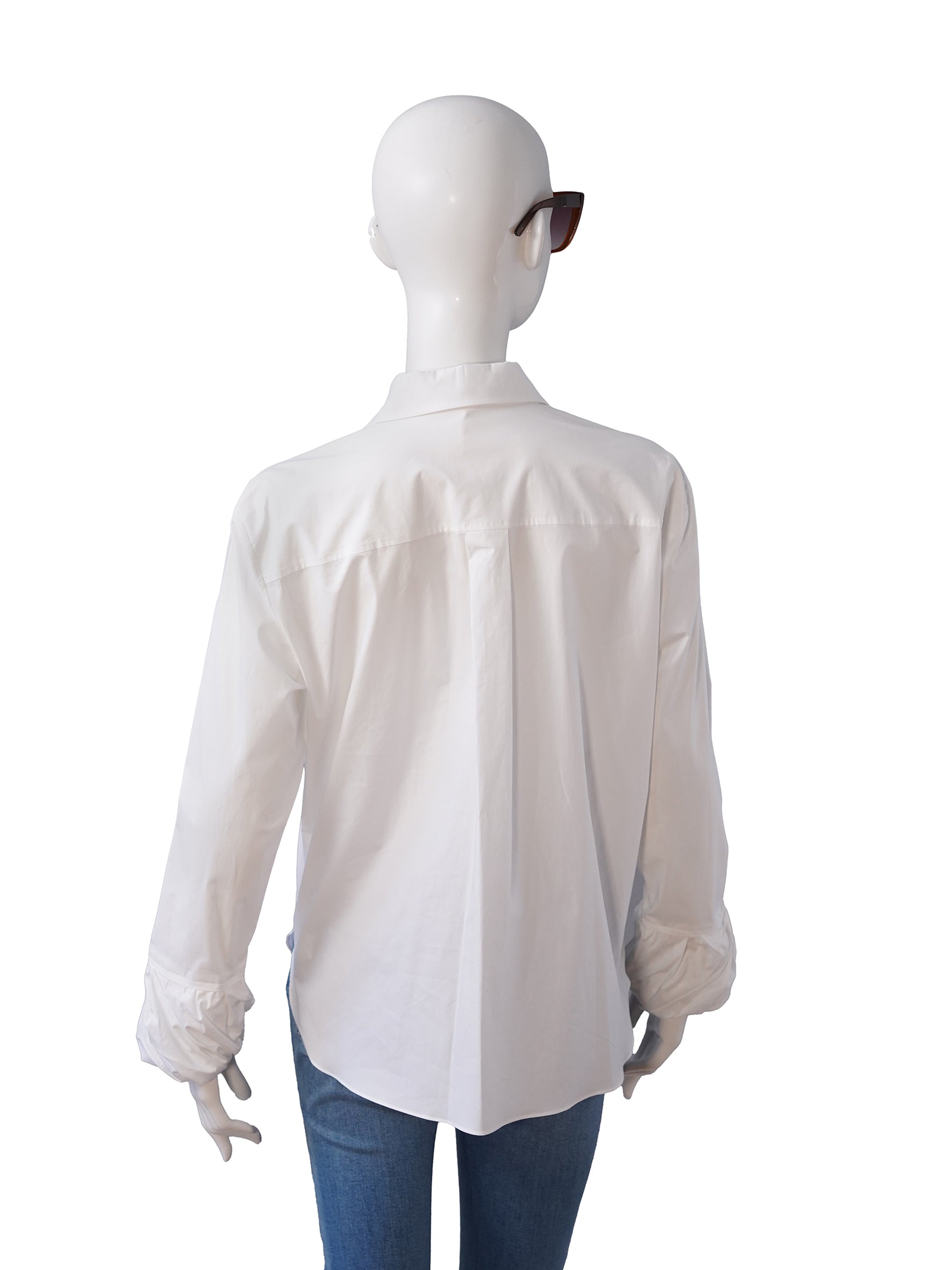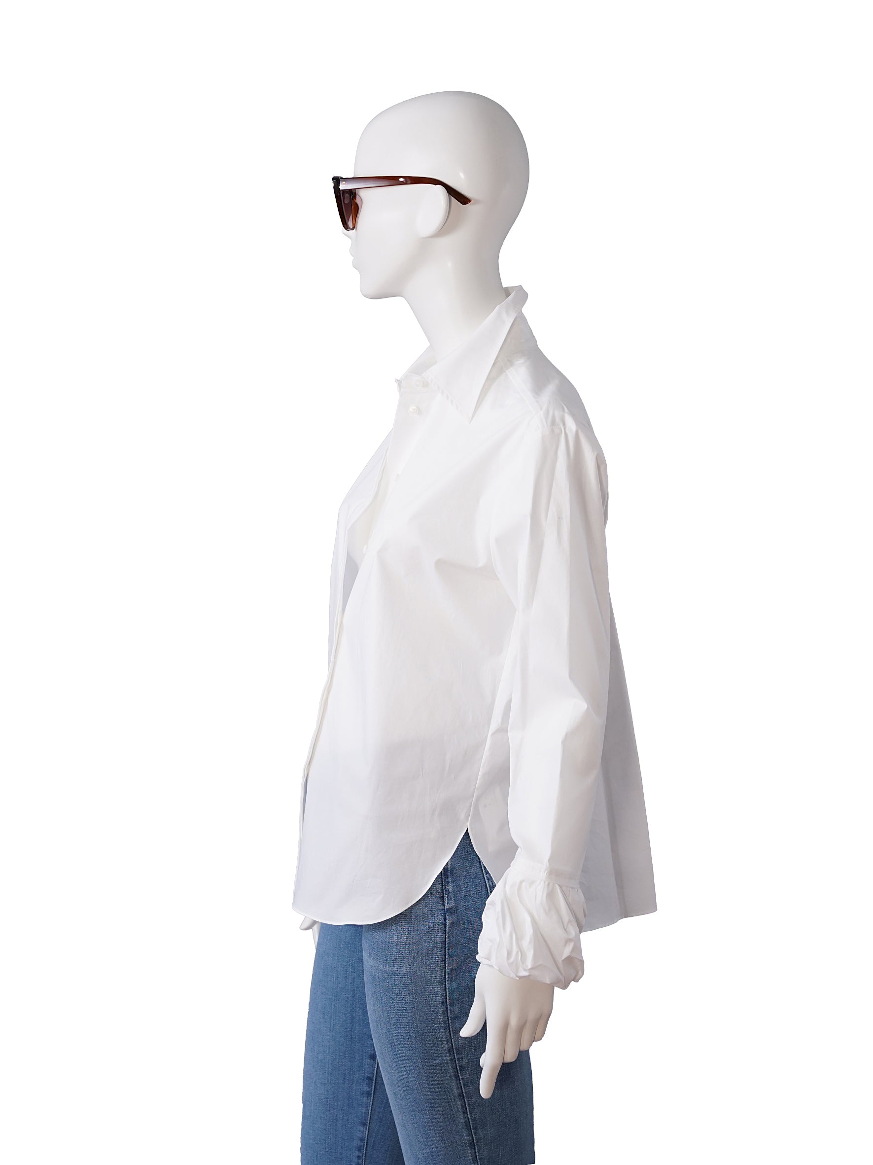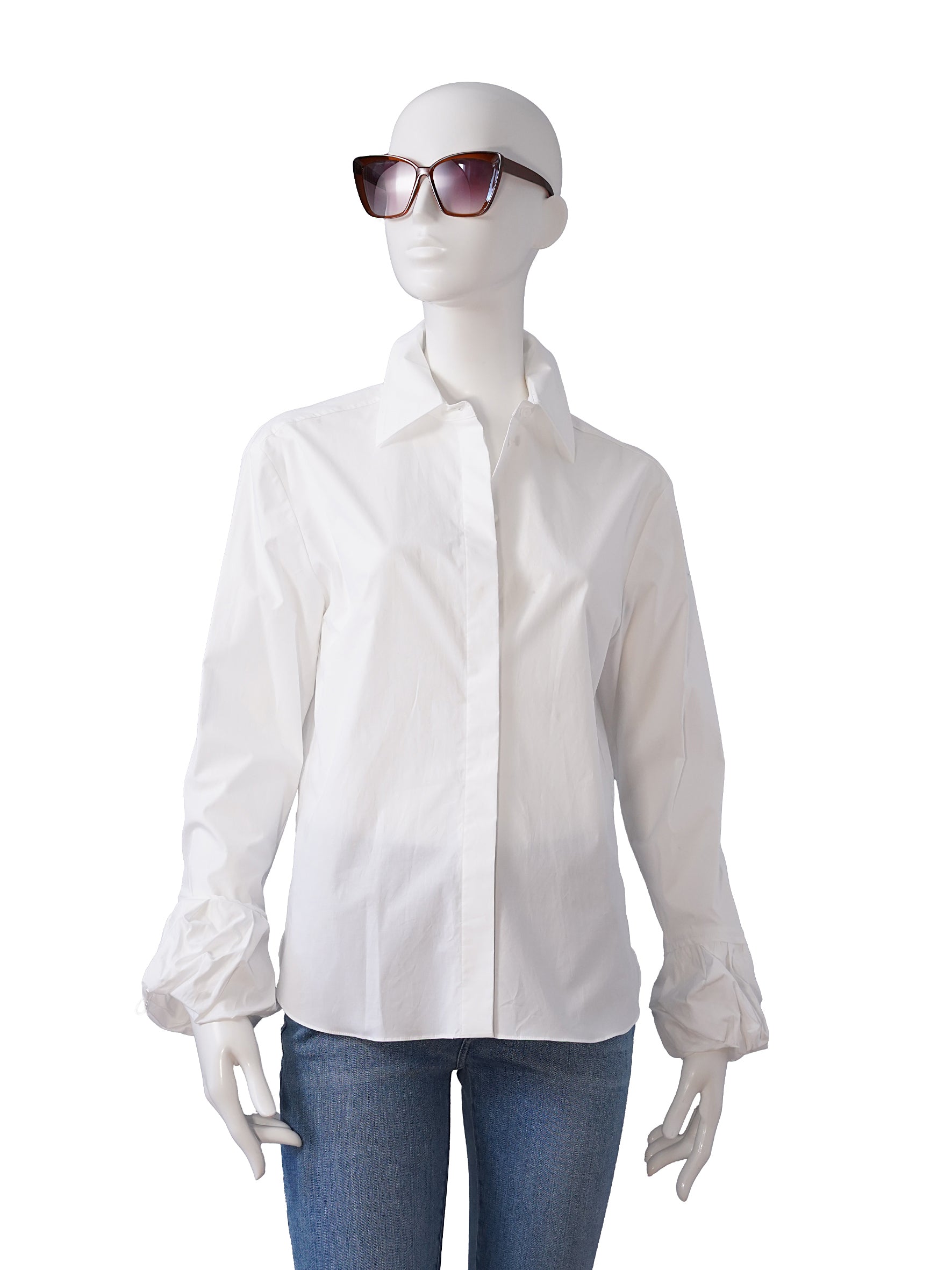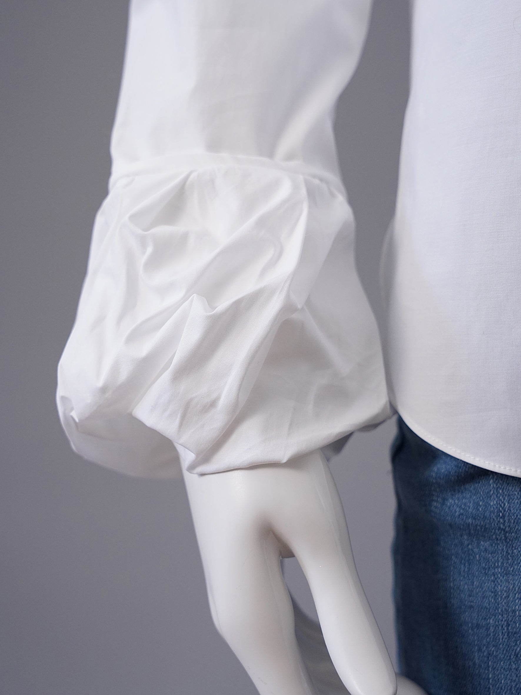 Weiße Bluse mit twisted Ballon-Manschetten