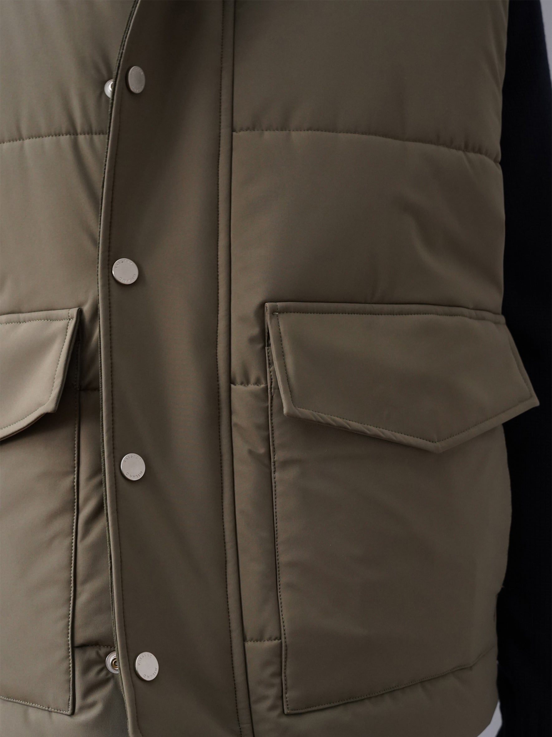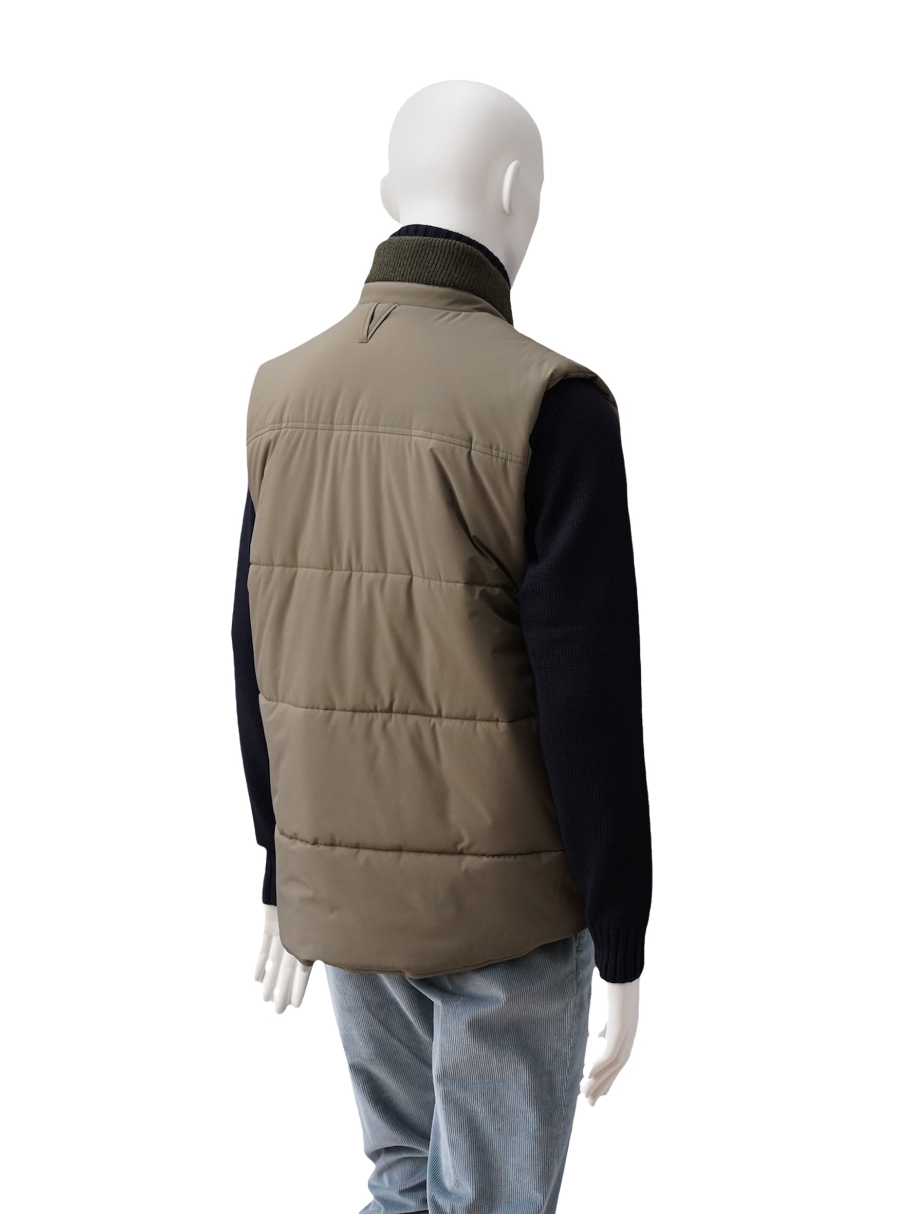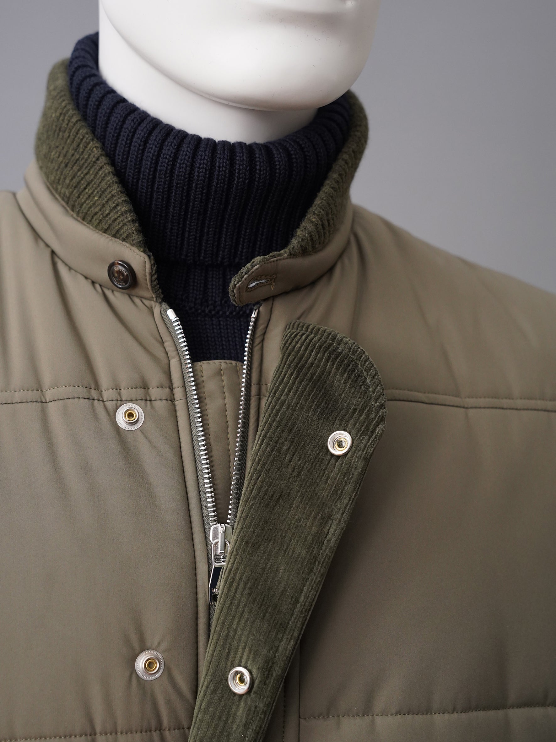 Hochwertige Daunenweste in klassischem Khaki von Valstar. Das leichte Steppdesign bietet optimale Wärmeisolation ohne unnötige Schwere, ideal für Übergangsjahreszeiten und als vielseitige Layering-Komponente. Die charakteristische Cord-Innenleiste verleiht dem Modell zeitlose Eleganz und zusätzliche Haltbarkeit. Perfekt kombinierbar mit verschiedenen Outfits – vom Casual bis zum gehobenen Look. Ein Investment-Piece für anspruchsvolle Garderobe.