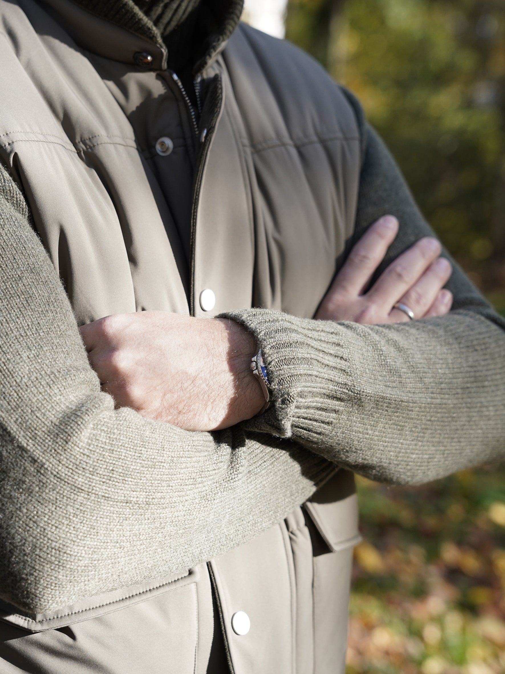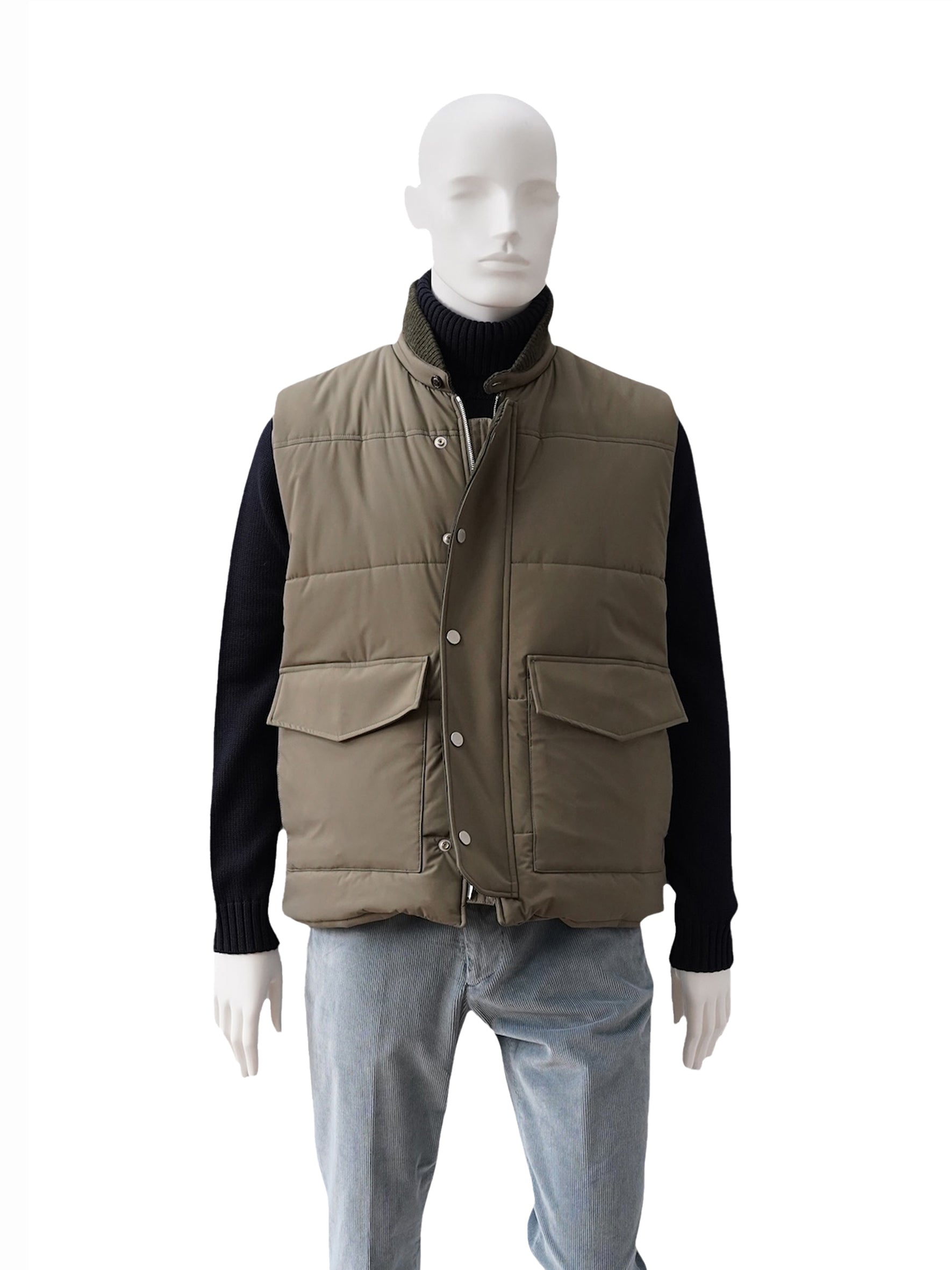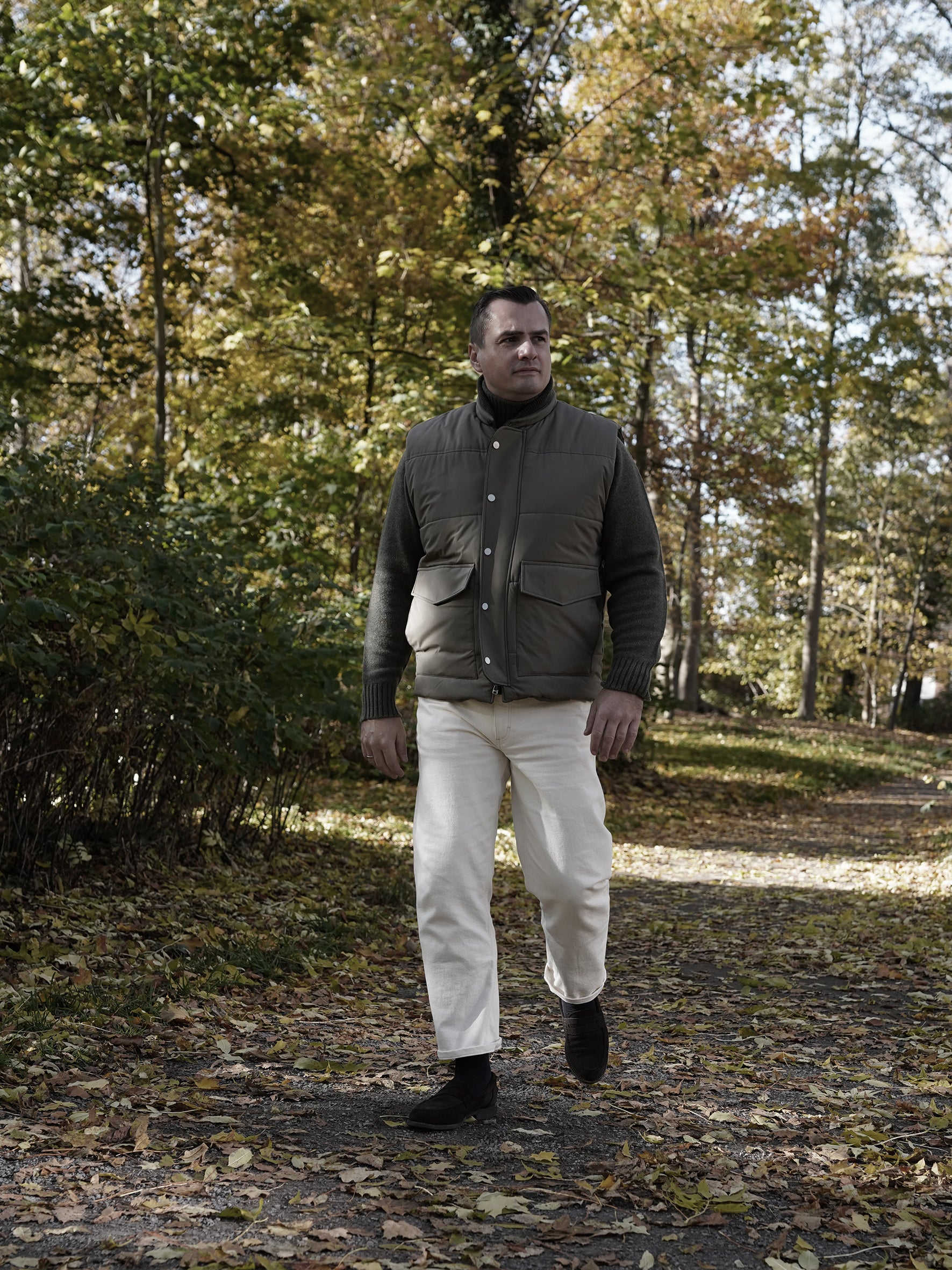 Hochwertige Daunenweste in klassischem Khaki von Valstar. Das leichte Steppdesign bietet optimale Wärmeisolation ohne unnötige Schwere, ideal für Übergangsjahreszeiten und als vielseitige Layering-Komponente. Die charakteristische Cord-Innenleiste verleiht dem Modell zeitlose Eleganz und zusätzliche Haltbarkeit. Perfekt kombinierbar mit verschiedenen Outfits – vom Casual bis zum gehobenen Look. Ein Investment-Piece für anspruchsvolle Garderobe.