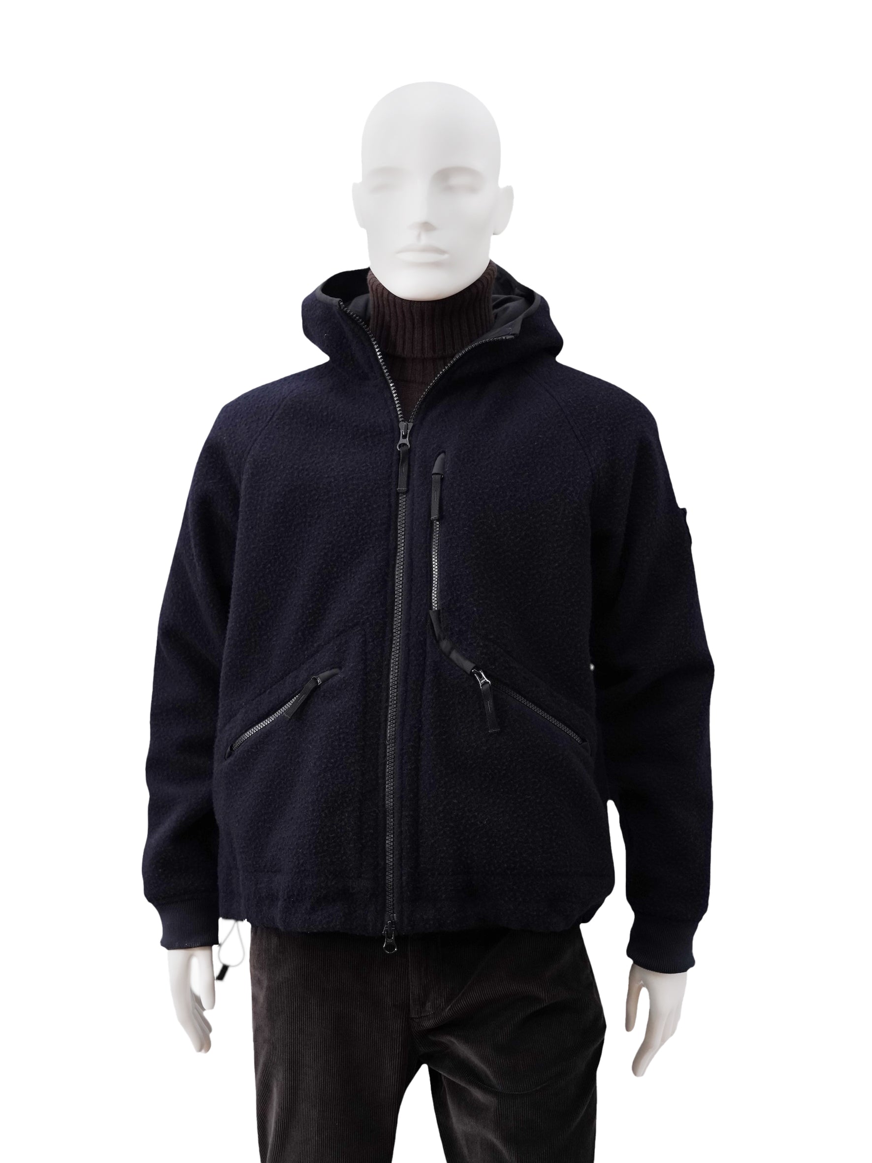 Dunkelblaue Jacke mit Kapuze