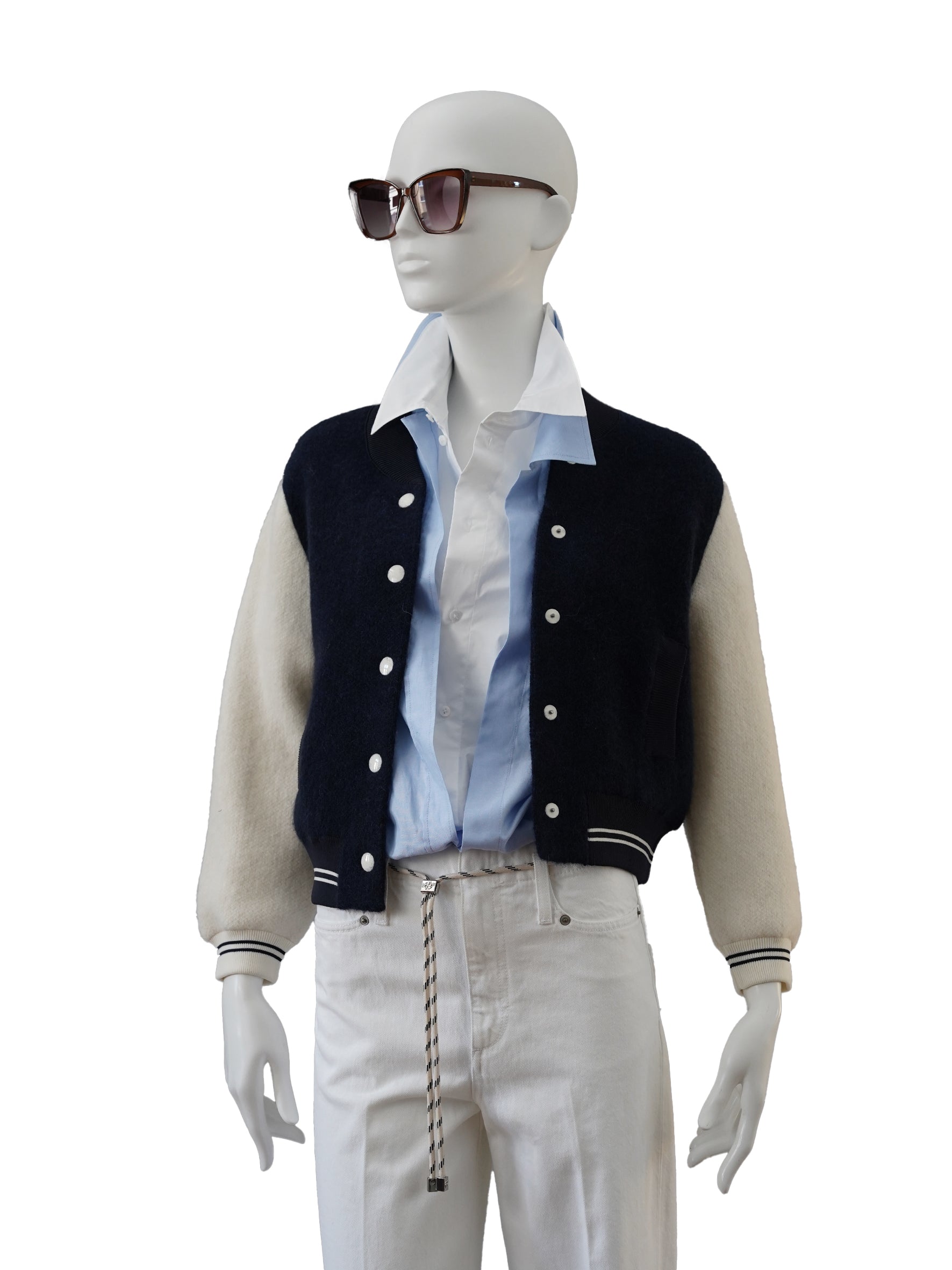 Der perfekte Begleiter für sportlich-elegante Momente: Dieser dunkelblau Collegebomber von Dorothee Schumacher verbindet klassische Varsity-Vibes mit modernem Design. Inspiriert von der Tennis-Ästhetik der aktuellen Sommerkollektion "Athletics" besticht das Piece durch seinen zeitlosen Appeal. Die lockere Silhouette macht ihn zum idealen Layering-Partner – ob über einem Slip Dress oder zu Sneakern und Jeans. Ein Statement-Stück, das Sportgeist mit Sophistication vereint und deinen Look mühelos aufwertet.