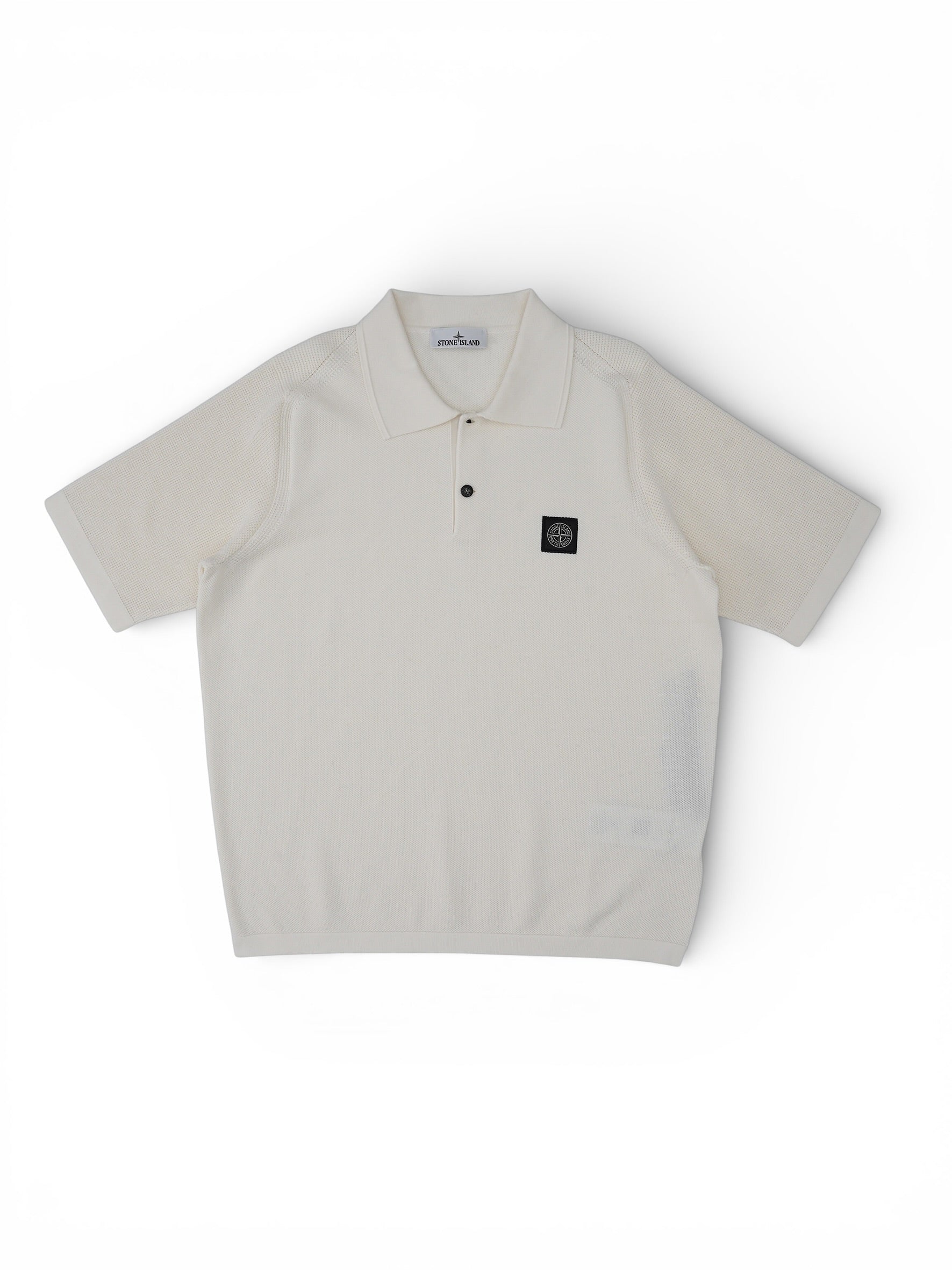 Cremefarbenes Strick-Poloshirt