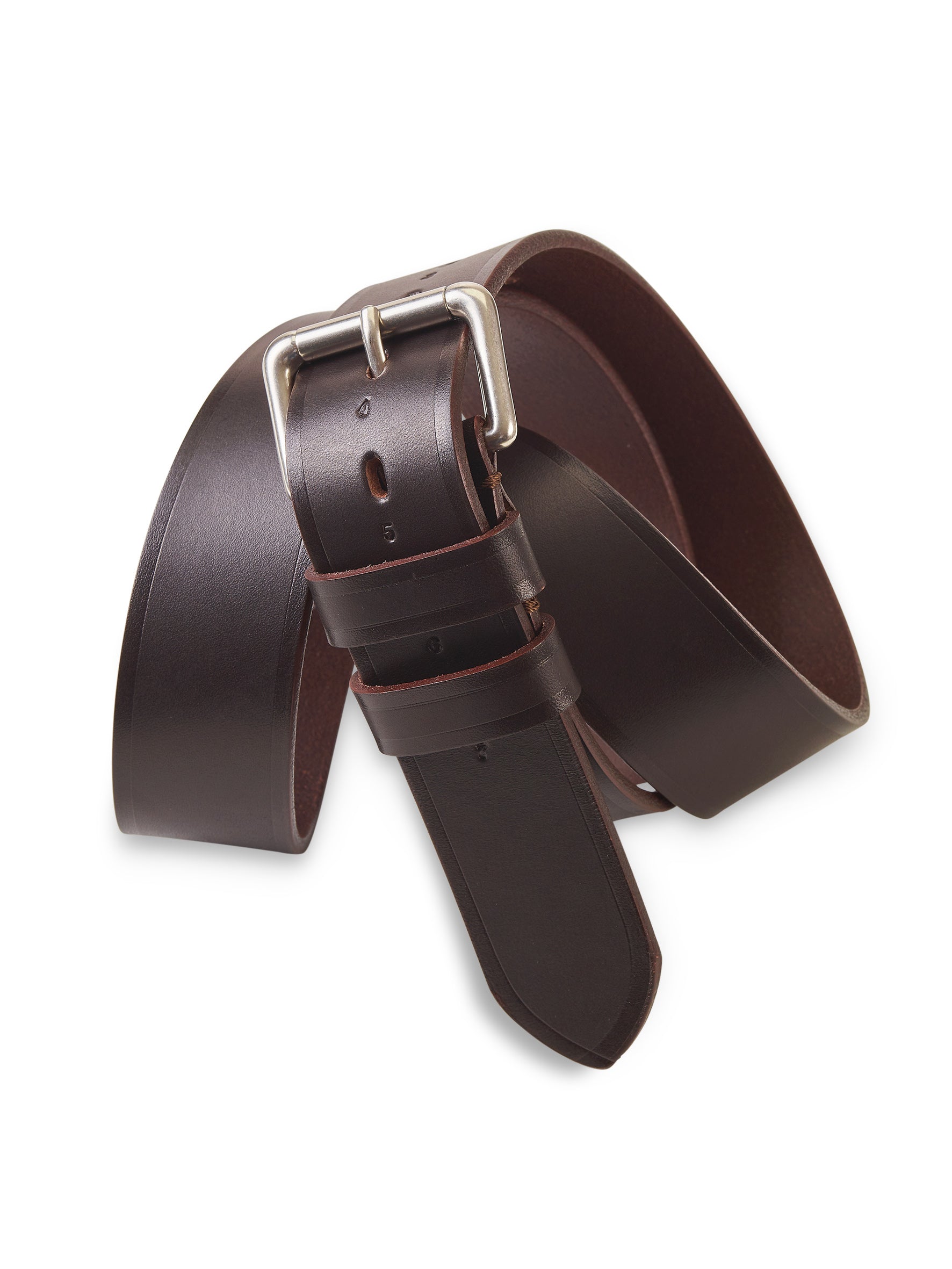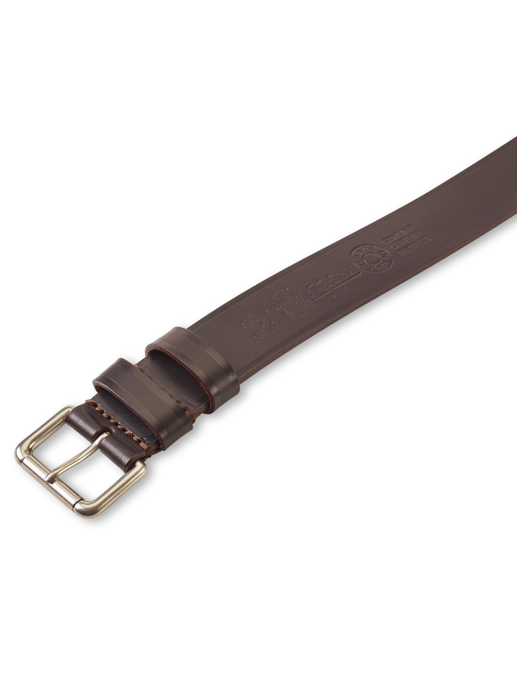 Klassischer, dunkelblauer Riemengürtel, inspiriert durch Kofferriemen, gefertigt aus einem Stück Leder. Der langlebige Begleiter für alle sportiveren Looks. Ein echtes Lieblingsstück.