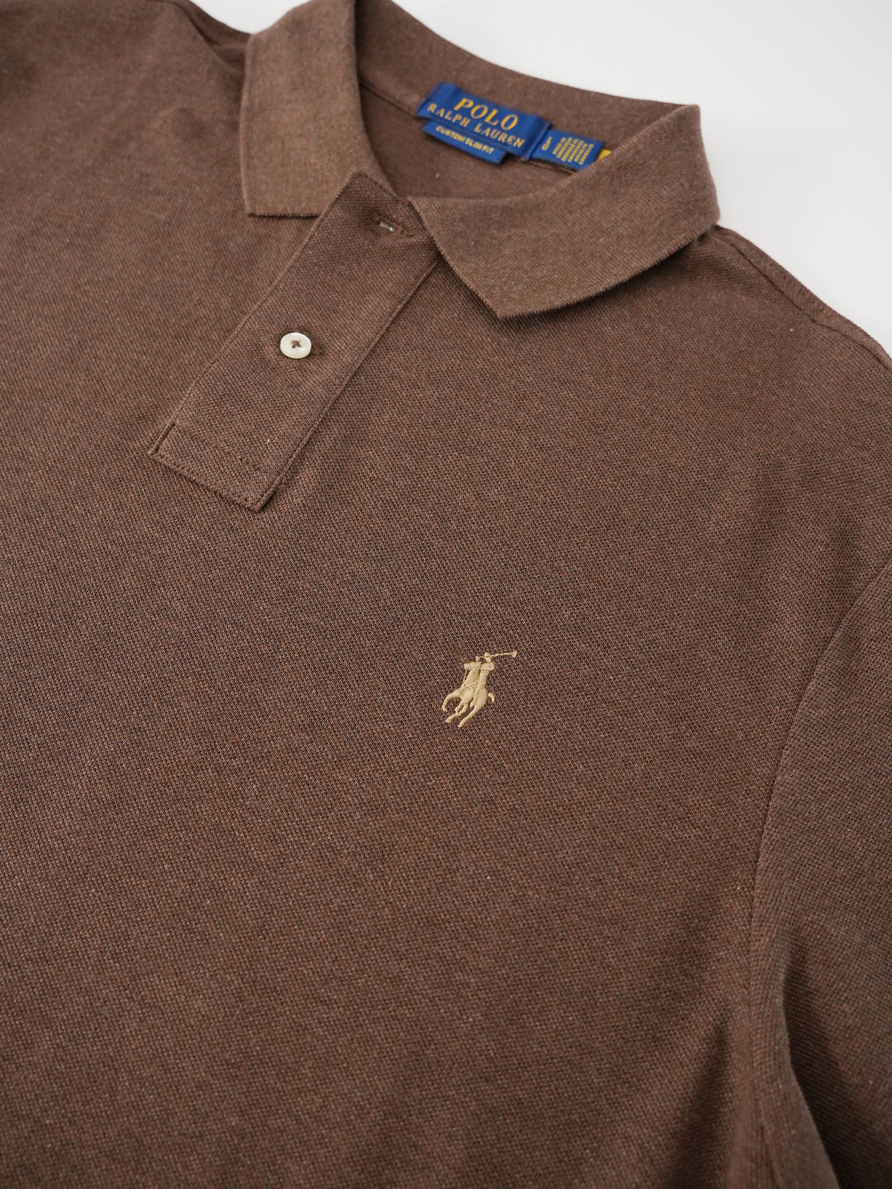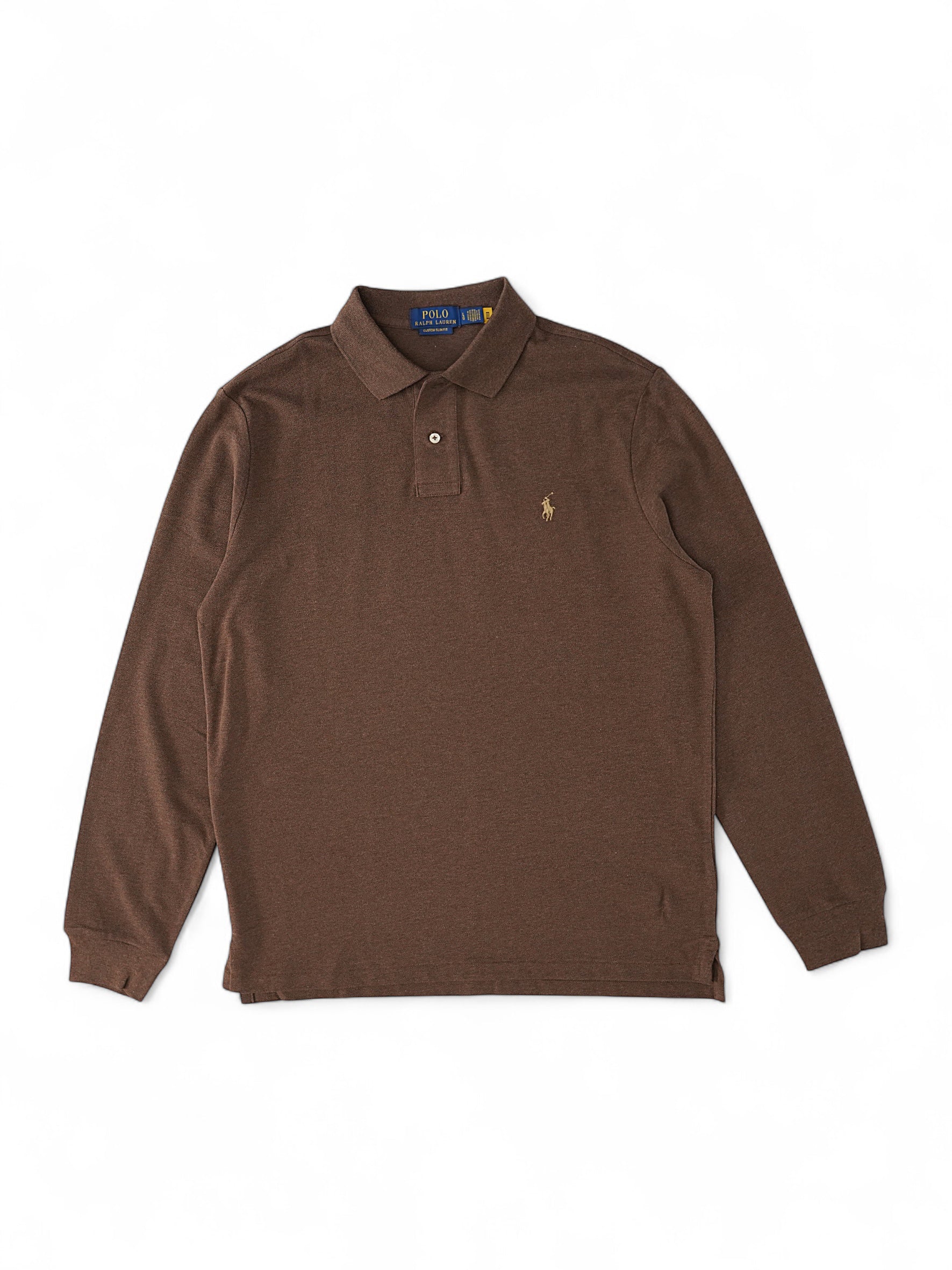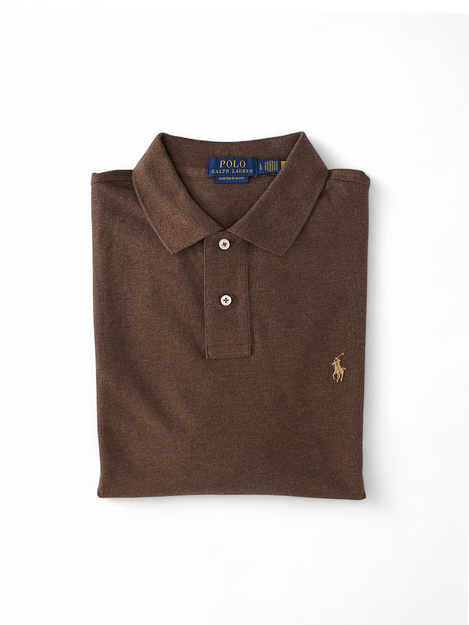 Braunes Langarm-Poloshirt "Custom Slim Fit"