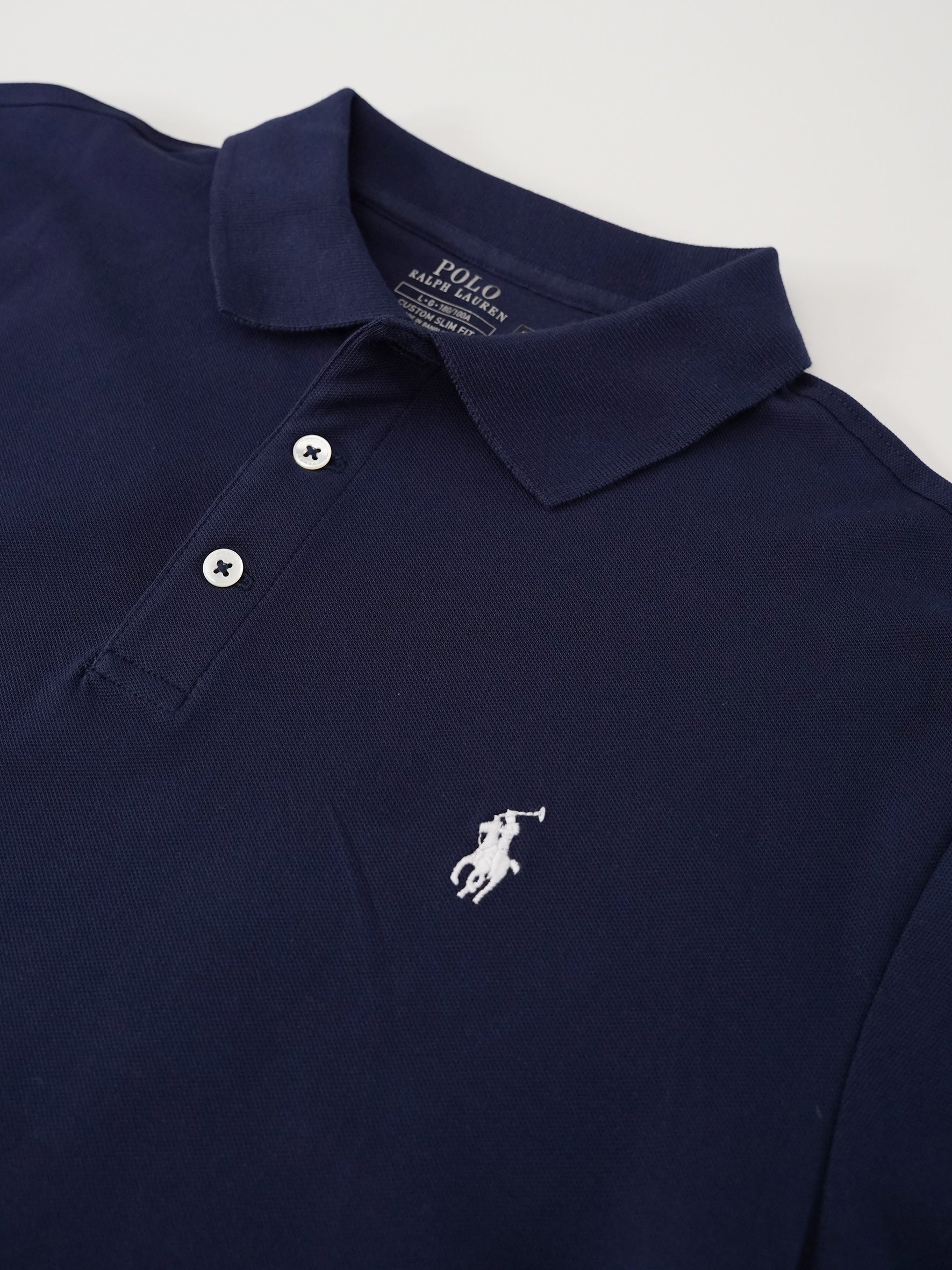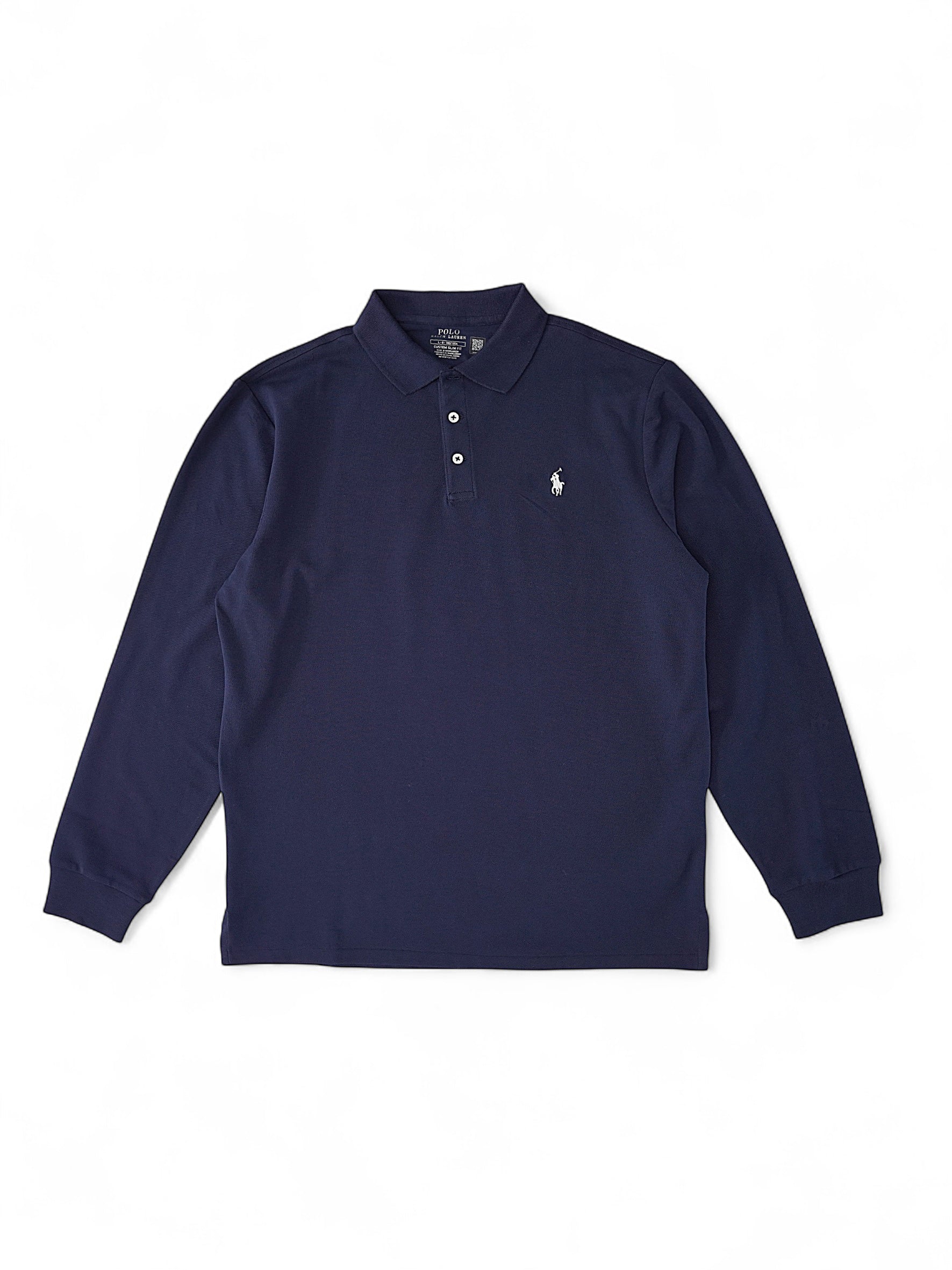 Dunkelblaues Stretch-Langarmpolo "Custom Slim Fit"