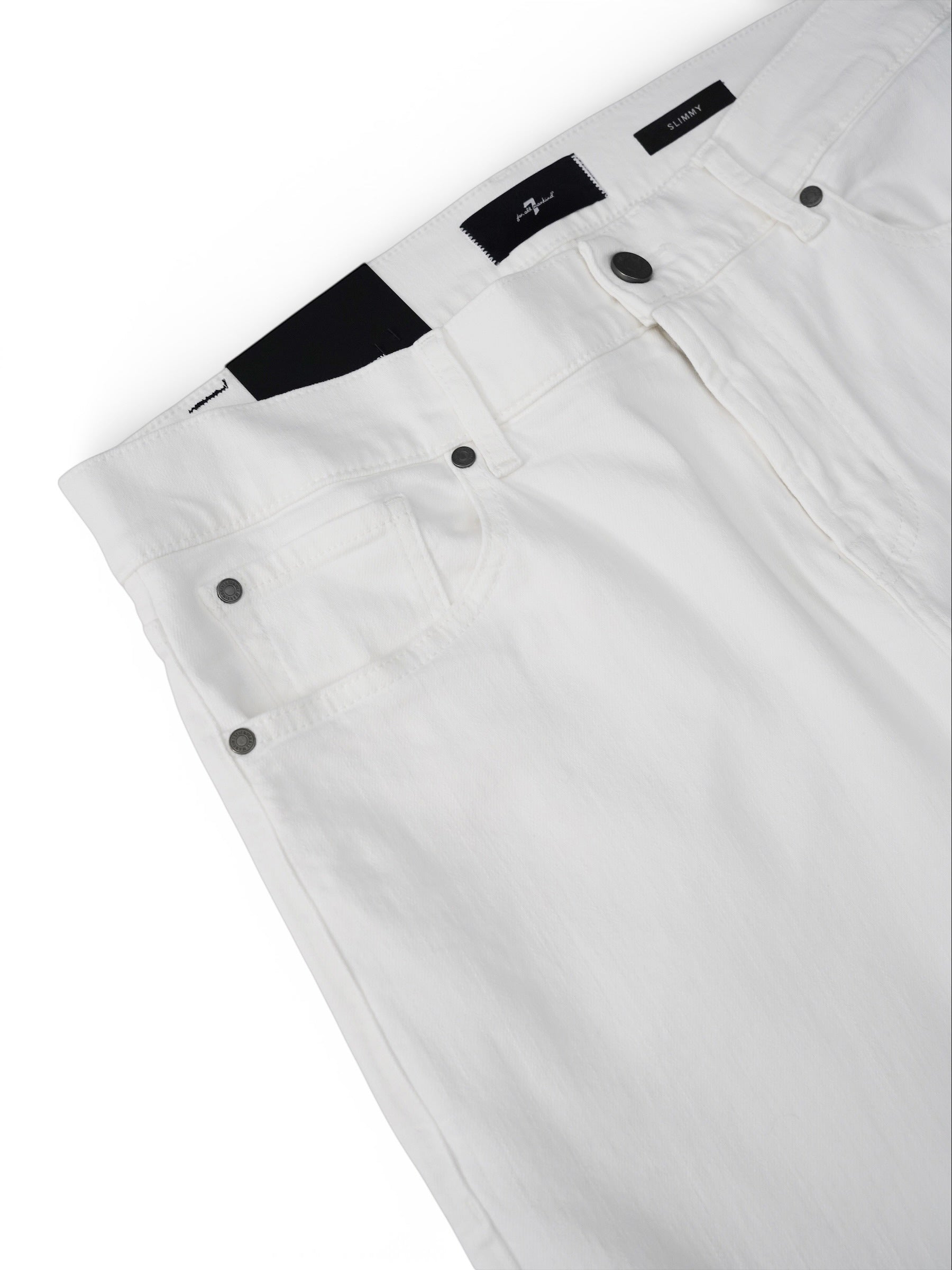 Deine neue Sommer-Essenz! Die weiße Slimmy von 7 for All Mankind ist der Universaltalent für jeden Mann. Ob zum Hemd, zur Jacke oder ganz lässig – diese Jeans macht einfach jeden Look besser. Der schlanke Schnitt sitzt perfekt, ohne einzuengen, und die helle Farbe bringt Frische in deine Garderobe. Zeitlos, praktisch und verdammt stylisch: Eine Jeans, die in keinem Kleiderschrank fehlen darf!