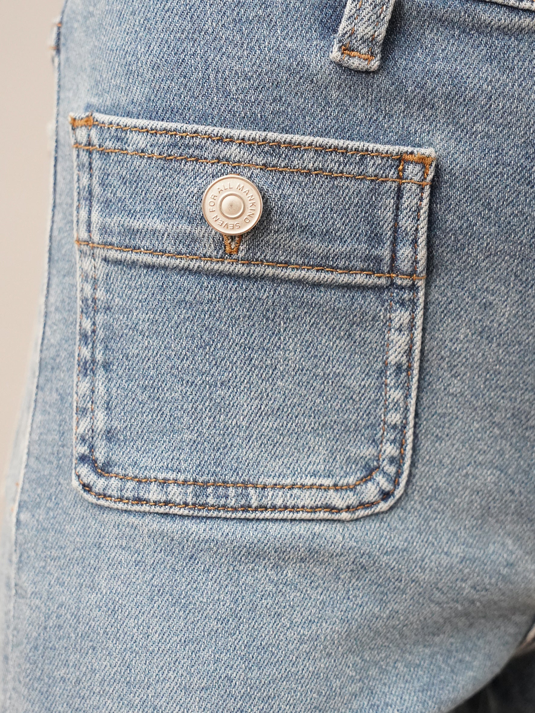 Sommer, Sonne, Seventies-Vibes! Diese hellblaue Bootcut-Jeans von 7 for all mankind ist dein neuer Begleiter für warme Tage. Mit ihrer leichten Stoffqualität sitzt sie angenehm locker und der klassische Schnitt mit Fronttaschen verbindet Nostalgie mit modernem Komfort. Ob zu Sandalen, Sneakern oder Plateauschuhen – diese Jeans bringt spielerisch Retro-Charme in deinen Kleiderschrank und lässt dich mühelos cool aussehen.