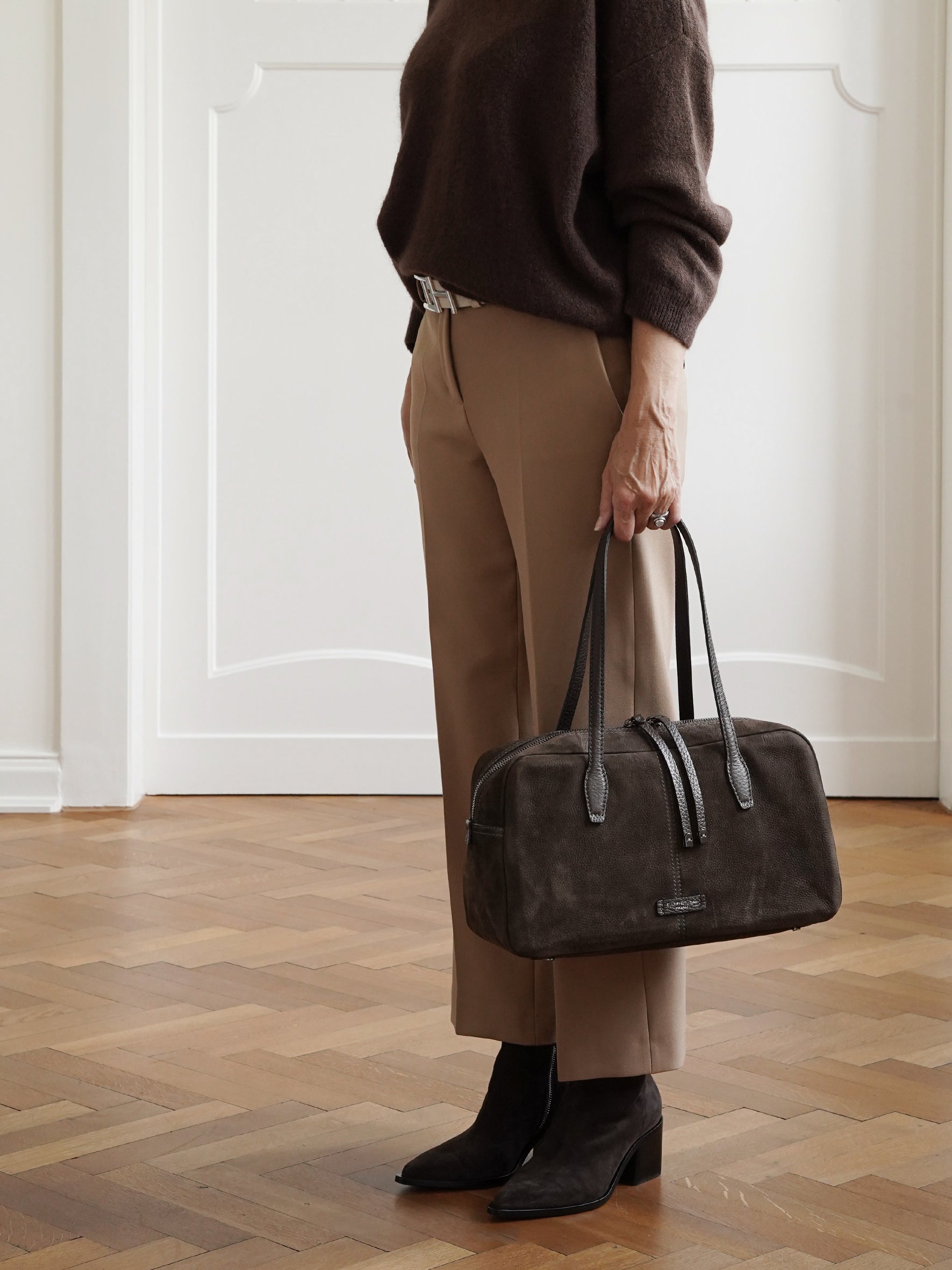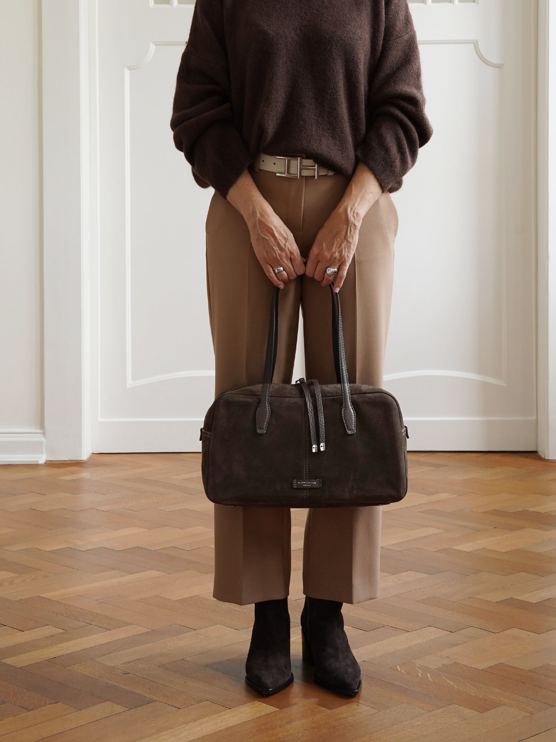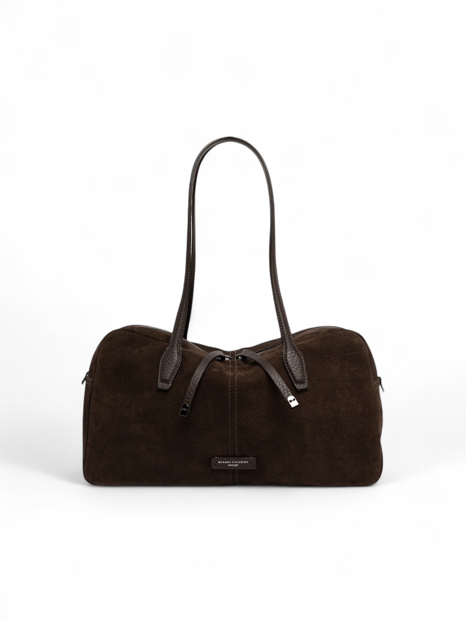 Diese dunkelbraune Velour-Tasche von Gianni Chiarini bringt mit ihrer angesagten Bowlingform und dem trendigen Farbton Chocolate spielerisch Stil in Deinen Alltag. Weich im Griff und auffällig im Look, ist sie der perfekte Begleiter für alle, die bequem und modisch unterwegs sein wollen. Ein echtes Must-have für Deine Tasche-Sammlung!