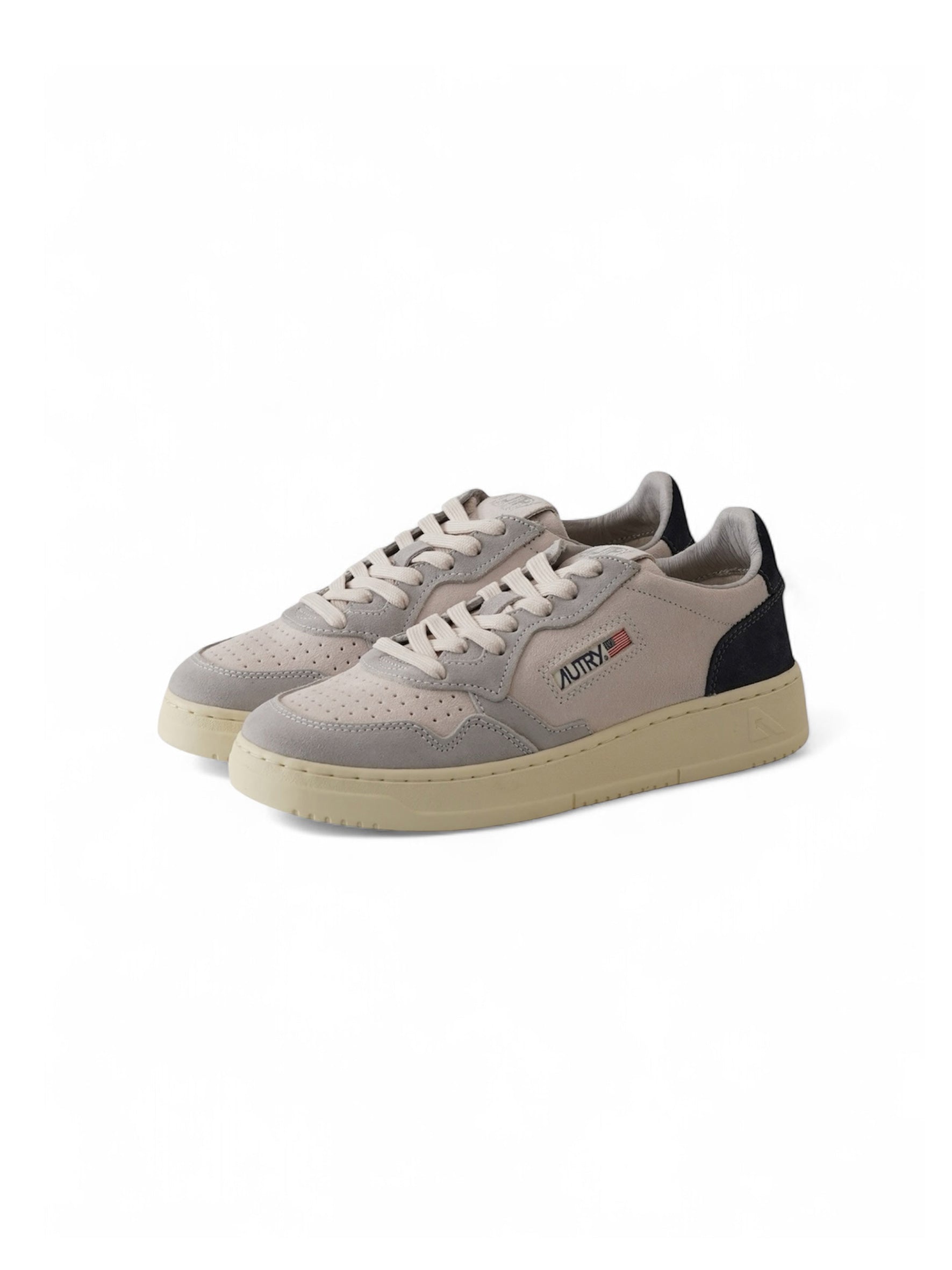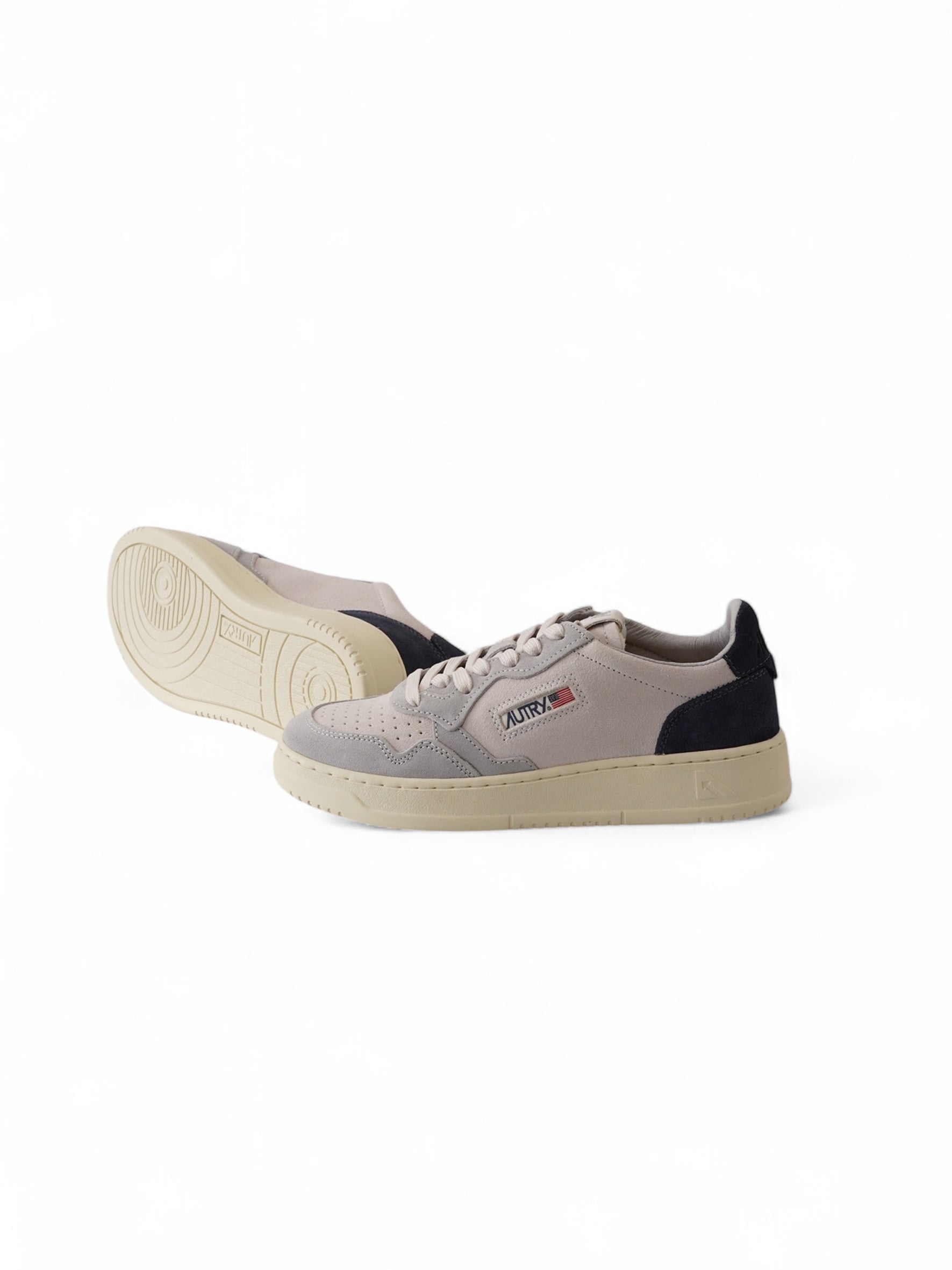 Grauer Velour Autry-Sneaker mit dunkelblauer Ferse "Medalist"