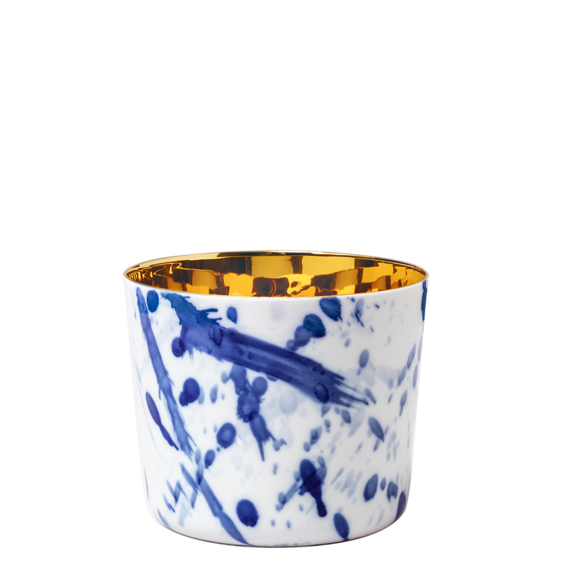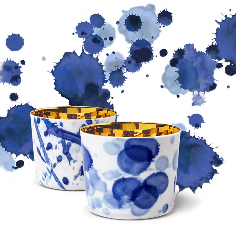 Champagnerbecher Drips. Außen Porzellan, der Becherrand und die Innenseite sind vergoldet. Diese Serie wird von Hand bemalt, sodaß es sich bei jedem Becher um ein Unikat handelt.