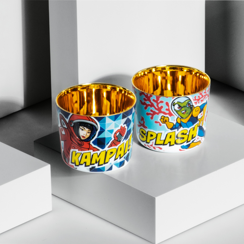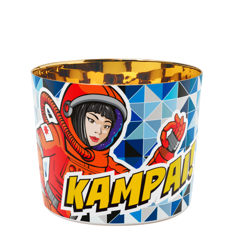 Champagnerbecher Galaxy Girl, außen Porzellan, der Becherrand und die Innenseite sind vergoldet. Diese Serie bedient sich auf ironische, phantasievolle Weise verschiedener fiktiver Comic-Helden.