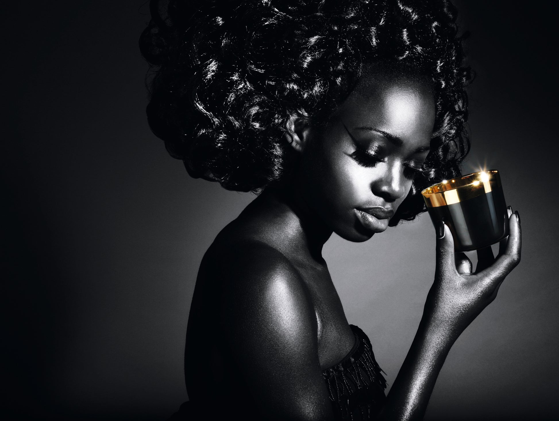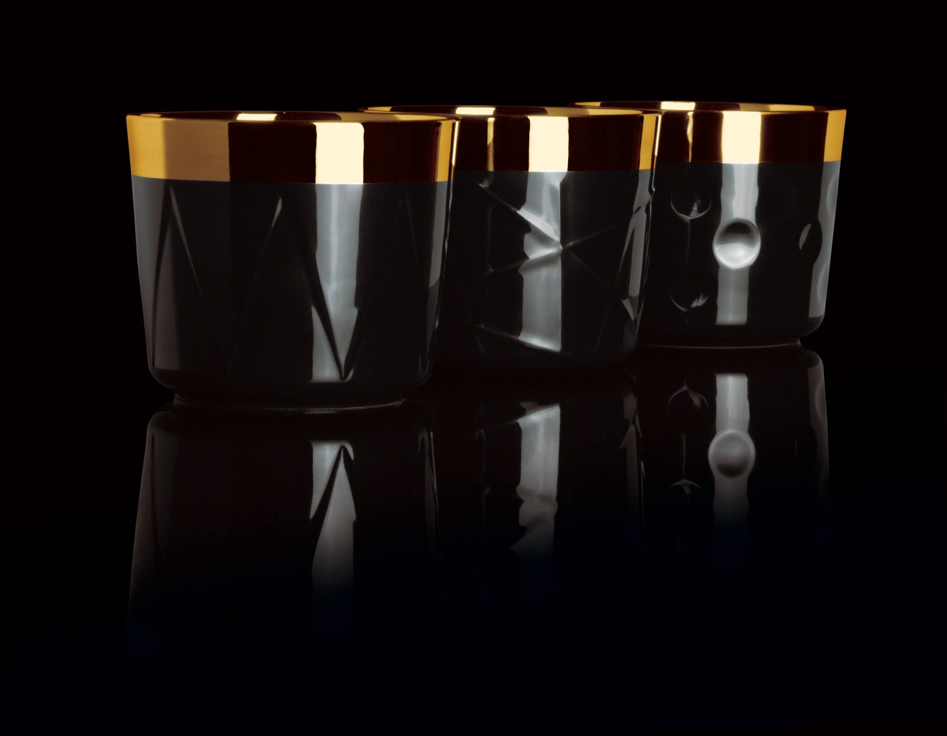 Champagnerbecher Noir, Moon, Punktrelief. Außen Porzellan, der Becherrand und die Innenseite sind vergoldet.